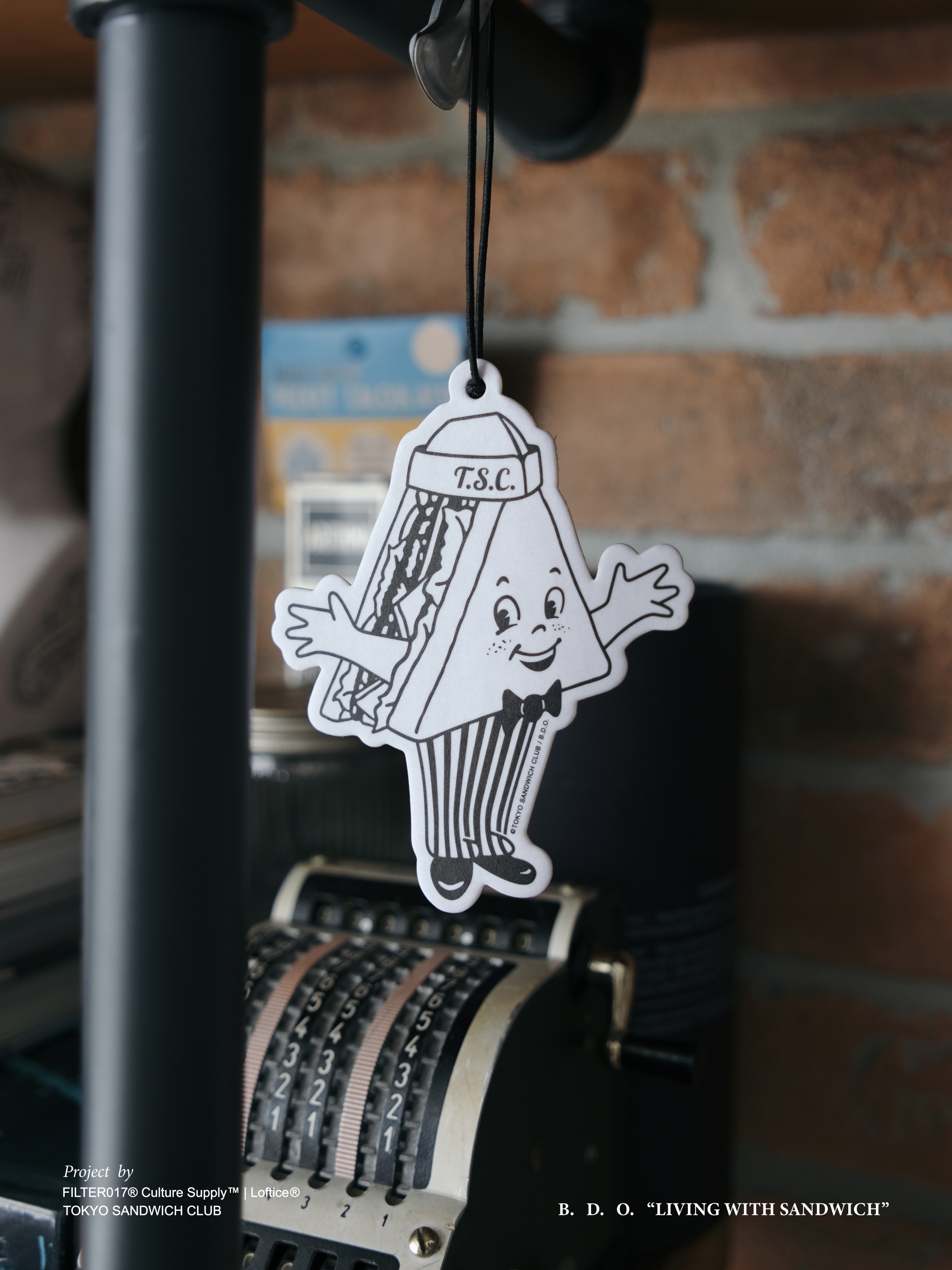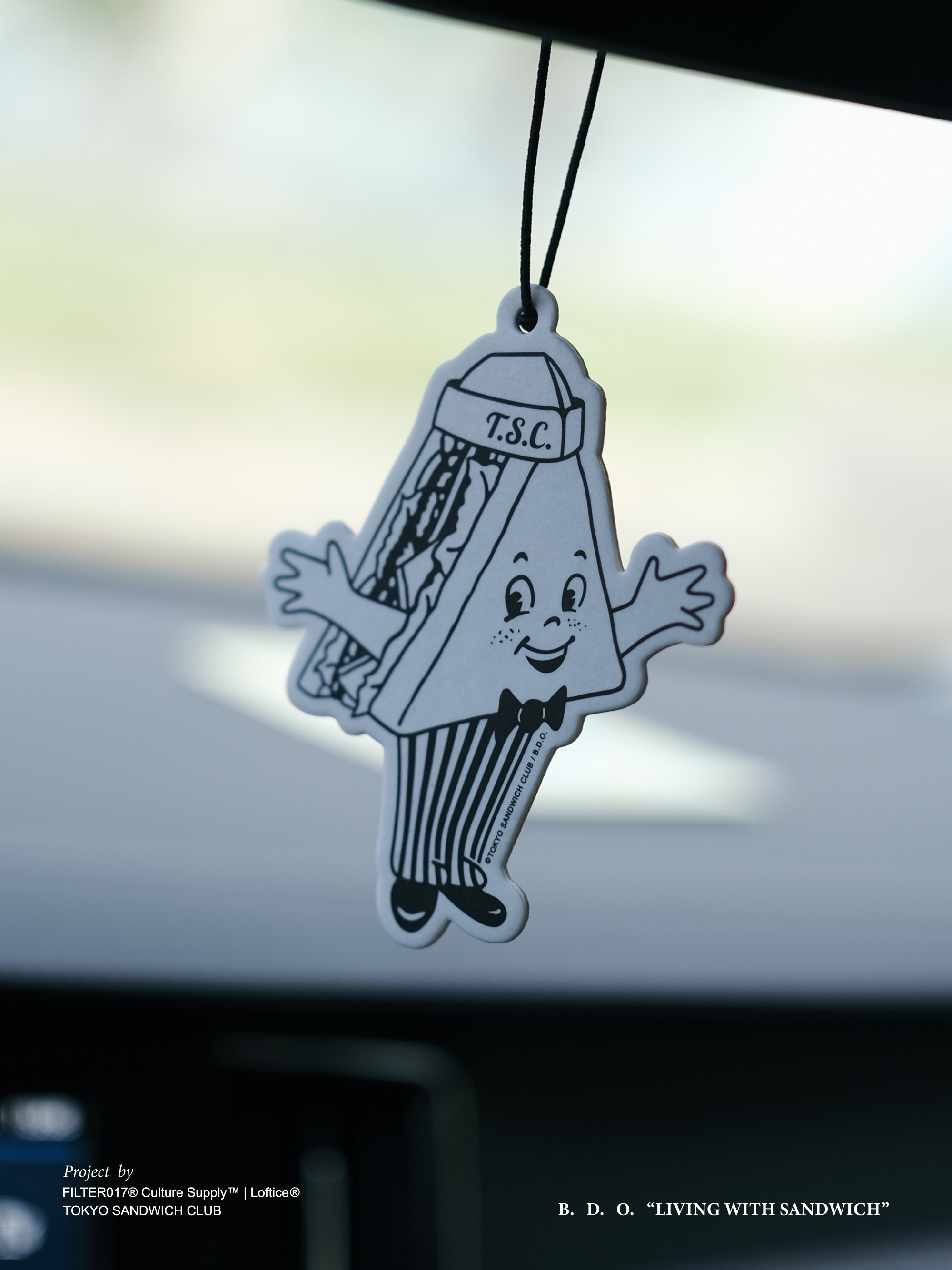 以Tokyo Sandwich Club 品牌經典三明治吉祥物圖像作為主視覺,採用懸掛式設計,便於吊掛至車內、衣櫃、鞋櫃、浴廁、玄關、門把等處,可散發淡雅香味,保持空氣清新,營造舒適的生活品味與居家氛圍。