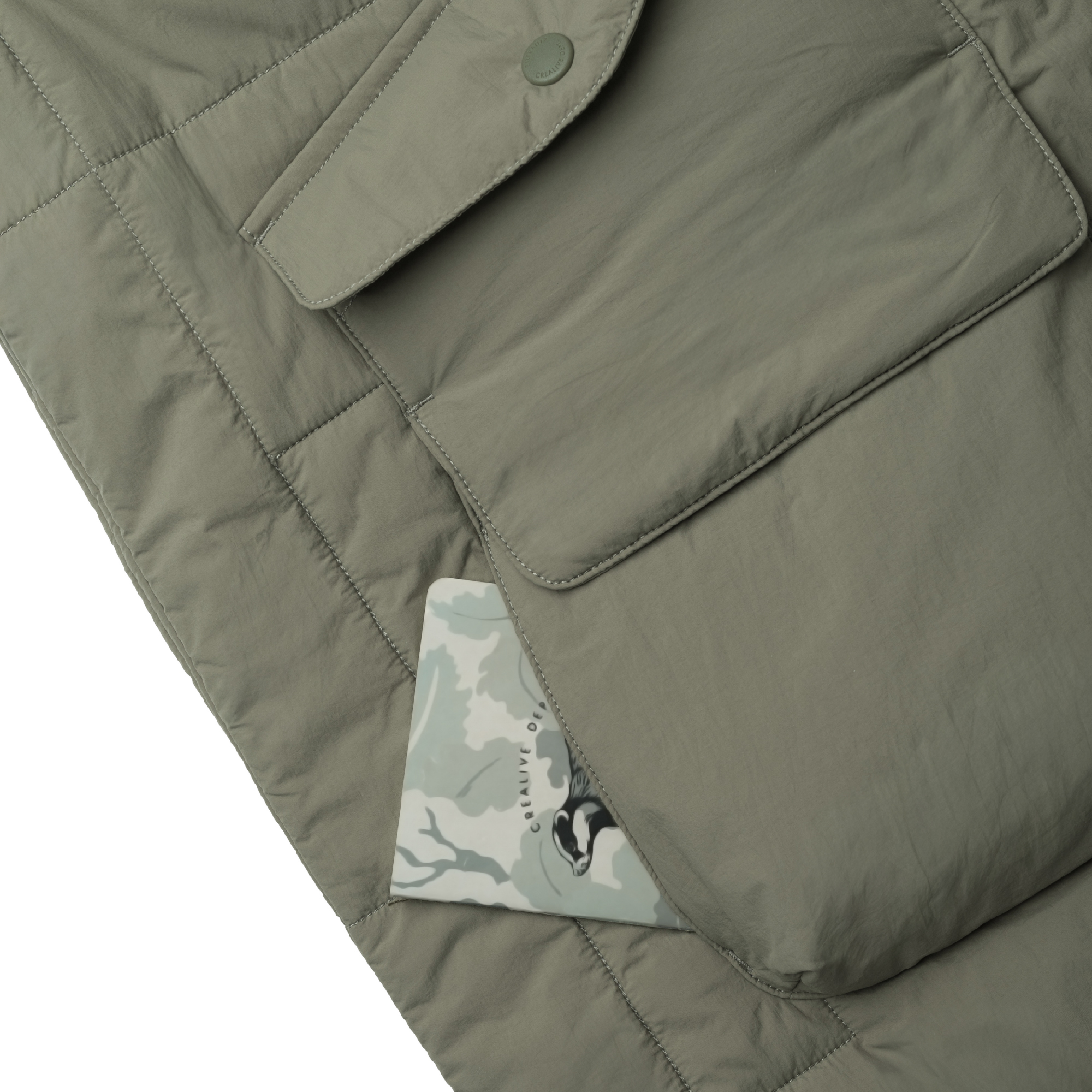 材質嚴選手感柔軟並具防潑水機能的尼龍面料,以絎縫工藝搭配3M™Thinsulate™ 經典輕薄C 型保溫棉作為夾層。此材質以超細纖維製成,能有效鎖住更多空氣層,達到輕盈、保暖並減少熱能流失的效果。
