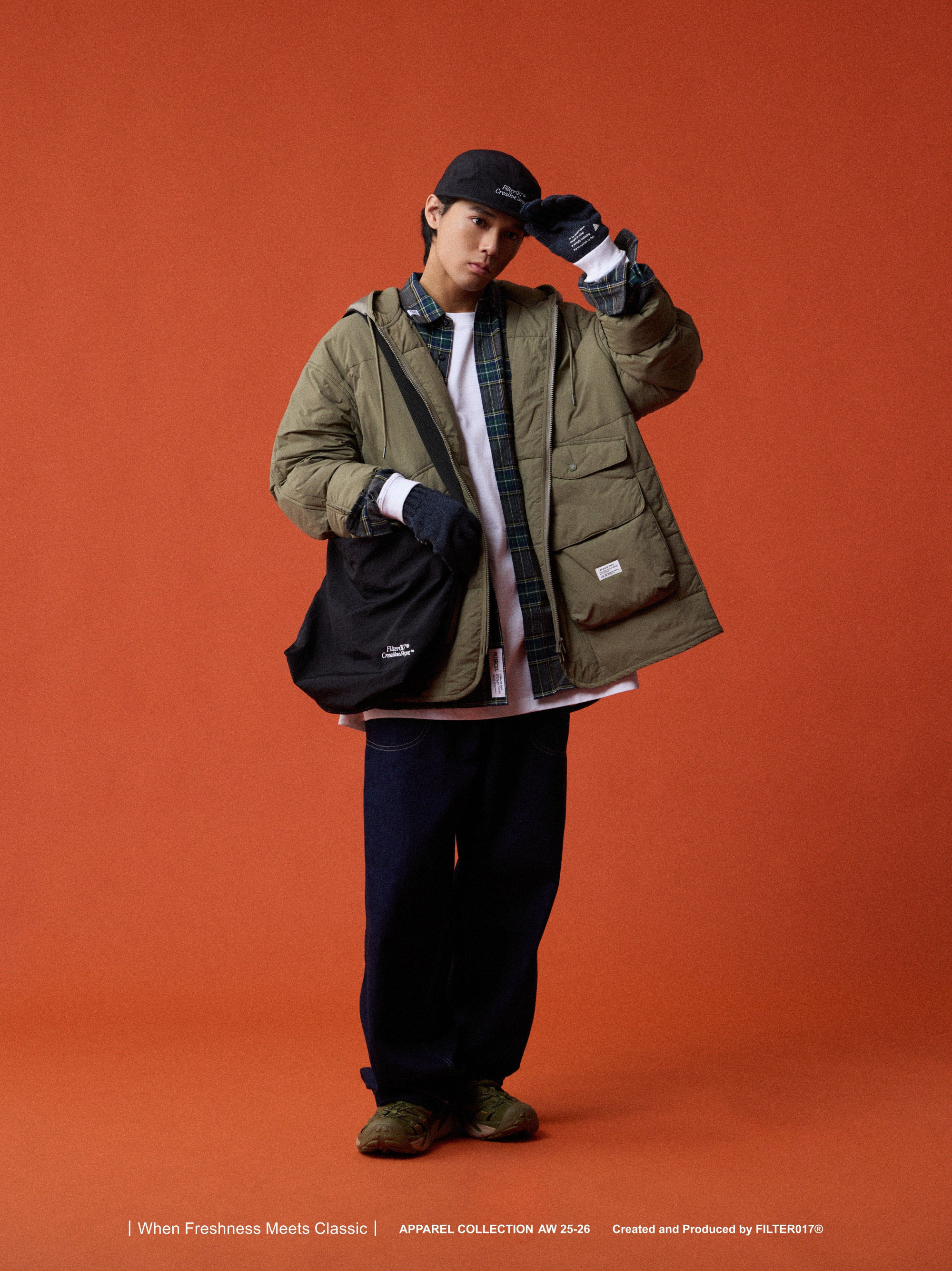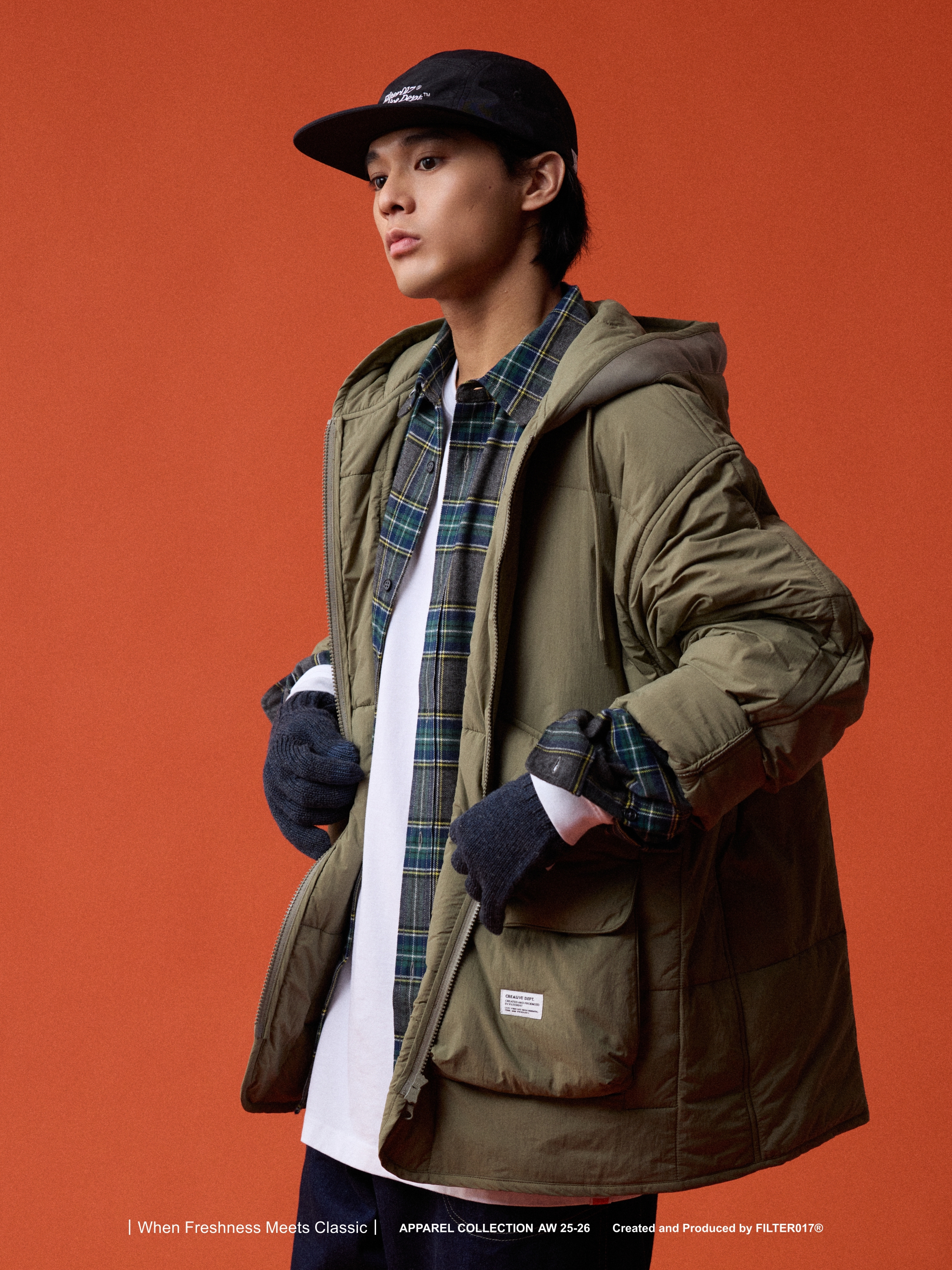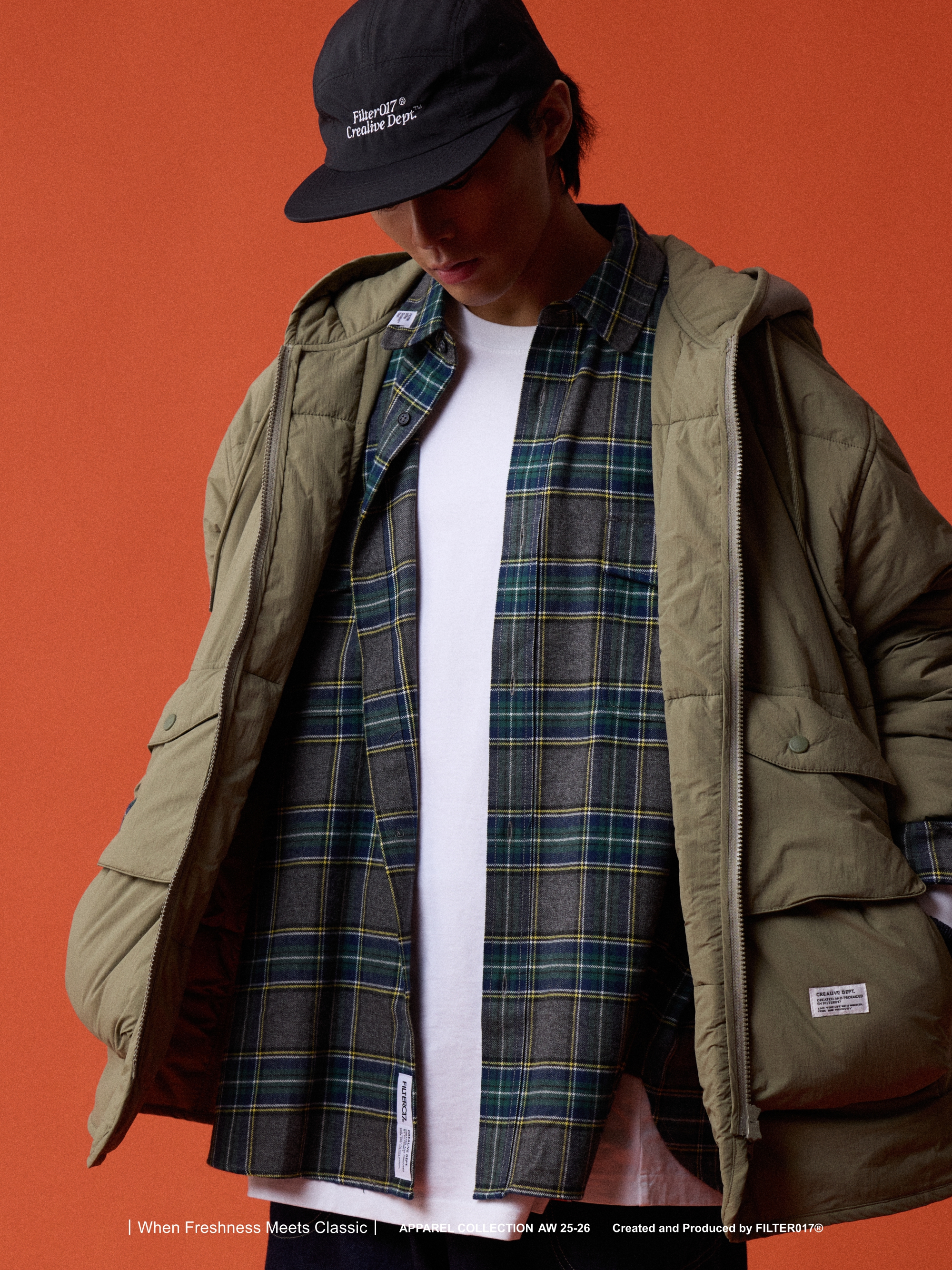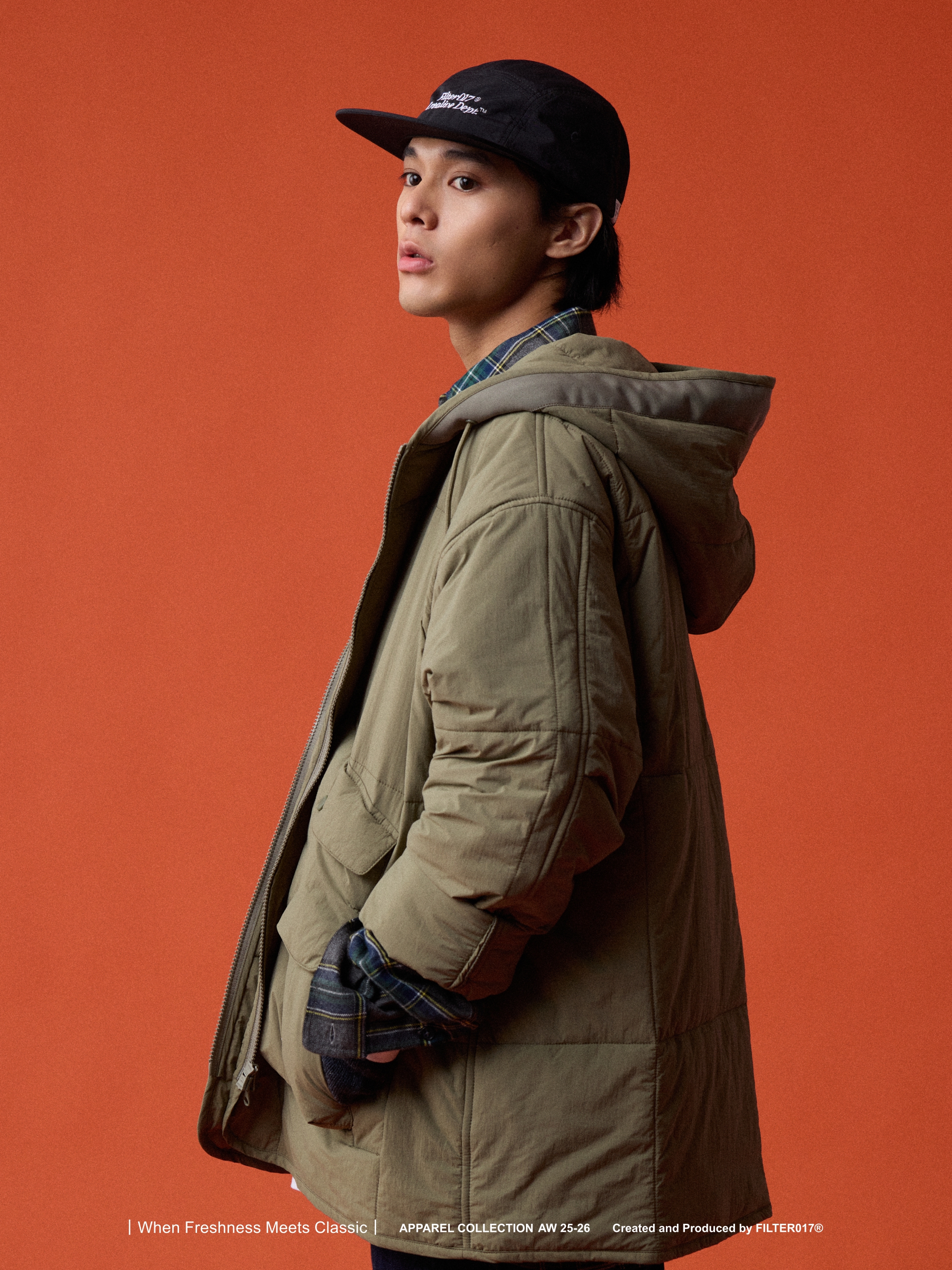 考究60 年代歐美軍用野戰夾克絎縫內膽為靈感基礎,融入美式獵裝口袋造型與連帽結構重新混合演繹,使整體風格在Urban Outdoor 的基礎上取得協調與平衡。