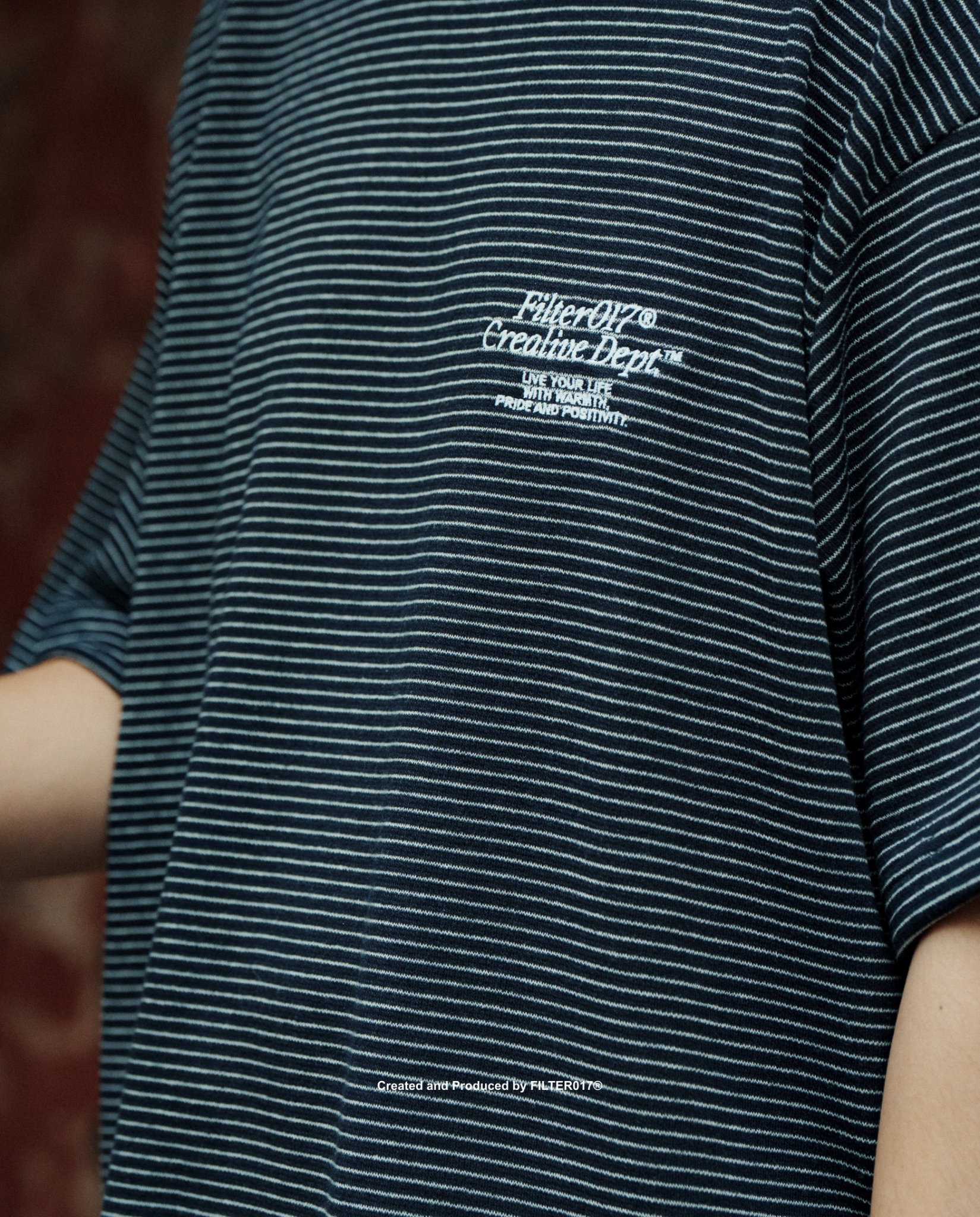 以品牌經典標語設計字樣延伸,於胸前透過精緻刺繡工藝呈現,並結合經典條紋元素,以緹花方式織造出細緻的水平線條,布料整體柔軟舒適,具有親膚、透氣、抗皺等特性,符合亞洲氣候需求,在視覺上帶有自然垂墜感的鬆弛氛圍,採用符合東方人身形的微寬鬆版型,為日常帶來絕佳的穿著體驗。