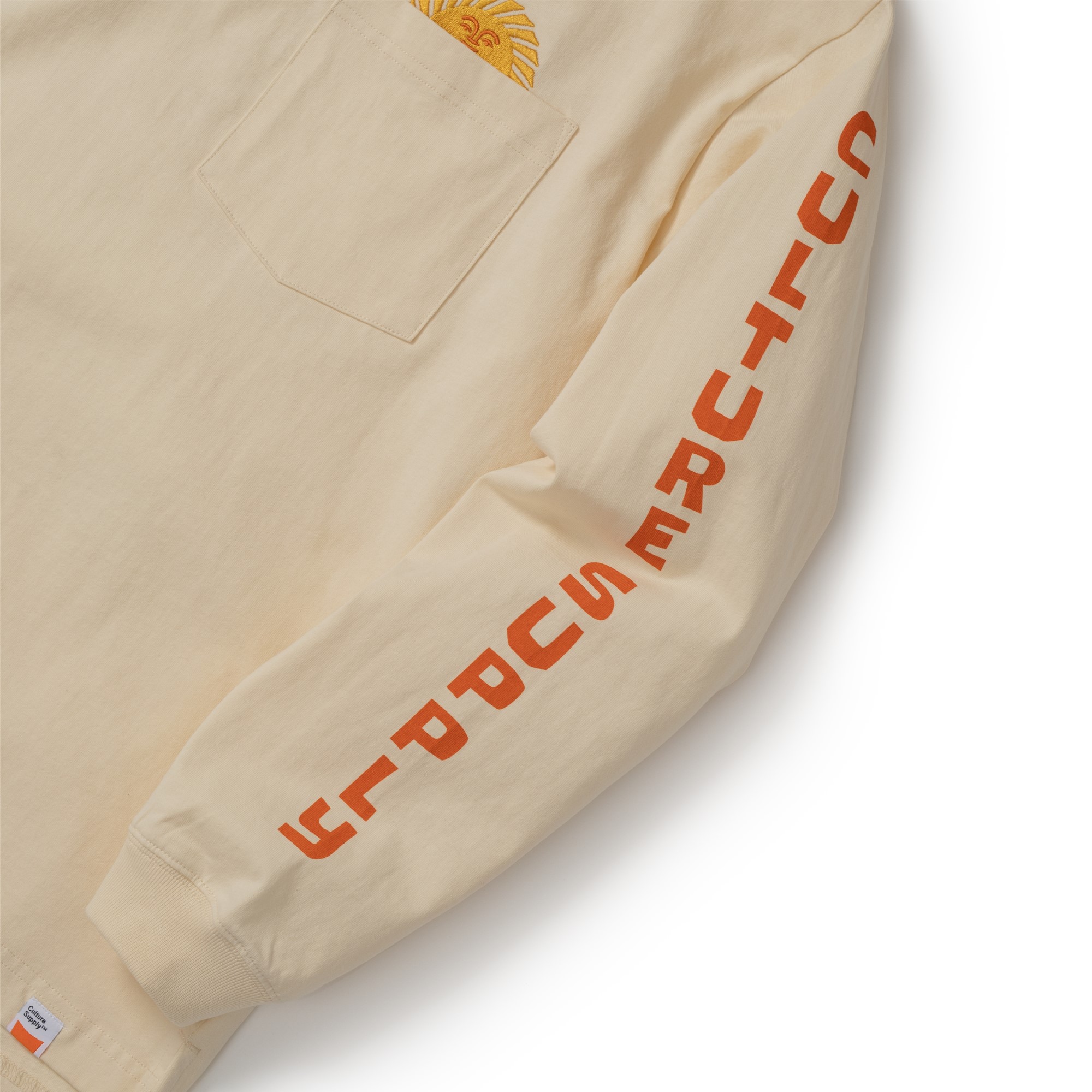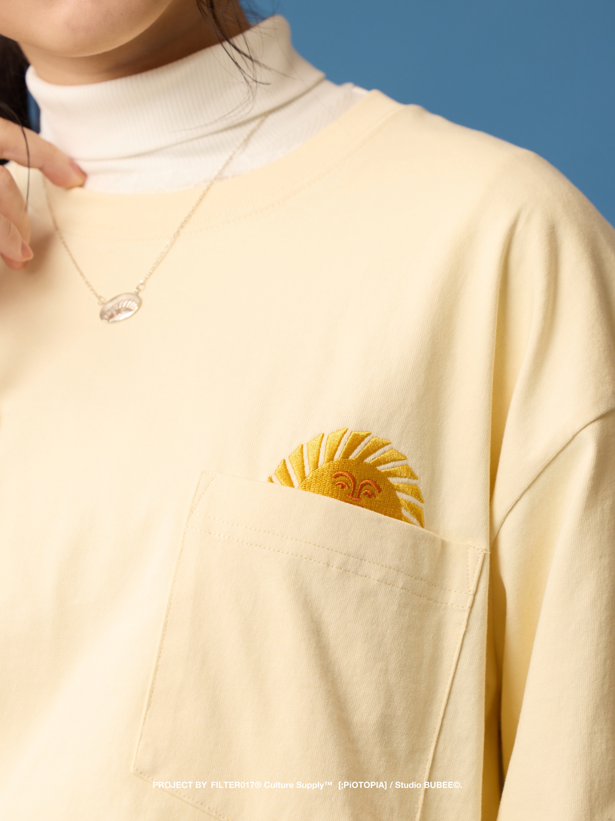 以太陽圖像作為主視覺,於手袖、背部以印刷方式呈現,並透過胸前刺繡與口袋配置的巧思設計,點題出玩味細節。嚴選厚實高品質棉質面料製作,搭配落肩但不過顯鬆弛的寬鬆版型設計,前短後長的層次剪裁,提升穿著舒適度與增添穿搭視覺,為日常帶來絕佳的穿著體感及休閒氛圍。