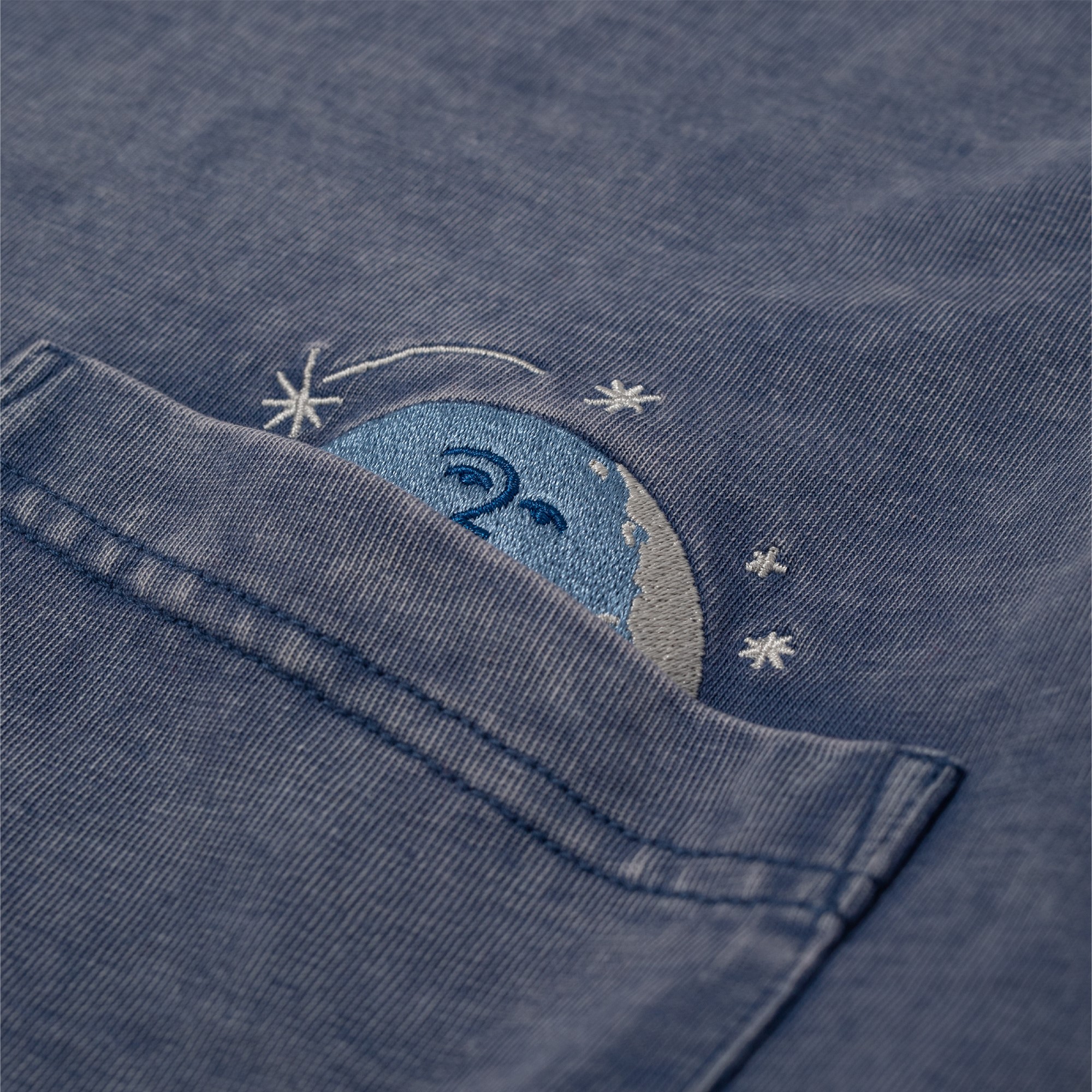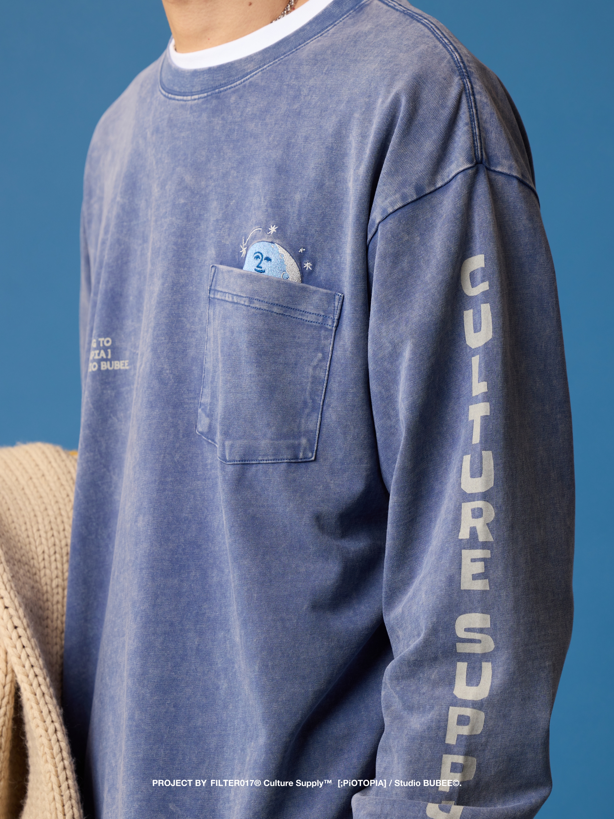 以月亮圖像作為主視覺,於手袖、背部以印刷方式呈現,並透過胸前刺繡與口袋配置的巧思設計,點題出玩味細節。嚴選厚實高品質棉質面料製作,布面採用染色水洗加工技術做舊化處理,搭配落肩但不過顯鬆弛的寬鬆版型設計,前短後長的層次剪裁,提升穿著舒適度與增添穿搭視覺,為日常帶來絕佳的穿著體感及休閒氛圍。