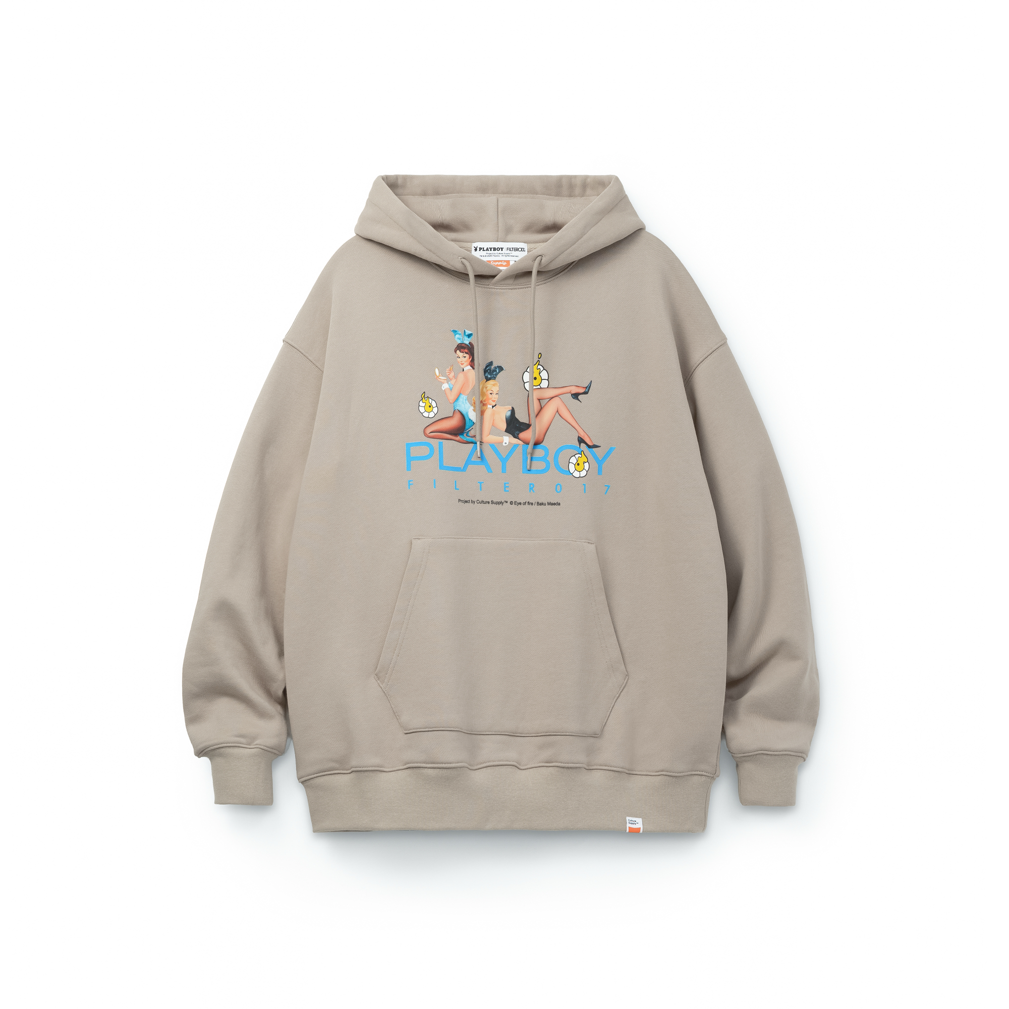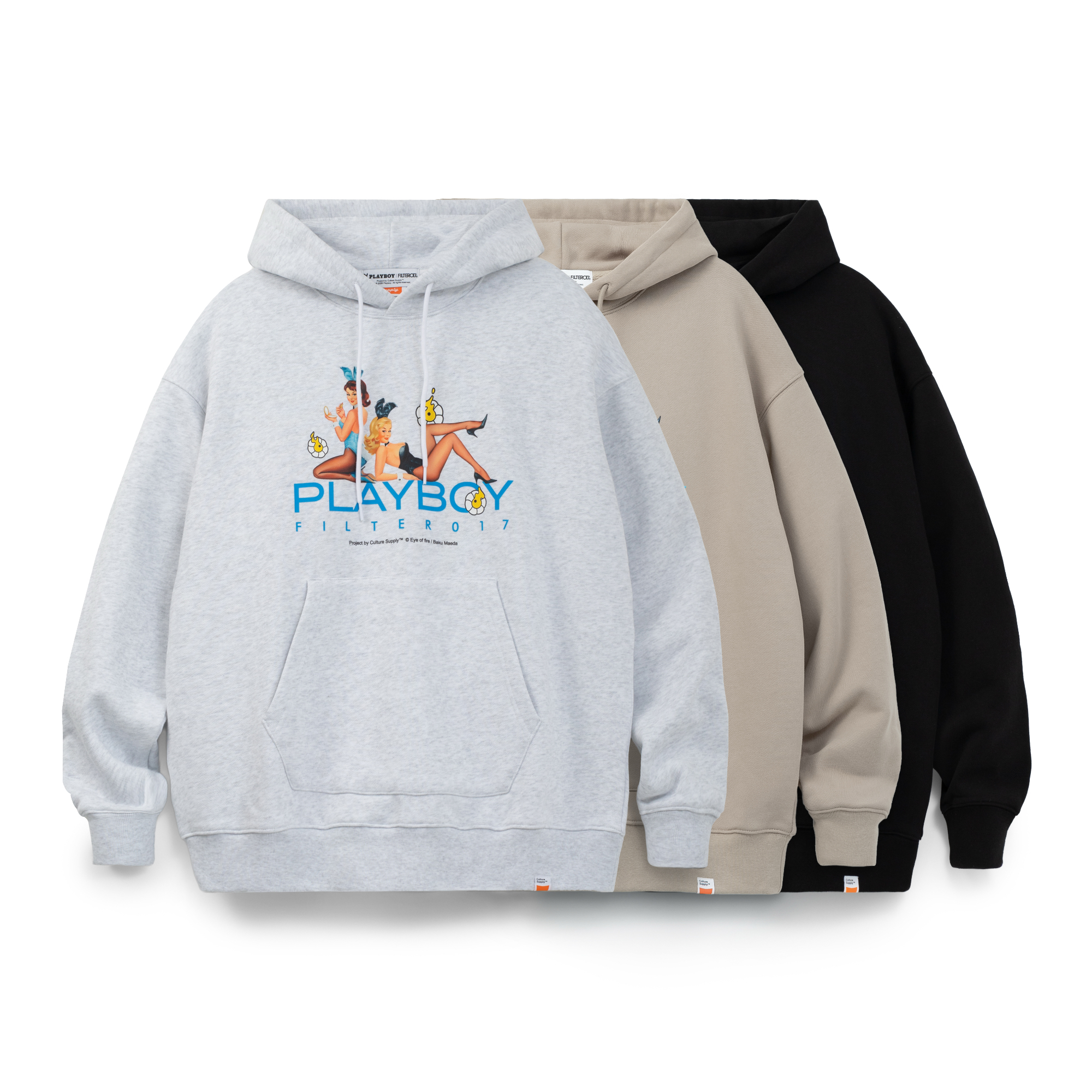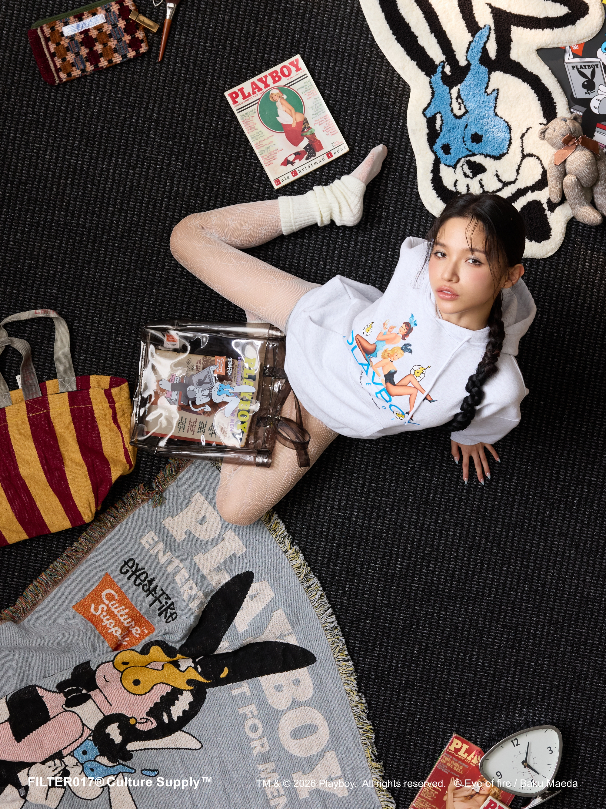 本次企劃專案由FILTER017® 主理人/藝術總監Enzo Lin 策劃主導,負責設計執行與創意統籌,並由品牌旗下文化藝術企劃單位Culture Supply™ 製作發行。核心聚焦以PLAYBOY 著名的經典成人藝術刊物作為重要文化起點切入,透過FILTER017® 擅長的元素混合與當代編輯設計語彙重新轉譯。插畫藝術家 前田麦 以其筆下標誌性的「EYE OF FIRE(火焰之眼)」詮釋PLAYBOY 最具代表性的兔頭Logo,以及紳士兔與兔女郎角色,將復古經典的雜誌封面意象於當代重新建構。