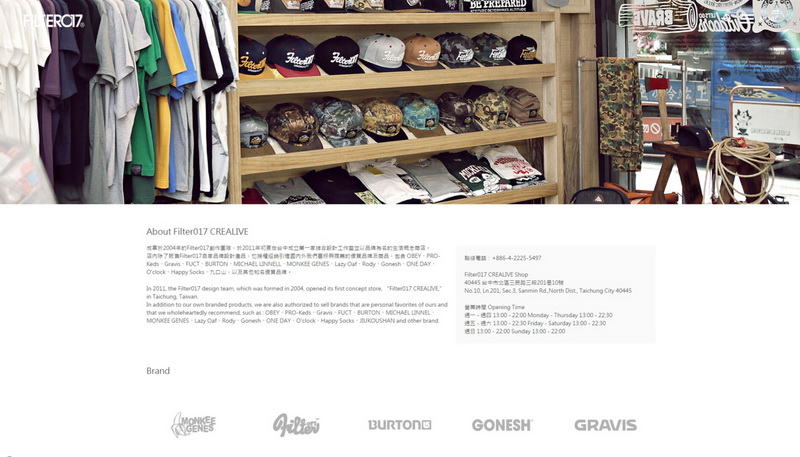 網站記錄與收藏了 Filter017 於2004成立以來完整作品、團隊經歷、品牌商品等資料,並於後續同步更新品牌與團隊最新消息。