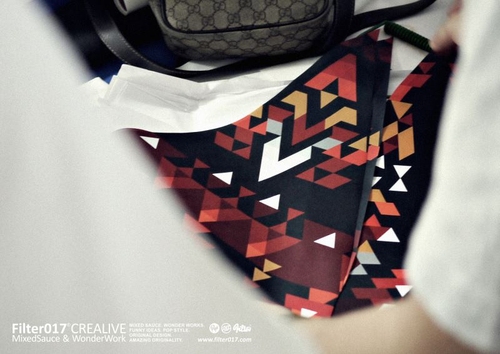「PATTERN」(圖像底紋)一直以來都是Filter017視覺表現上的拿手戲法,因此本次EVANGELION的聯名企劃,一開始就鎖定以視覺PATTERN做為創意發想的基礎,我們由「EVANGELION」造型及色彩上解構、演化出獨一無二原創的「EVA印第安民族風格圖騰」,並以「使徒」造型簡化設計而成潮流元素「玉點底紋」,最終以這兩大視覺之設計基礎進行延伸一系列商品。