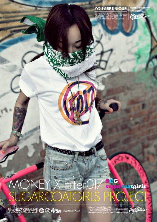 MONEY 自2011開始於平日拍攝的作品中融入了Filter017的品牌服飾,並持續不定期為Filter017拍攝品牌專題,讓這群來自中國糖衣女孩,以她們的青春性感,使Filter017品牌的多元性得到空前的解放!