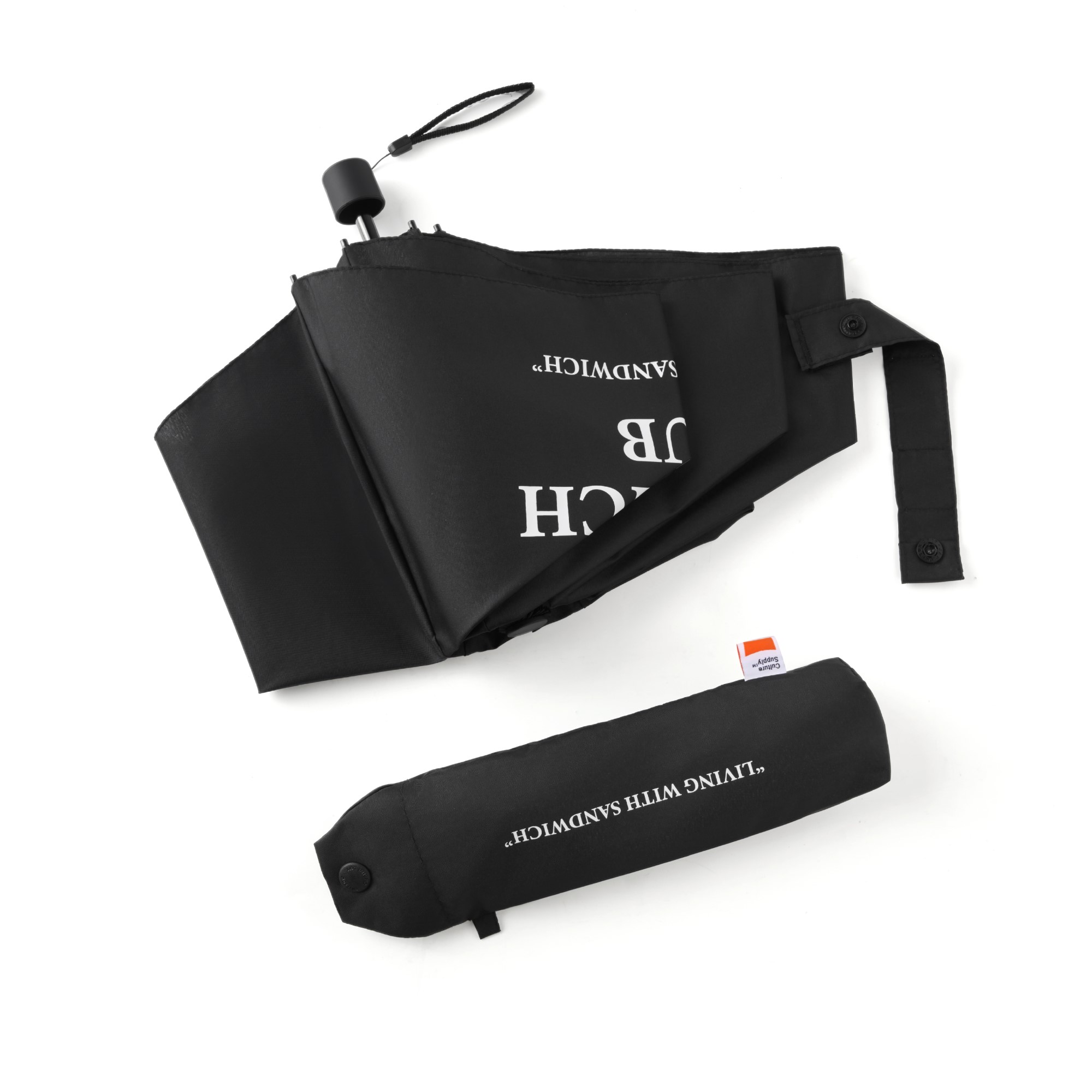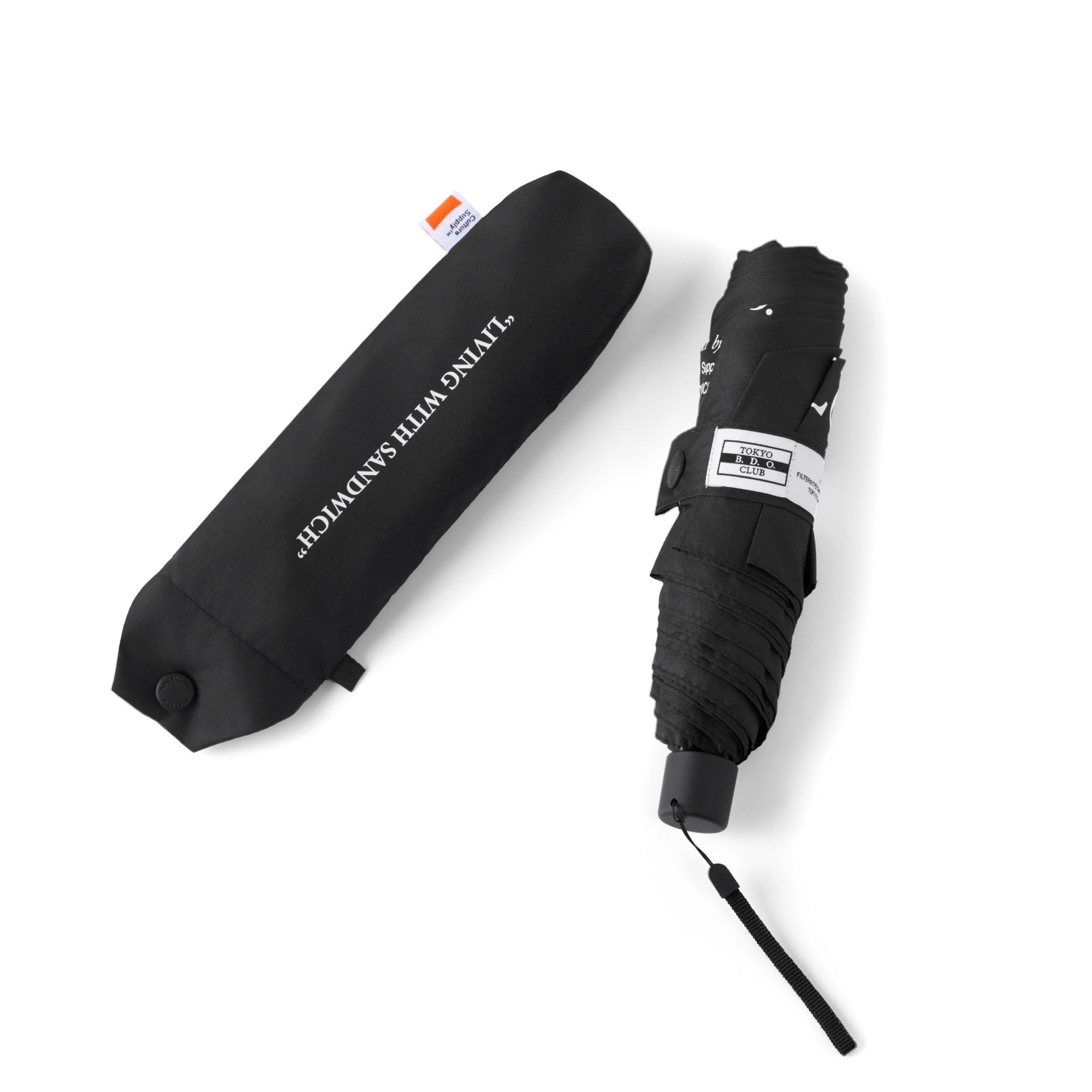 採用210T 高密度碰擊布,布料本身擁有良好的阻光性加上抗UV 塗層,能有效隔絕紫外線。傘架由鋁、碳纖維等輕量材質組成,整體收納後輕巧且方便攜帶,加上Logo 塑扣與Tokyo Sandwich Club 品牌經典圖樣印刷的精緻呈現,皆可感受到品牌於多處細節的極致追求與充滿高質感的品味。