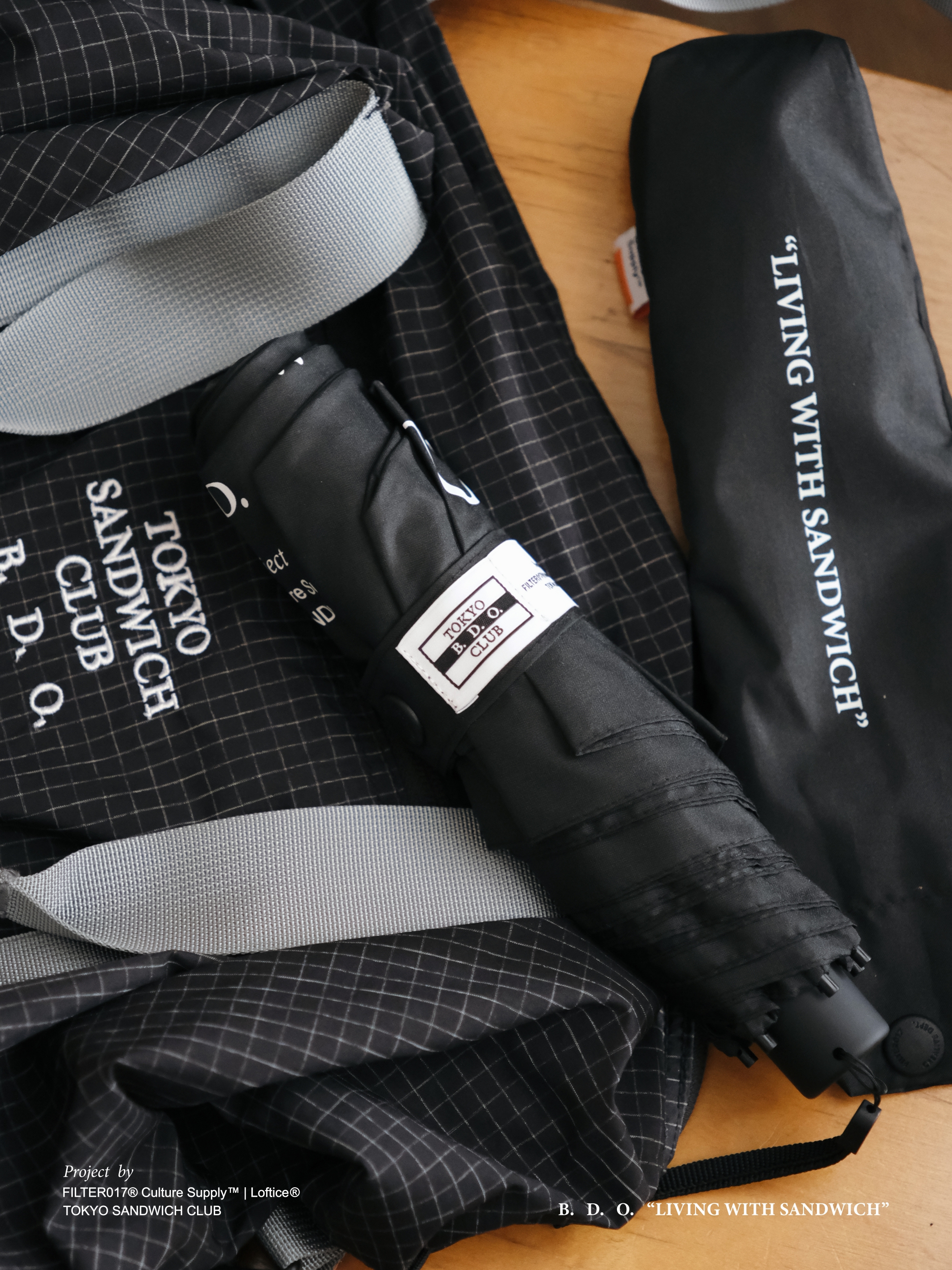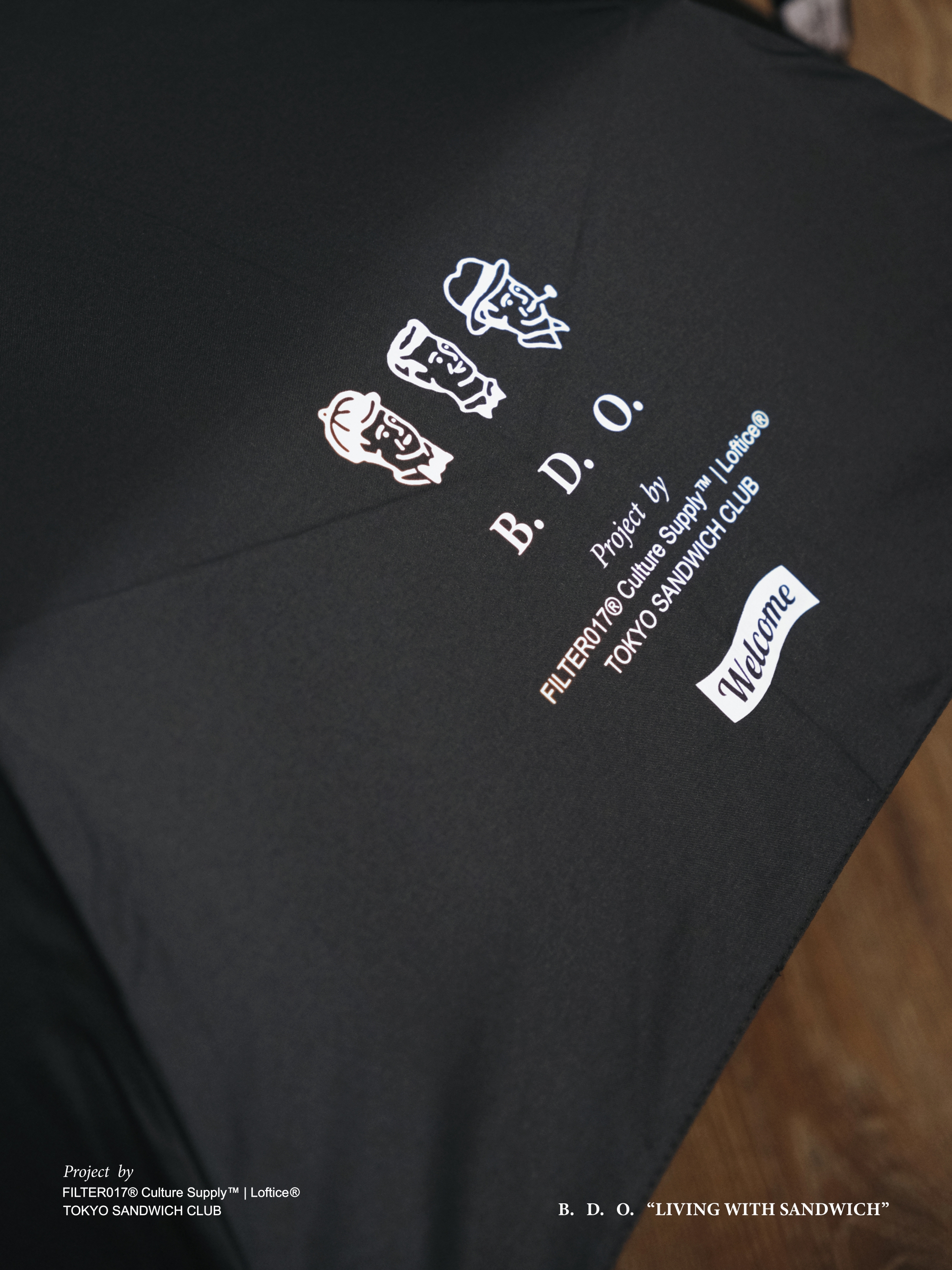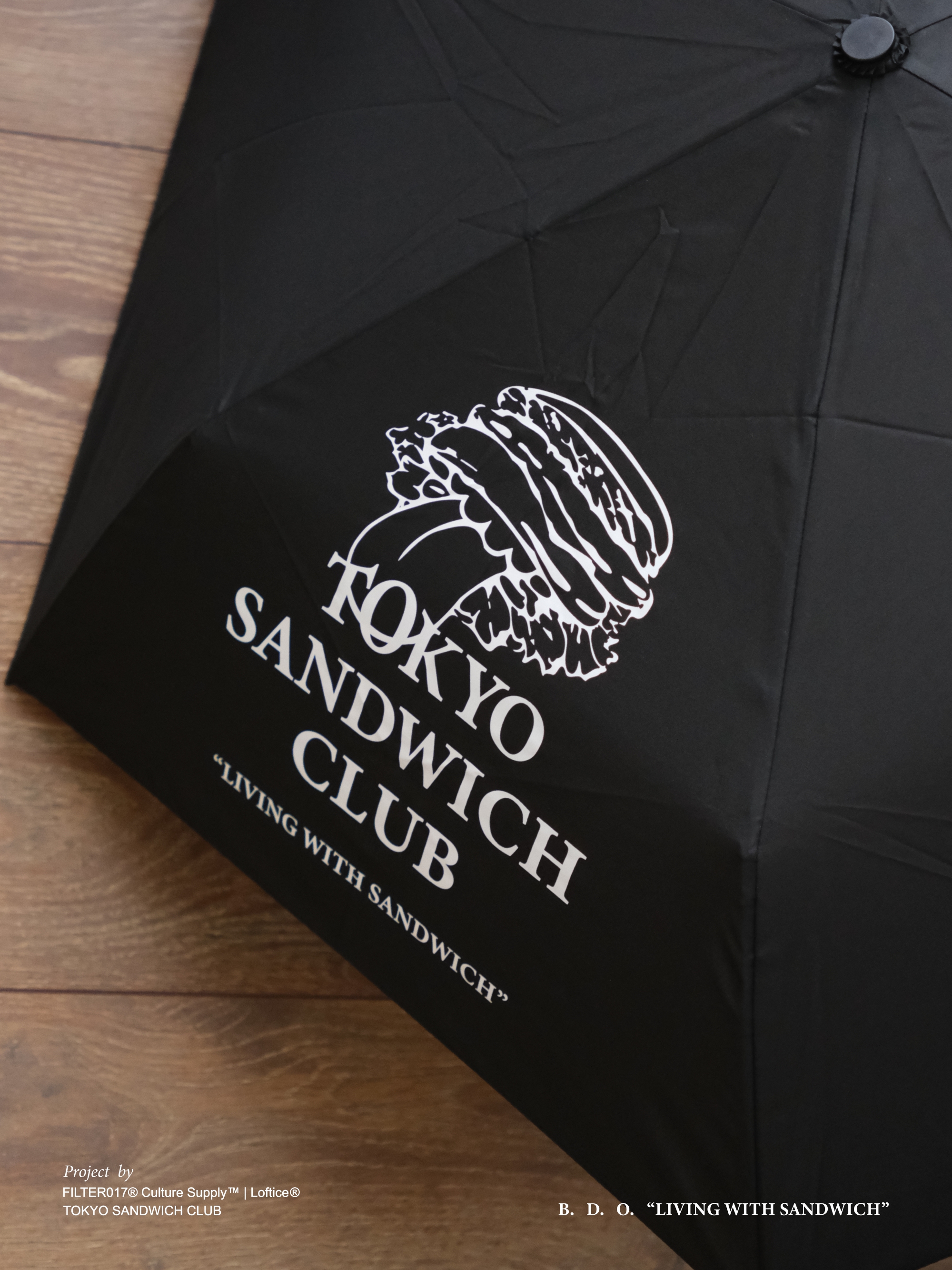 此次企劃內容如同三明治般的概念延伸,跨越領域與國籍,將不同文化與流行堆疊融合,以Brewing(咖啡)、Drinking(飲酒)、Outfitting(穿搭)等生活日常角度切入,貫穿主題 ”LIVING WITH SANDWICH” ,並透過「B.D.O. 」概念主軸結合本次合作台日代表單位特色,融入台日在地城市文化與意象,整體視覺以Tokyo Sandwich Club 品牌經典圖像加以設計與延伸擴充,帶來一系列主題商品與創意巧思,探索三明治的多重可能!