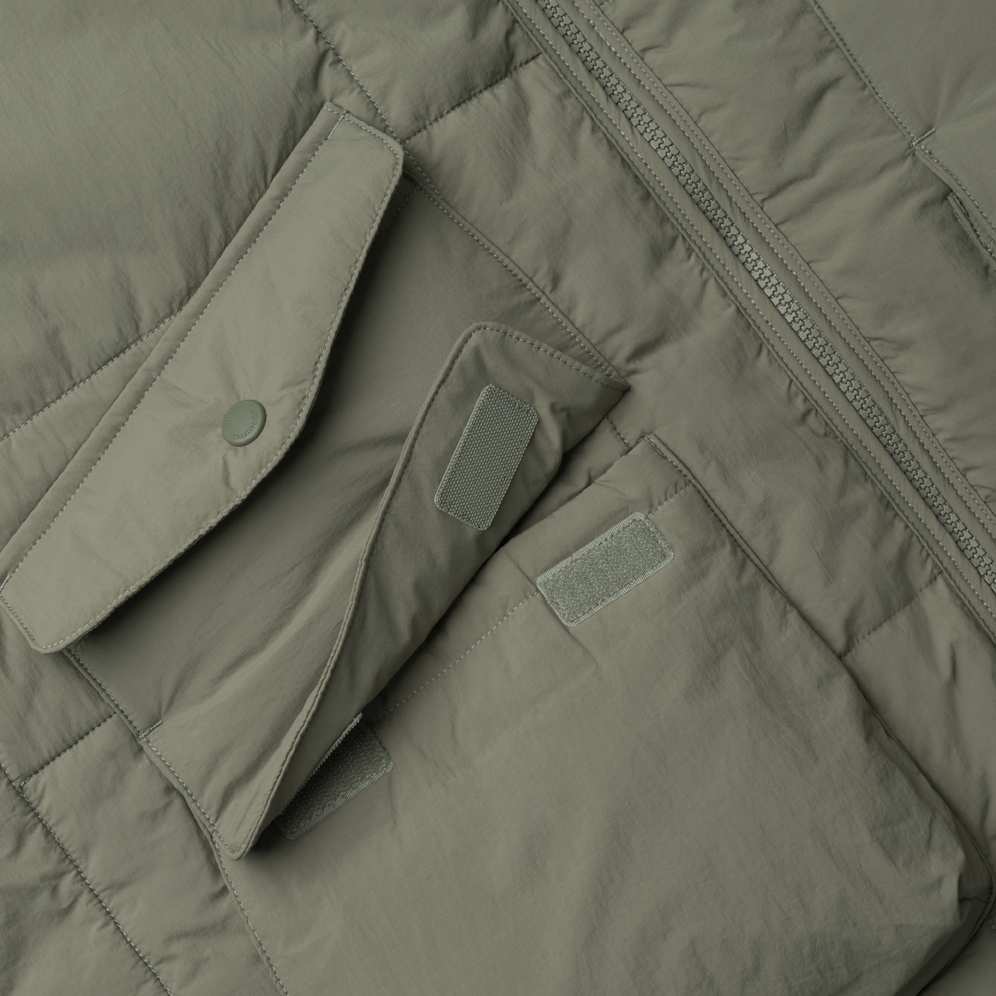 材質嚴選手感柔軟並具防潑水機能的尼龍面料,以絎縫工藝搭配3M™Thinsulate™ 經典輕薄C 型保溫棉作為夾層。此材質以超細纖維製成,能有效鎖住更多空氣層,達到輕盈、保暖並減少熱能流失的效果。