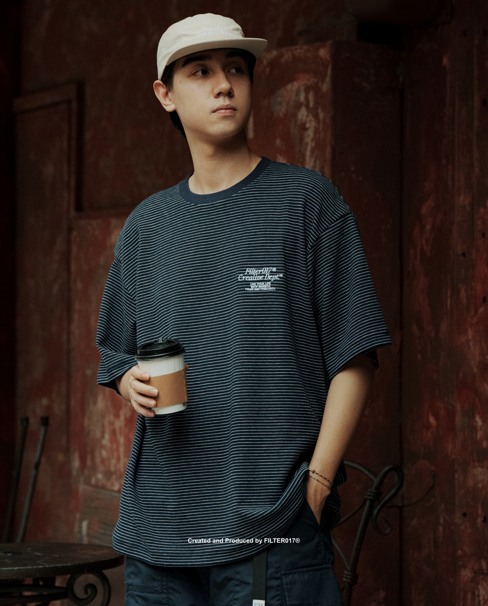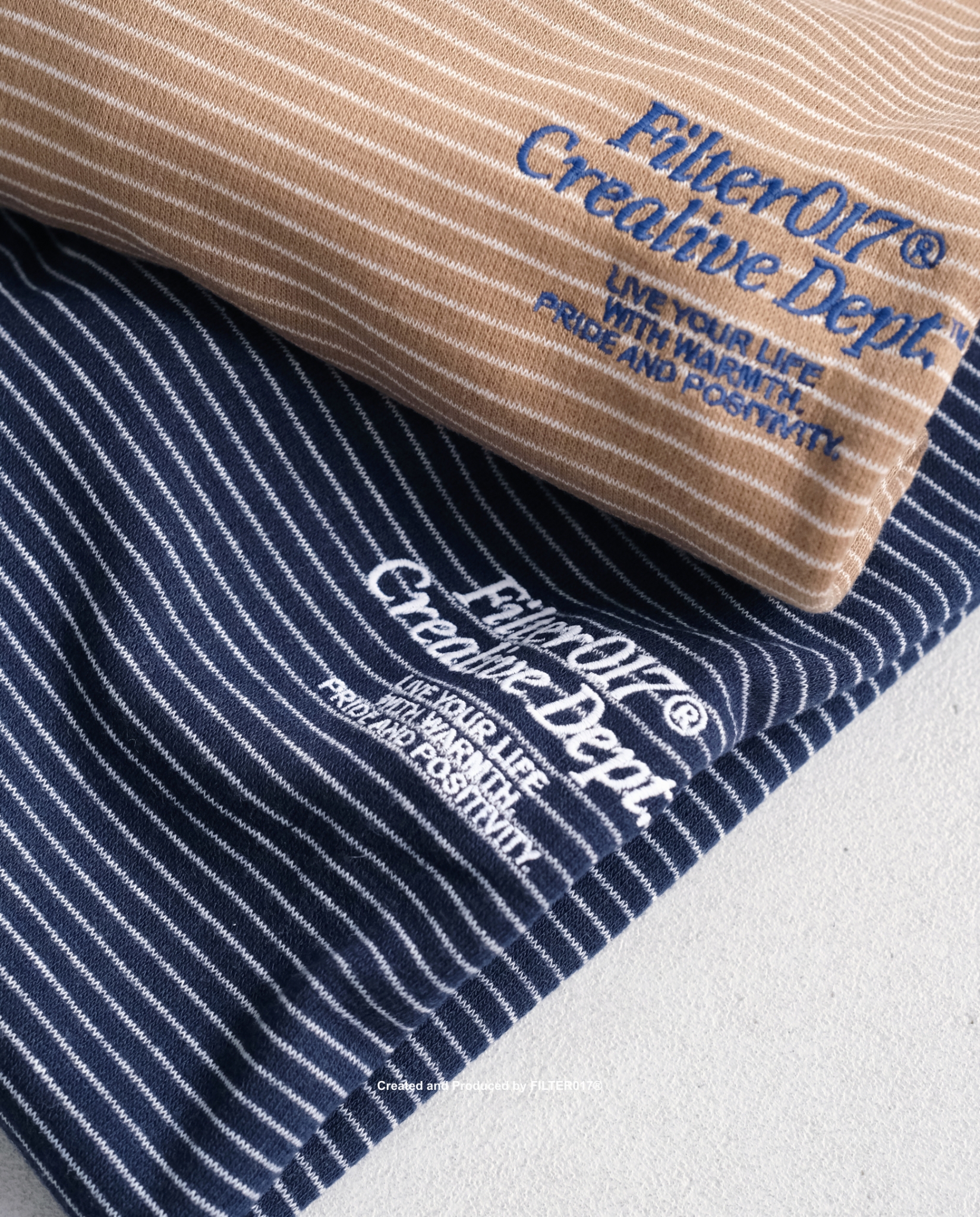 以品牌經典標語設計字樣延伸,於胸前透過精緻刺繡工藝呈現,並結合經典條紋元素,以緹花方式織造出細緻的水平線條,布料整體柔軟舒適,具有親膚、透氣、抗皺等特性,符合亞洲氣候需求,在視覺上帶有自然垂墜感的鬆弛氛圍,採用符合東方人身形的微寬鬆版型,為日常帶來絕佳的穿著體驗。