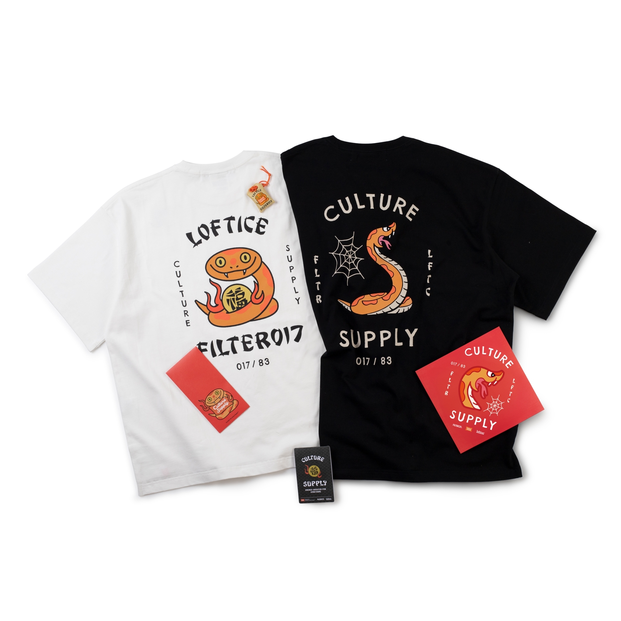 由FILTER017® 品牌下跨領域文化藝術支線Culture Supply™(@filter017_culture_supply)企劃發行,圖像藝術家Tsen Lin 林梣( @tsenandlin )視覺操刀,並由FILTER017® 品牌設計總監Enzo Lin ( @filter017enzo )監製整合設計,將融合日本傳統與美式文化的橫須賀風格,以品牌獨到的視覺意象詮釋,共推出五款年味單品,兩款短踢、御守、紅包袋與斗方,同時提供蛇年新春優惠方案。