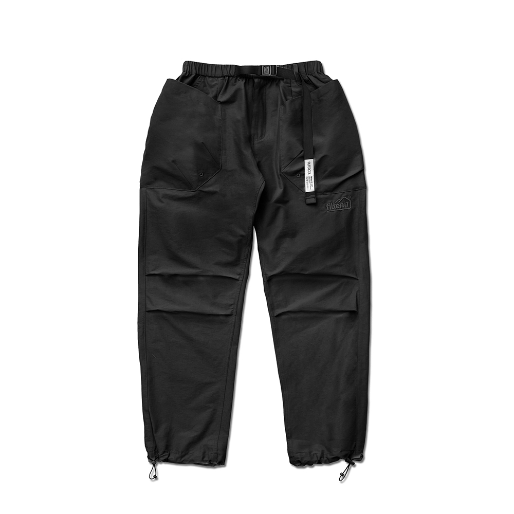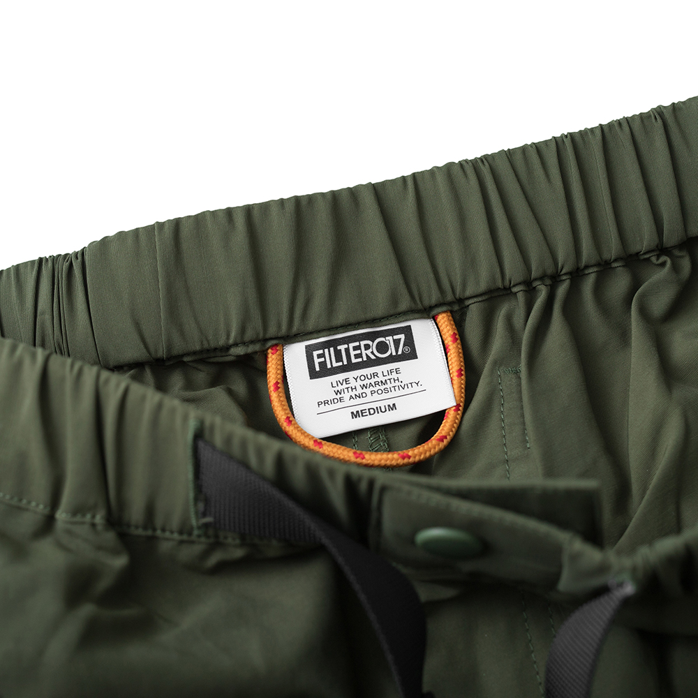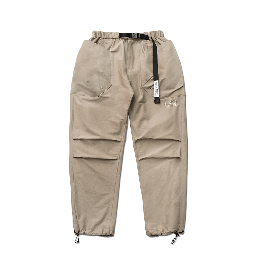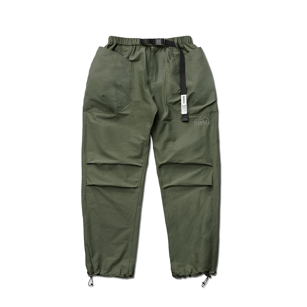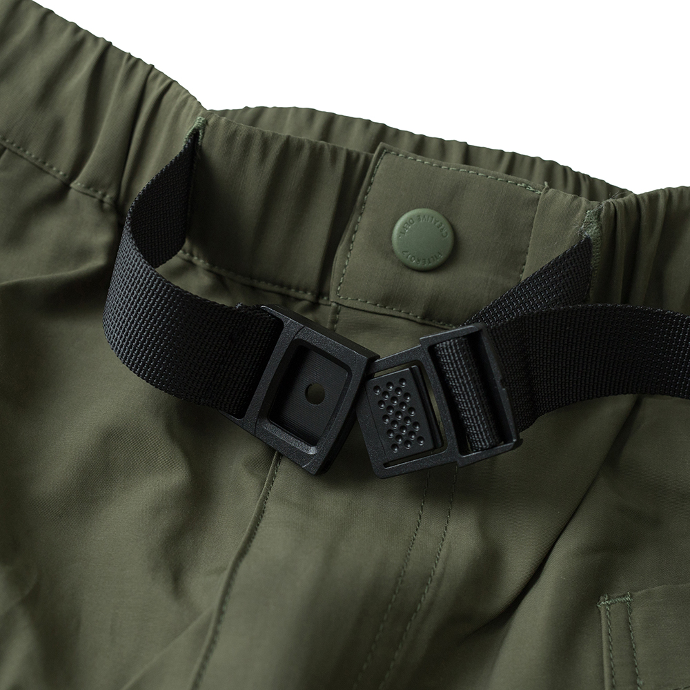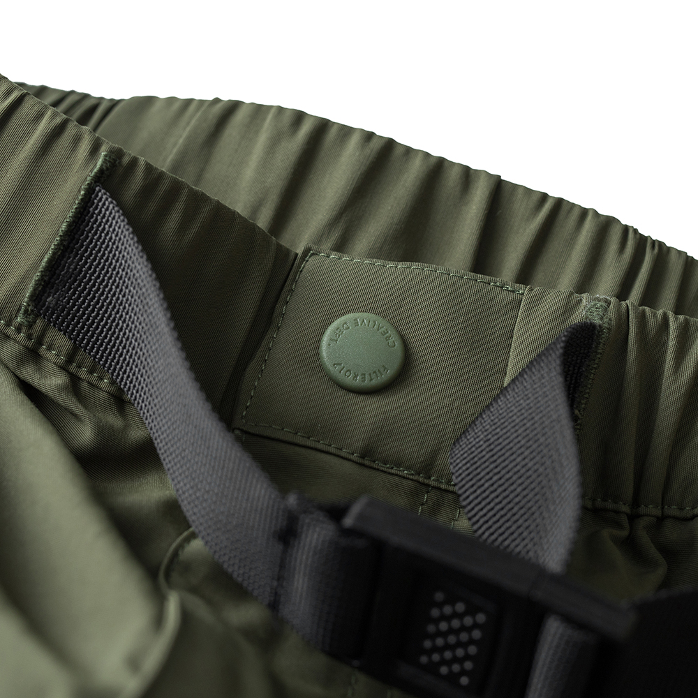 而隱藏式腰帶設計搭配可調式卡扣束帶,並搭配了褲腳束繩的細節設定,