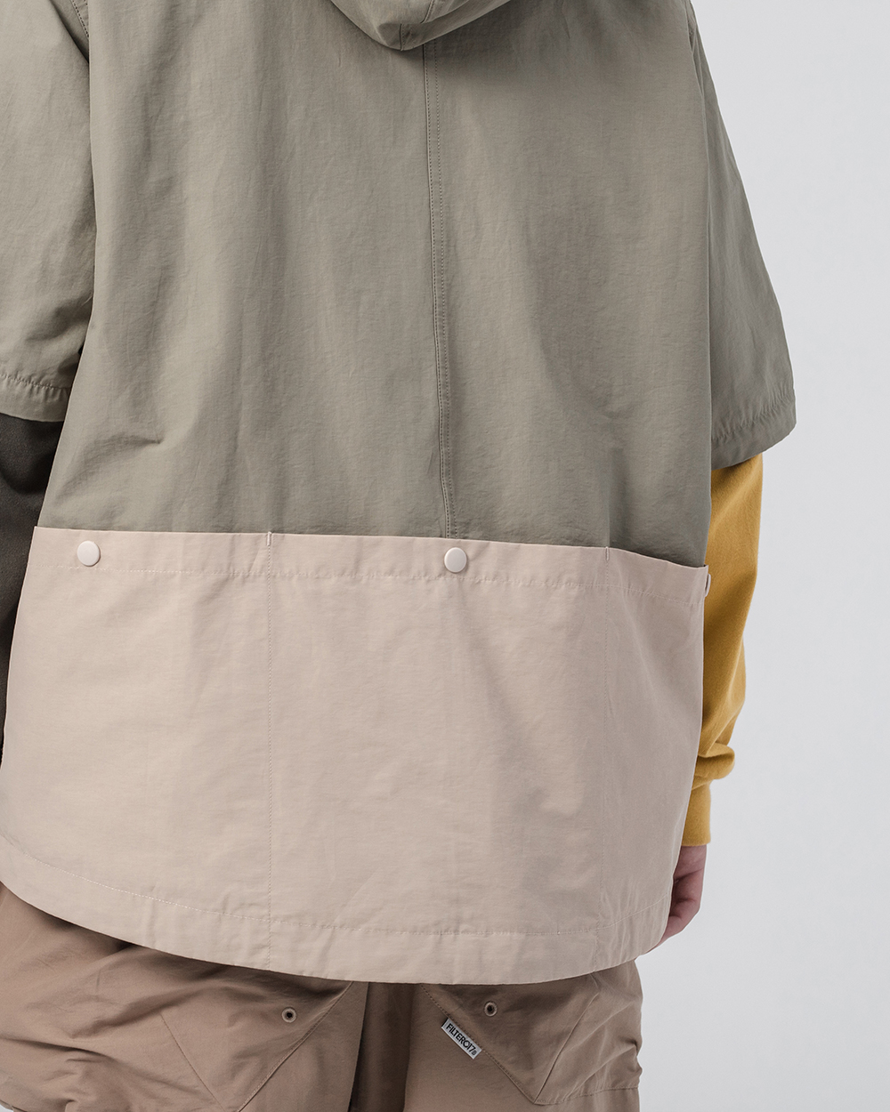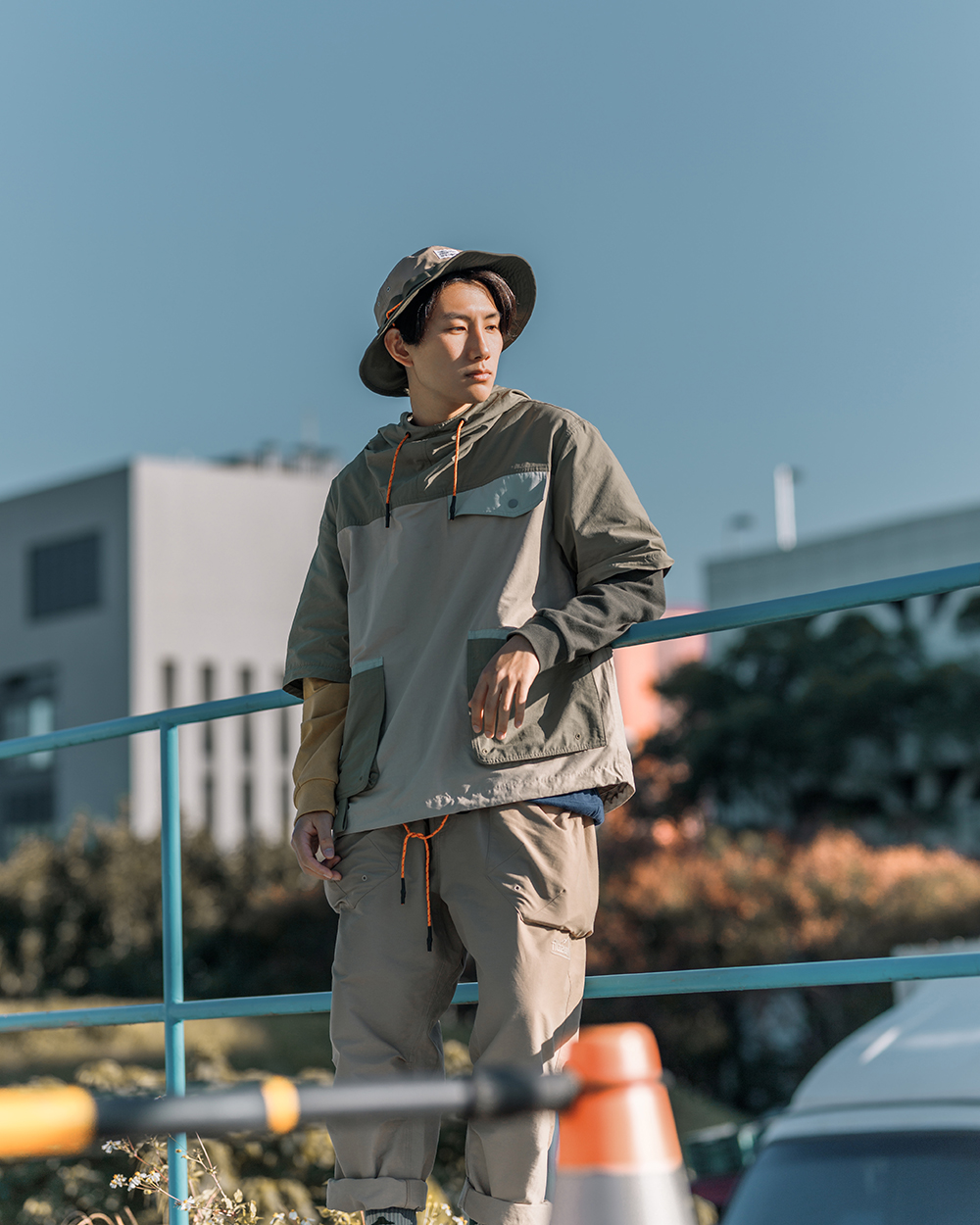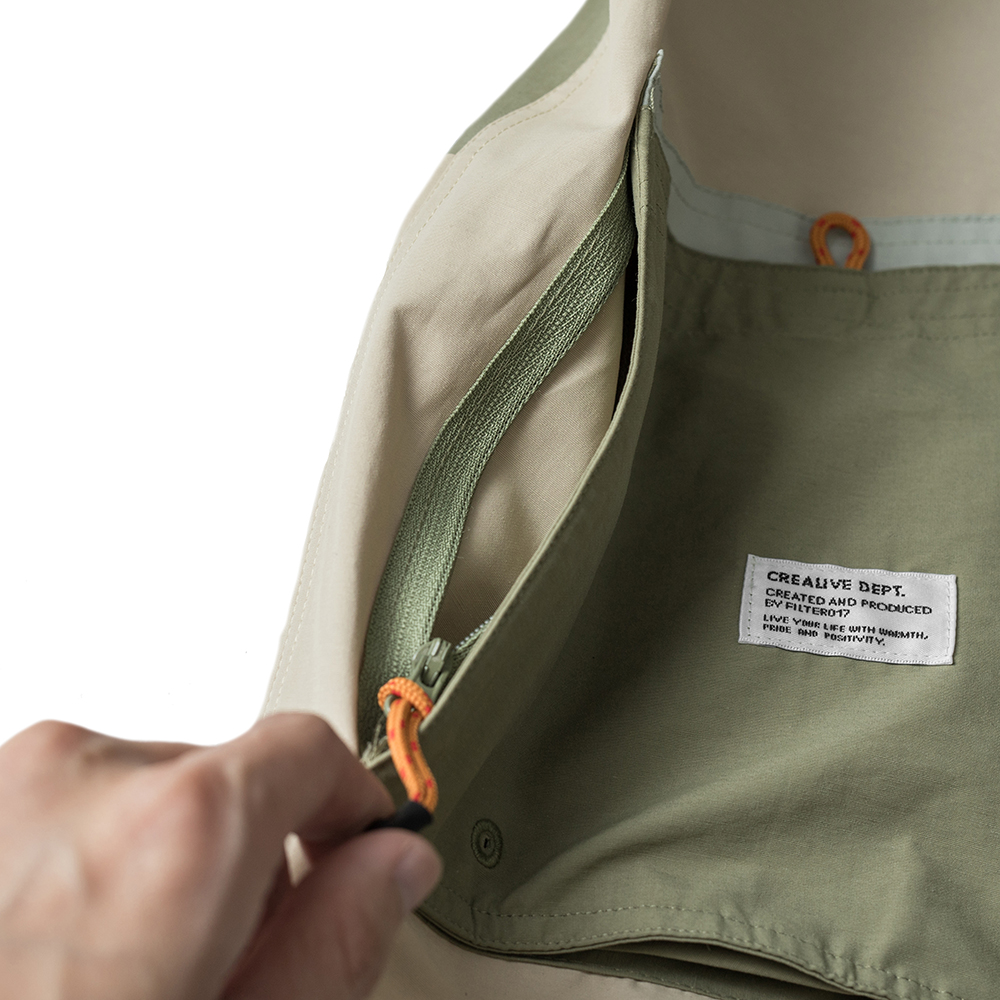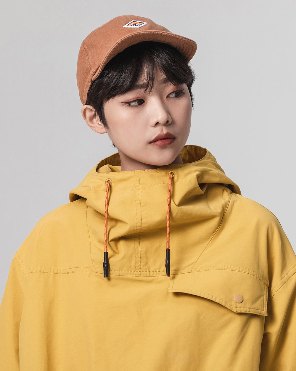 立領連帽設計不僅使罩衫整體視覺更為立體,並同時具備遮陽、擋風之機能性,