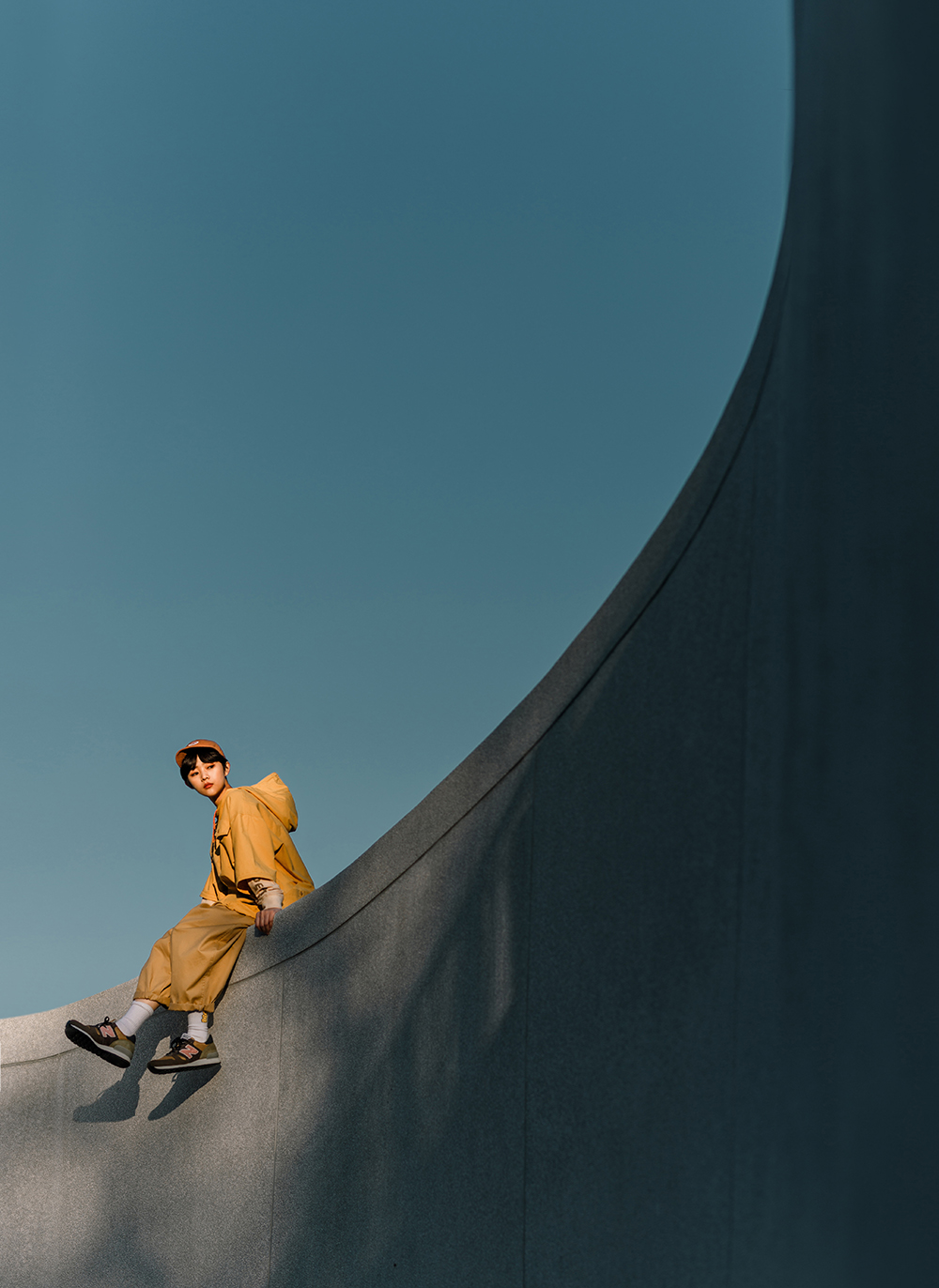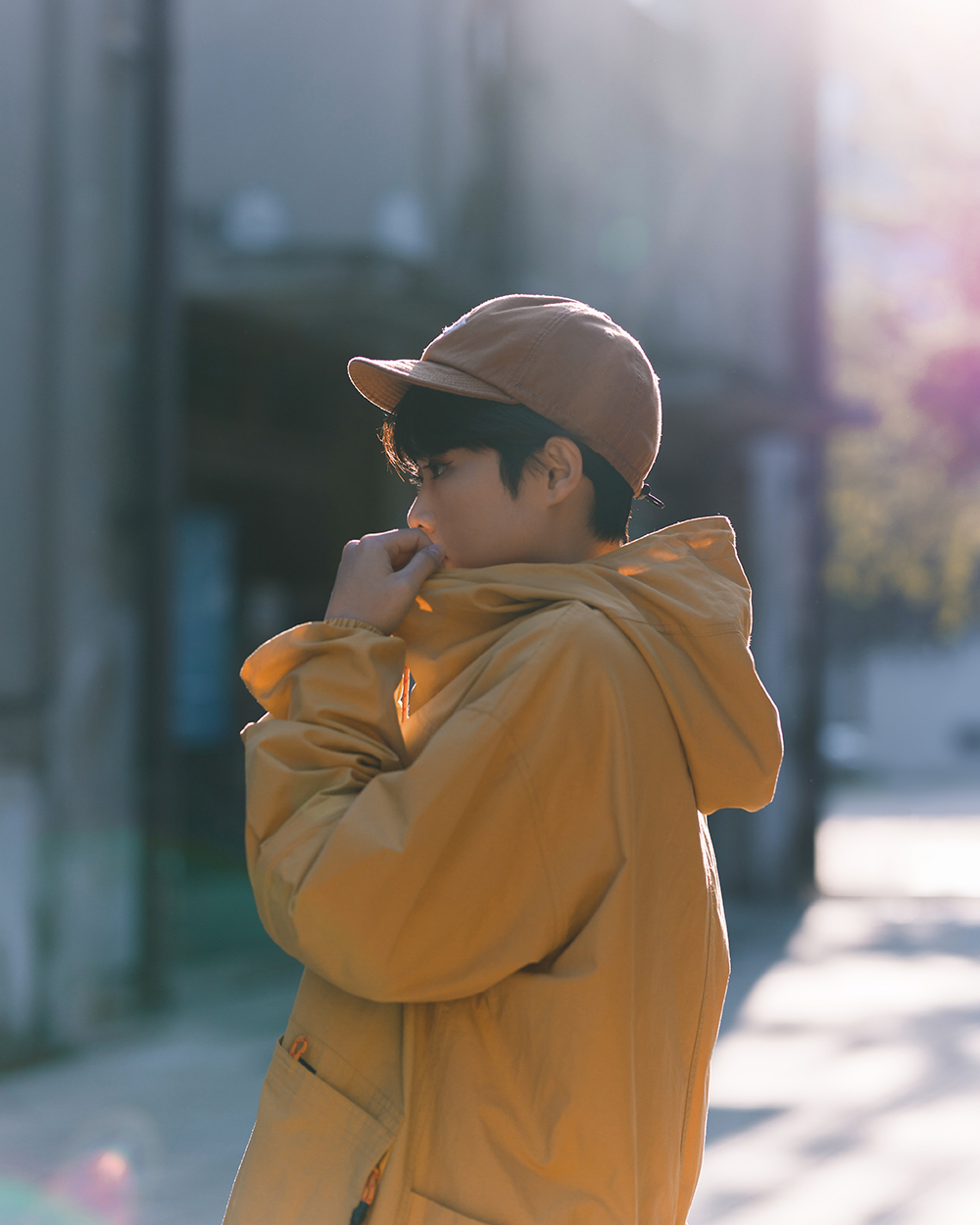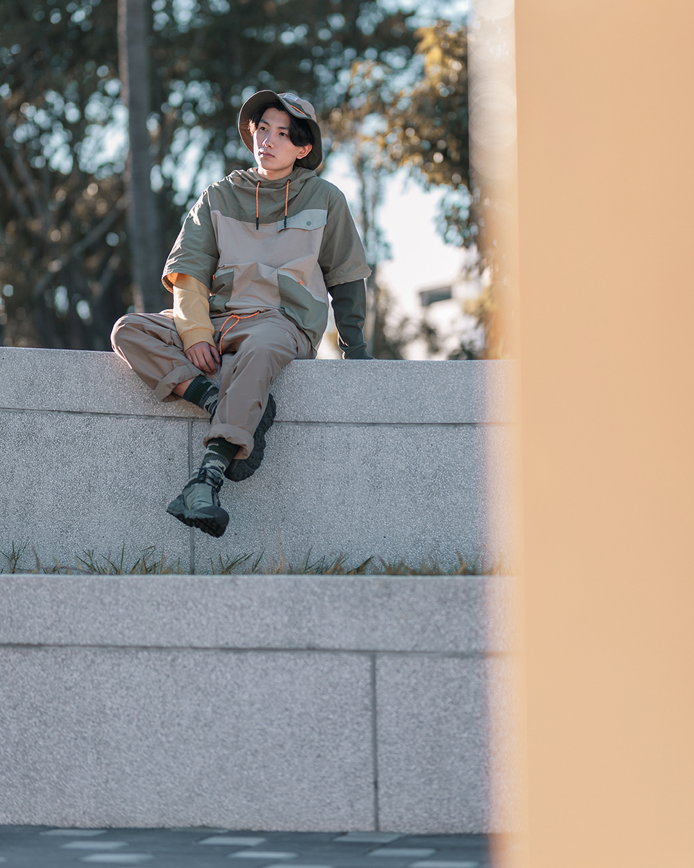 立領連帽設計不僅使罩衫整體視覺更為立體,並同時具備遮陽、擋風之機能性,