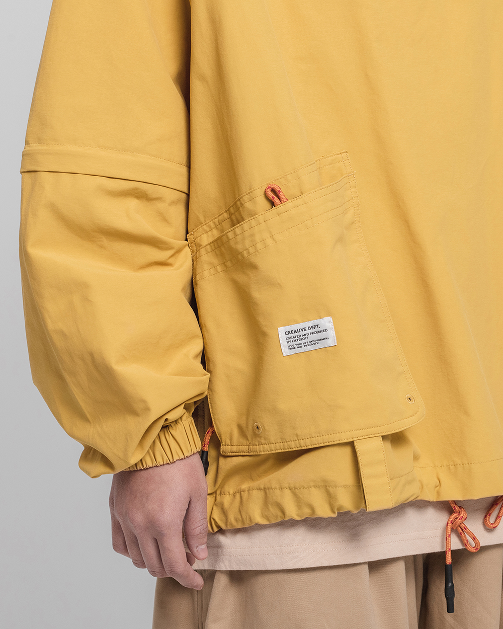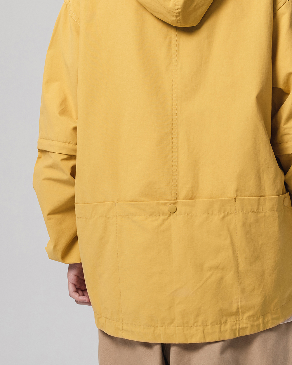 可拆袖以及連帽、下擺的抽繩設計,於任何氣候和穿搭風格中皆可自由進行調整搭配,