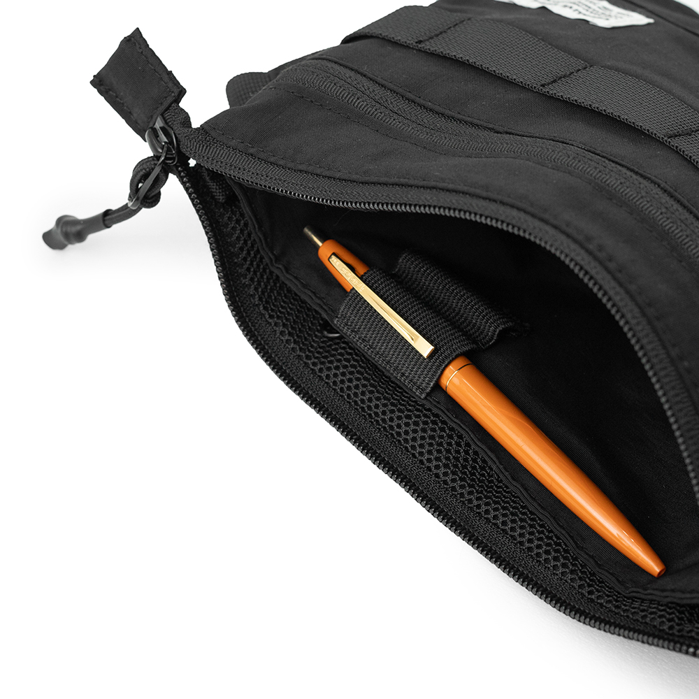 多重拉鍊及網袋、夾層的內袋分層設計,為日常或戶外等各式場合提供多樣化的收納與分類機能,並特別加入軍用裝具 MOLLE 系統,可依需求自由組裝配件,提高掛載自由度。