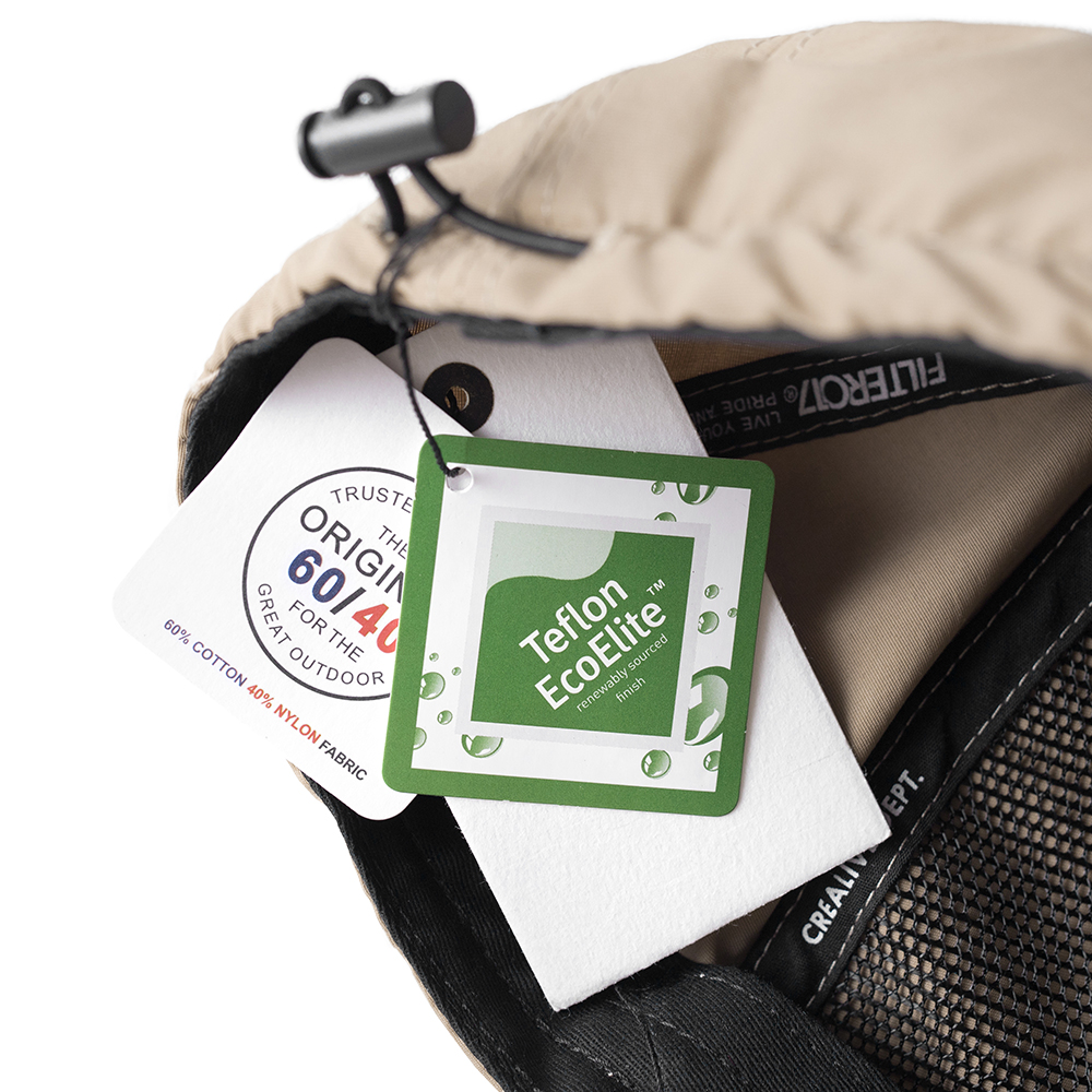 經環保認證的Teflon EcoElite™鐵氟龍塗層加工,更大幅增強了帽款的防潑水、抗汙的機能性,搭配上便於調整帽圍的調節釦設定,展現絕佳的機能質感與戶外風格。