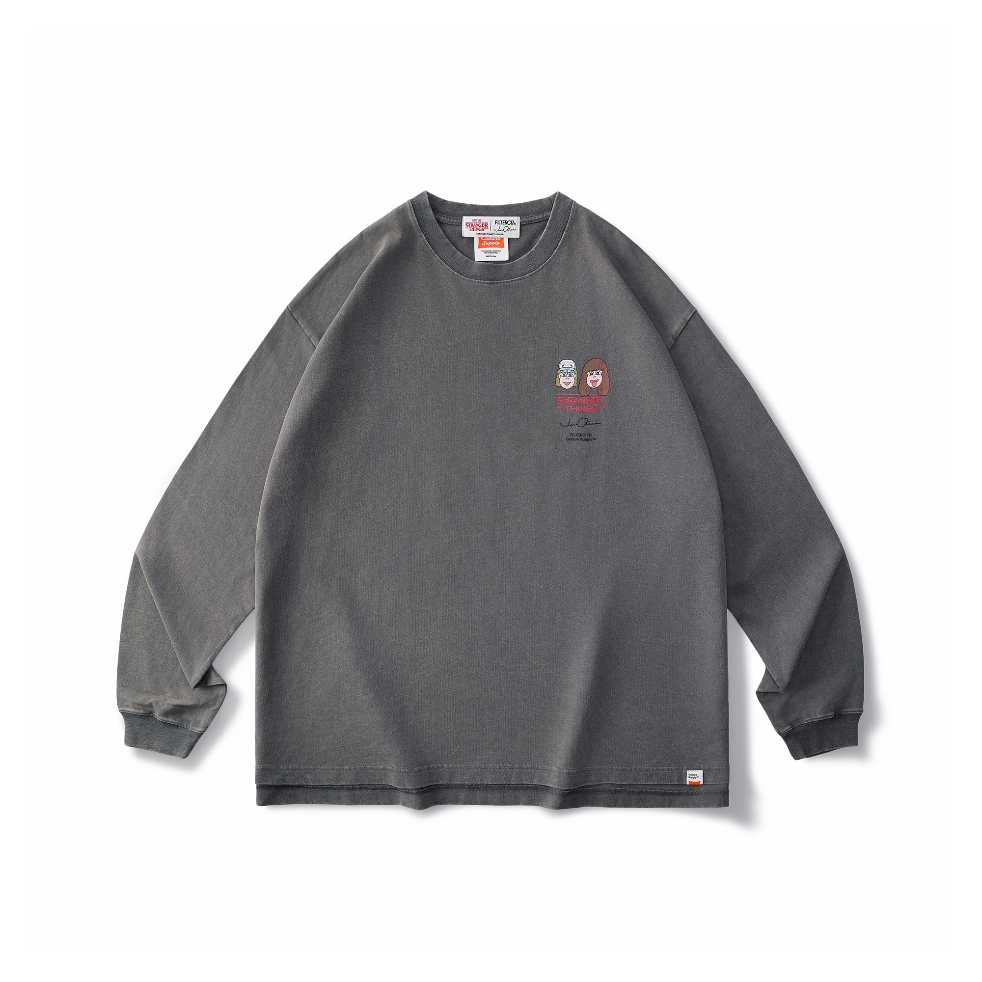 此企劃以全球熱播美劇《怪奇物語》第4 季核心角色與劇情主軸“友情”為靈感,融合80 年代美式經典風格與科幻元素,邀請日本知名藝術家Jun Oson 合作 ,以其“花生臉型”角色風格進行轉化,並透過FILTER017® 擅長的元素混合語彙加以設計整合,跨界影劇、時尚、潮流、當代藝術與次文化領域,複合而成創意大膽且層次豐富的內容。無論是FILTER017® 支持者、藝術設計或復古文化愛好者、《怪奇物語》劇迷,亦或是Jun Oson 藝術收藏家,都能在本次企劃中發掘創意巧思,衍生內容涵蓋服飾、藝術收藏、配件與周邊單品,皆可感受到飽滿的誠意與細節。
