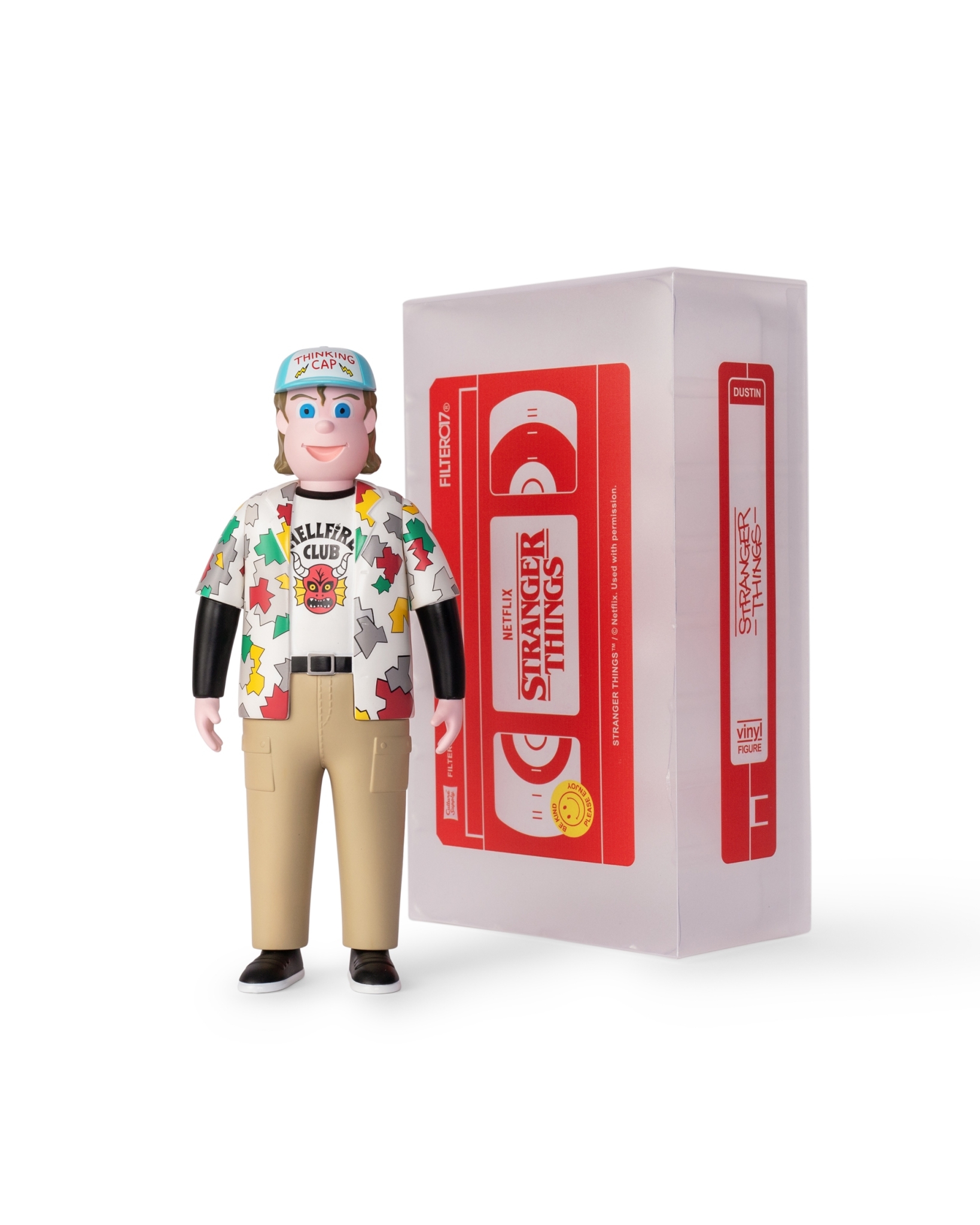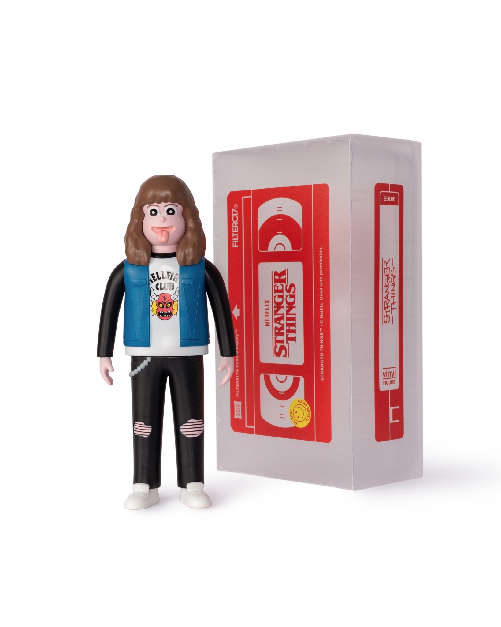 內容包含Eddie 、Dustin 共2款角色之立體造型收藏軟膠,以80年代"VHS錄影帶"造型概念為精裝外盒設計,透過磨砂霧面的透明PVC包材,將內裝角色的輪廓隱約展現,增添玩味巧思,每只角色造型高度約10英吋,實體手感具有扎實分量,部分零件為可動結構,精緻的塗裝及繁複的圖紋移印工藝,並由台灣知名設計師玩具單位IN TOY 生產技術協力,賦予收藏成品高度完整性,無論是FILTER017® 支持者、藝術設計與復古文化愛好者、《怪奇物語》劇迷,亦或是Jun Oson 藝術收藏家,皆能在此次的藝術軟膠套裝中,感受到飽滿的誠意與細節。