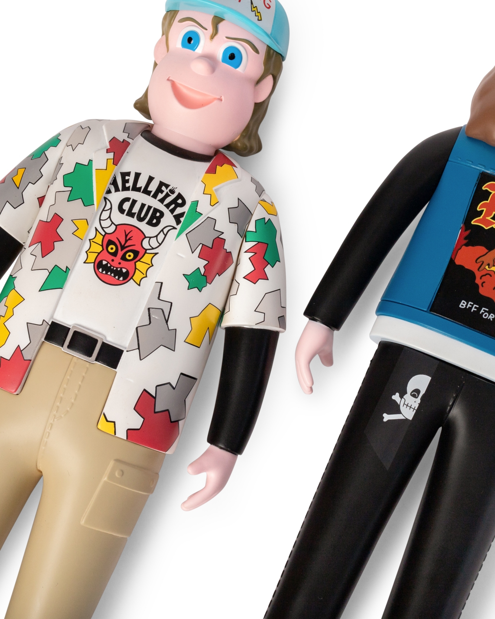 以全球熱播美劇《怪奇物語》第4 季核心角色與劇情主軸“友情”為靈感,融合80 年代美式經典風格與科幻元素,考究原作人物細節人設與造型,邀請日本知名藝術家Jun Oson 合作 ,以其“花生臉型”角色風格進行藝術插畫的轉換,並以PVC搪膠材質,透過複雜程序與製作工法,精緻呈現Jun Oson 所詮釋的立體造型特色,巧妙復刻劇中角色經典的形象。