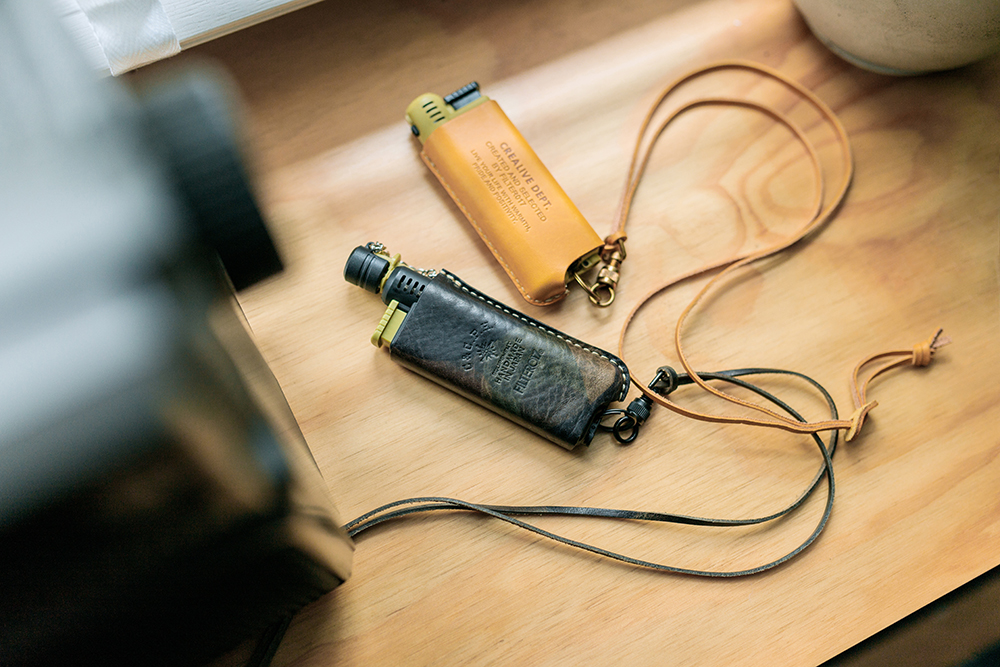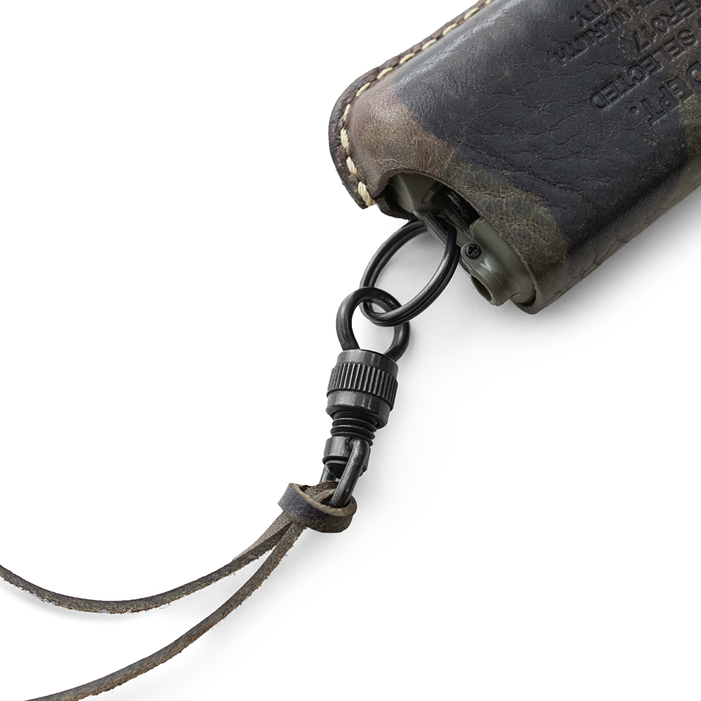 而於皮套表面的品牌合作鋼印、避免於戶外遺失的掛頸皮繩,以及無需取下保護套,即可為點火器補充瓦斯和調整火力的底部開口細節設定,更帶出C&C.P.H. EQUIPEMENT充分融合機能性與優雅質感的獨特品味。