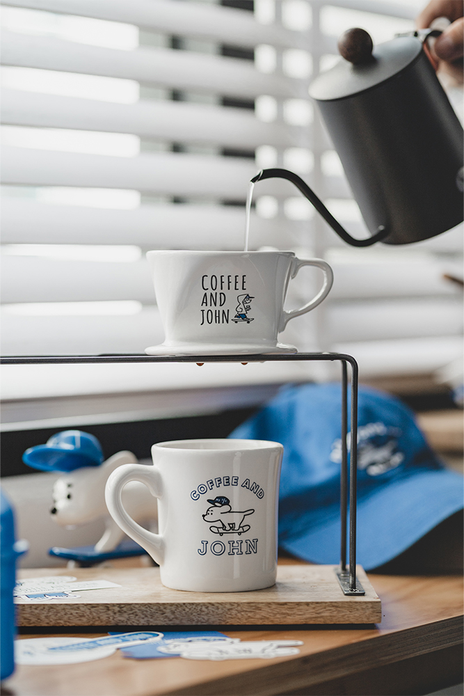 COFFEE AND JOHN,為一個熱愛咖啡及美式文化的生活品牌,2022年度於台中勤美 PARK2 草悟廣場成立了一間形象咖啡外帶店,這是一個以日本插畫家 柴田昌達 的原創角色 - JOHN 為主角,結合美國、日本街頭文化、音樂、咖啡的複合空間,本次 Filter017 受邀作為授權商品指定合作單位,執行相關產品設計、監製與發行。