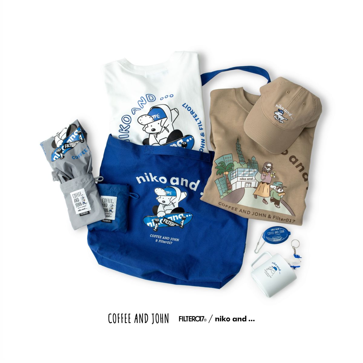 COFFEE AND JOHN 三方聯名特別企劃,由 Filter017® 受邀擔當 COFFEE AND JOHN 及 niko and ... 商品授權指定合作之發行單位、操刀統籌系列視覺形象。