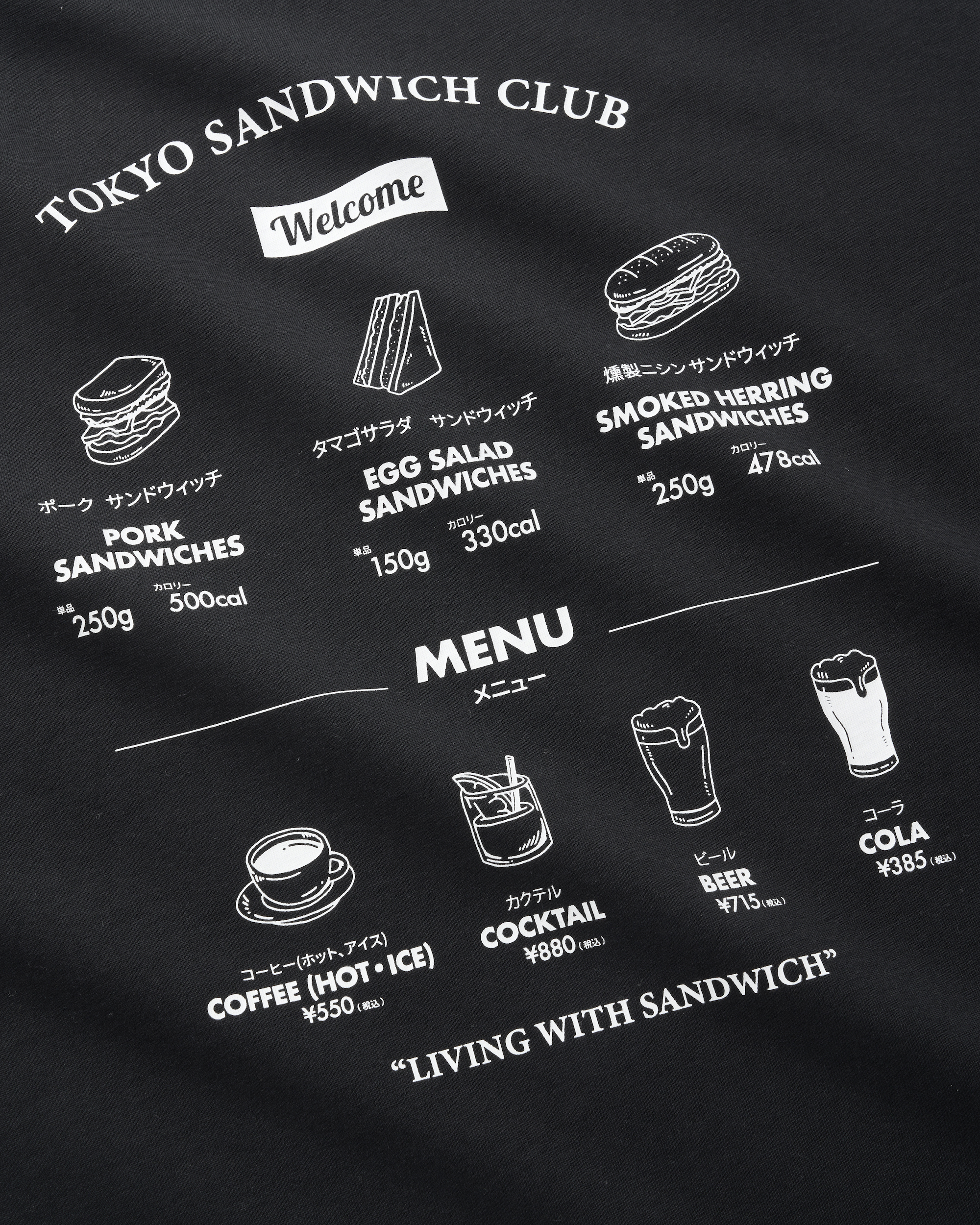 以Tokyo Sandwich Club 品牌經典菜單圖像作為主視覺,嚴選高品質棉料製作,並採用符合東方人身形的微寬鬆版型,整體材質與輪廓於日常生活帶來舒適俐落的穿著體驗。