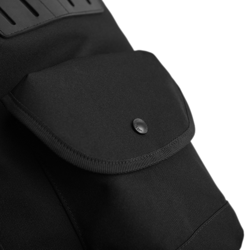以美軍70年代之經典軍用背包做為改良之基礎考究,選用900D軍用防潑水特性之尼龍材質,抗磨且不易吸附髒污,