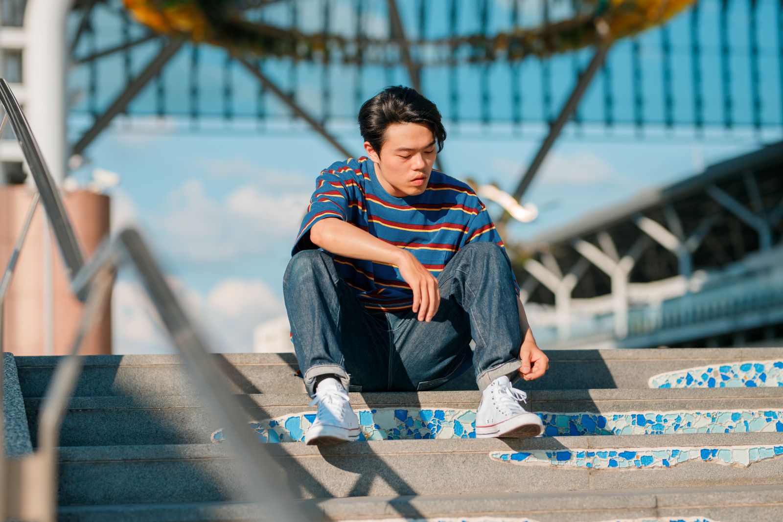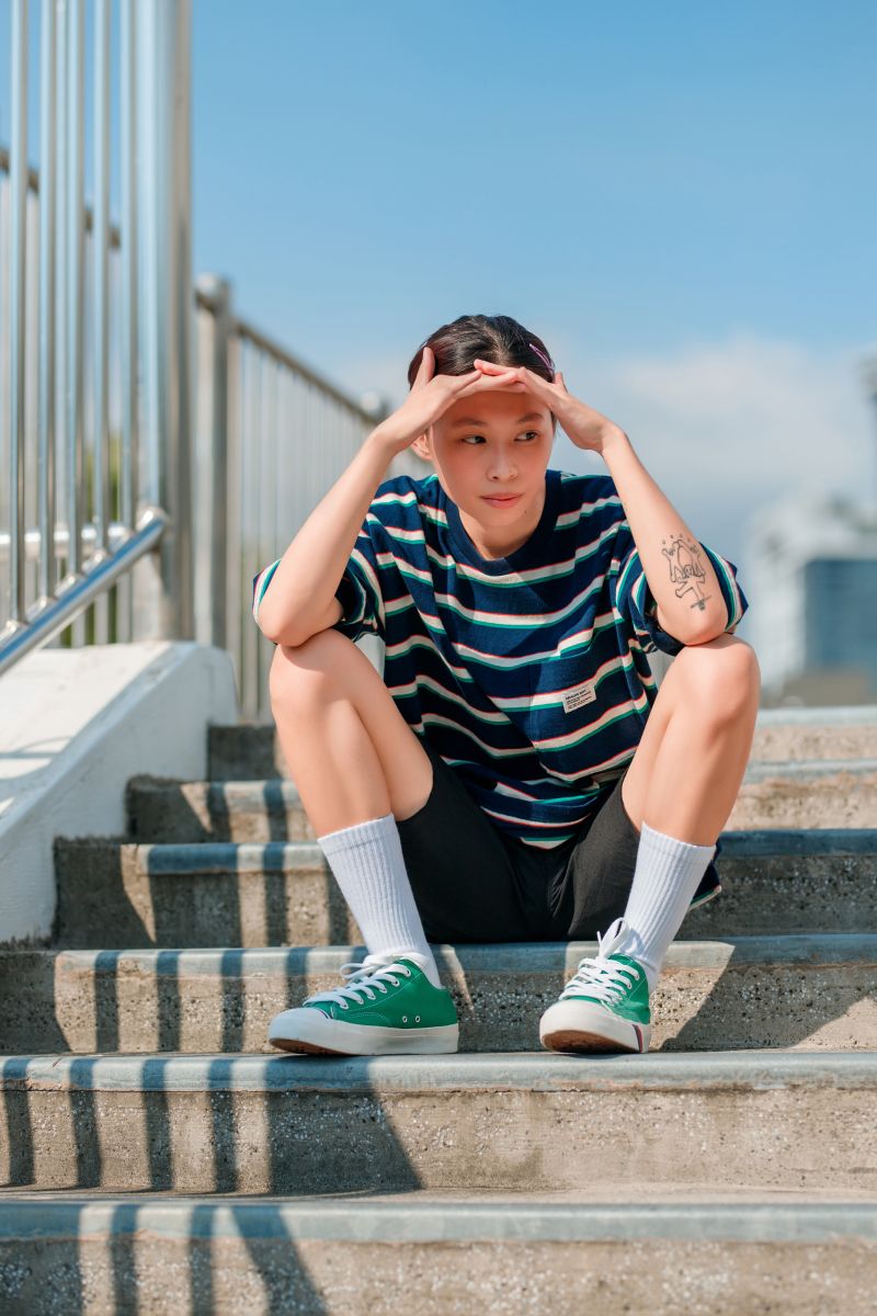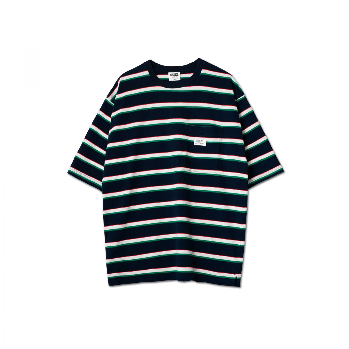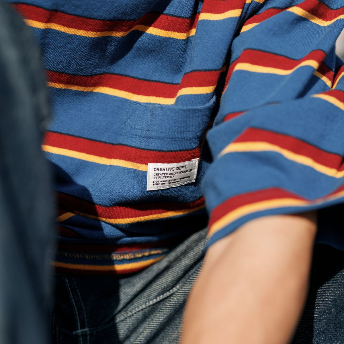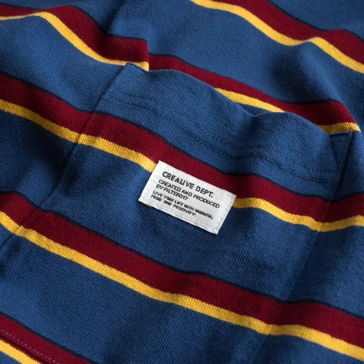 結合穿搭潮流中經典的條紋元素與寬鬆落肩版型設計,