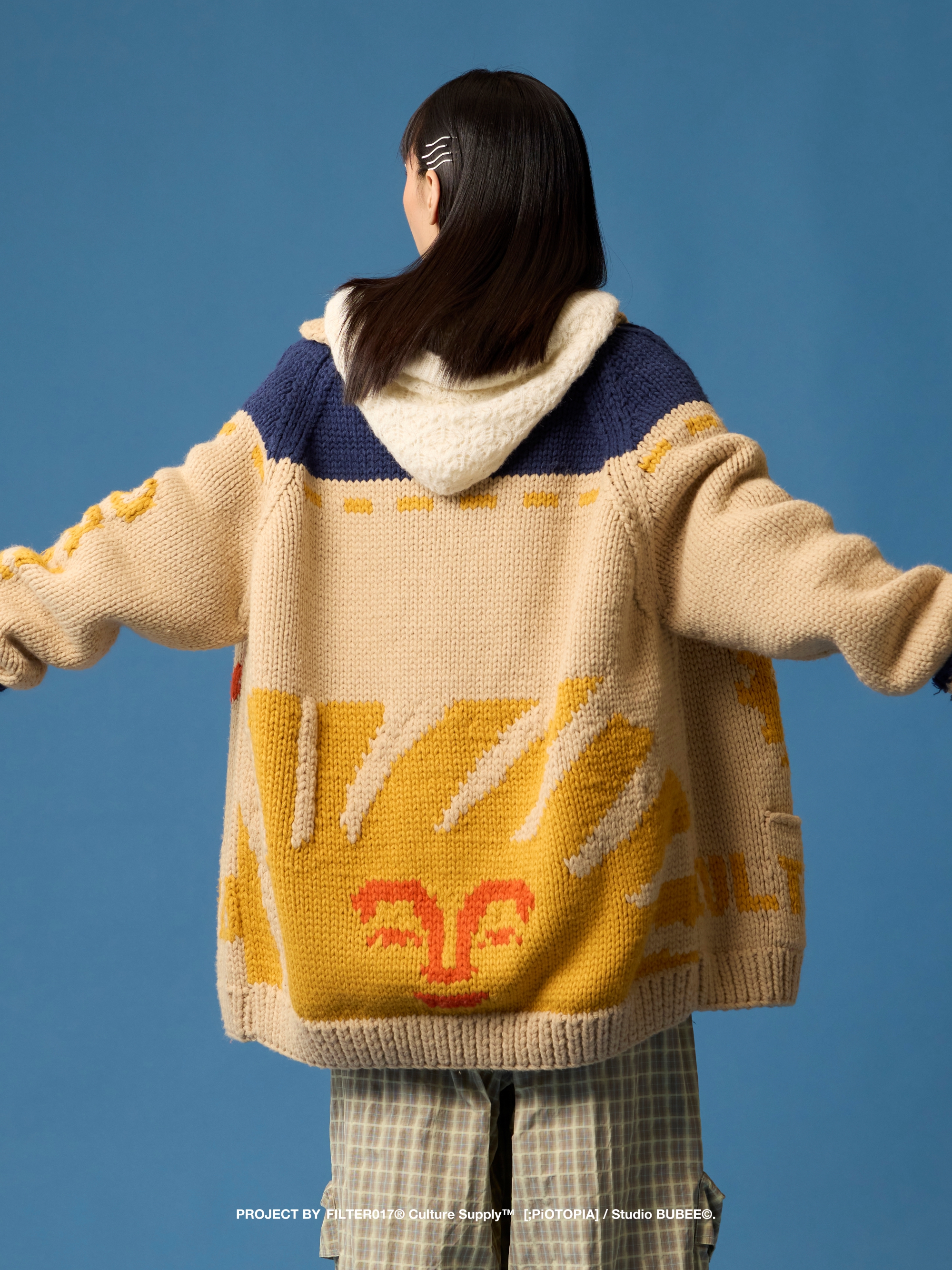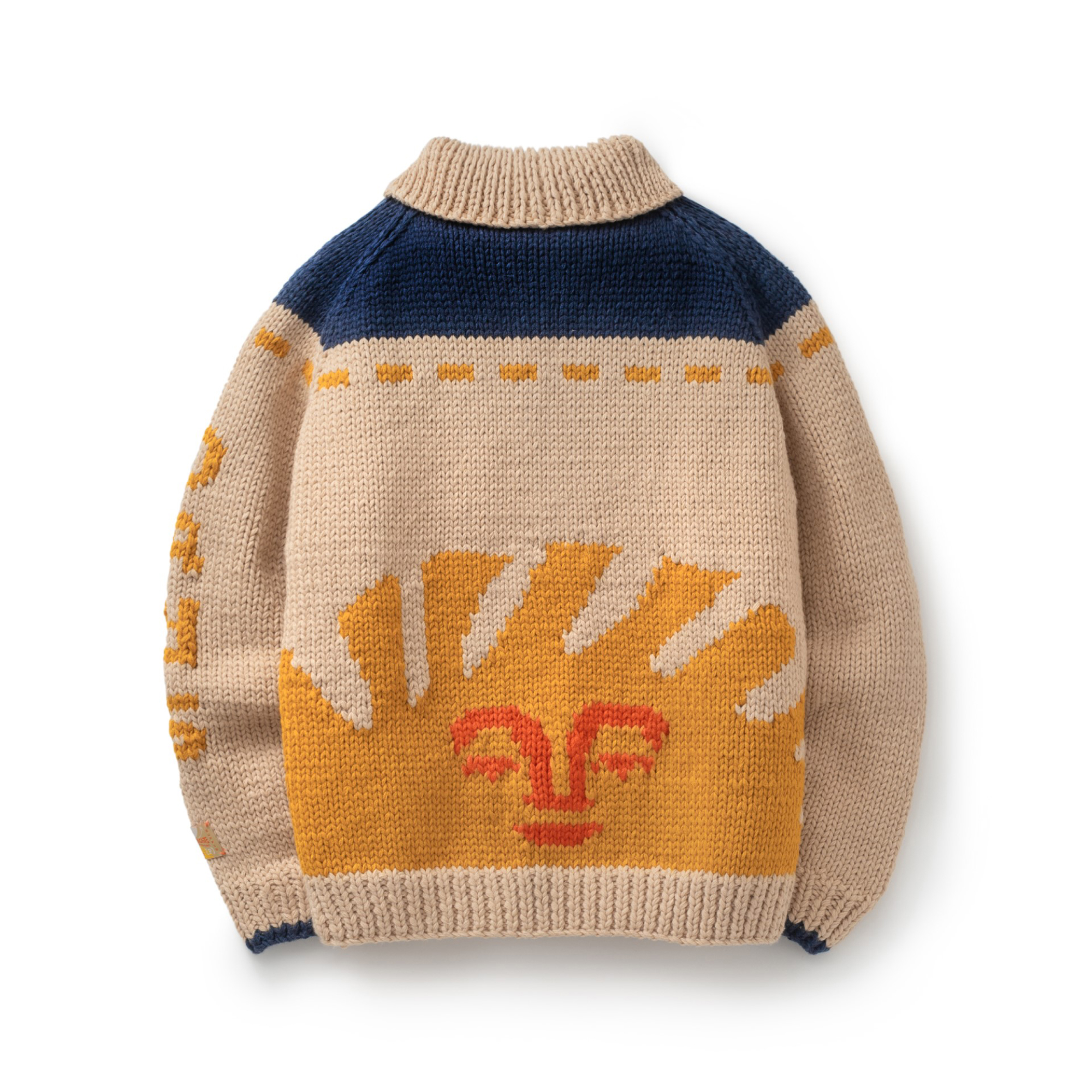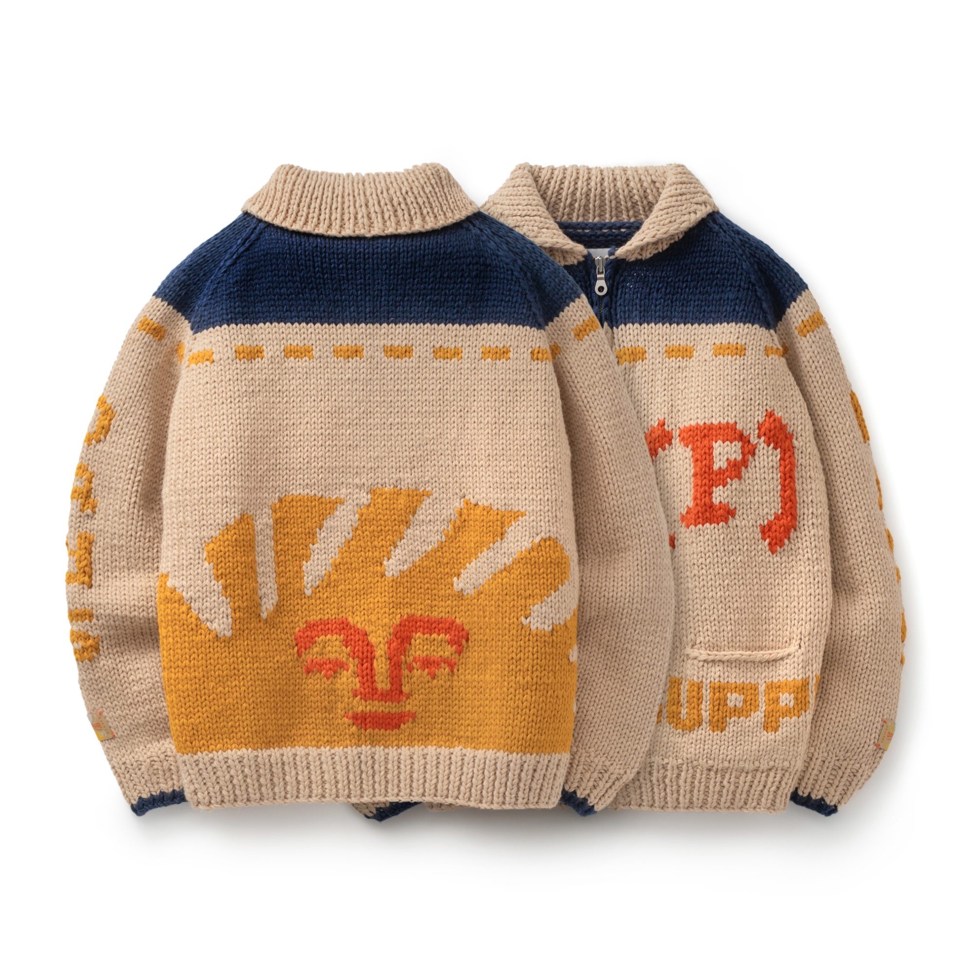 以源起於19世紀,由居住在加拿大的原住民流傳而來的考津毛衣作為考究,承襲古法採手工方式織造,帶有粗針線紗勾勒特有的凹凸紋理,將圖像以幾何、點陣編織呈現,外觀配置翻領與前插袋設計,並採用YKK®拉鍊便於穿著,整體禦寒保暖為本次企劃不可錯過的重點單品。