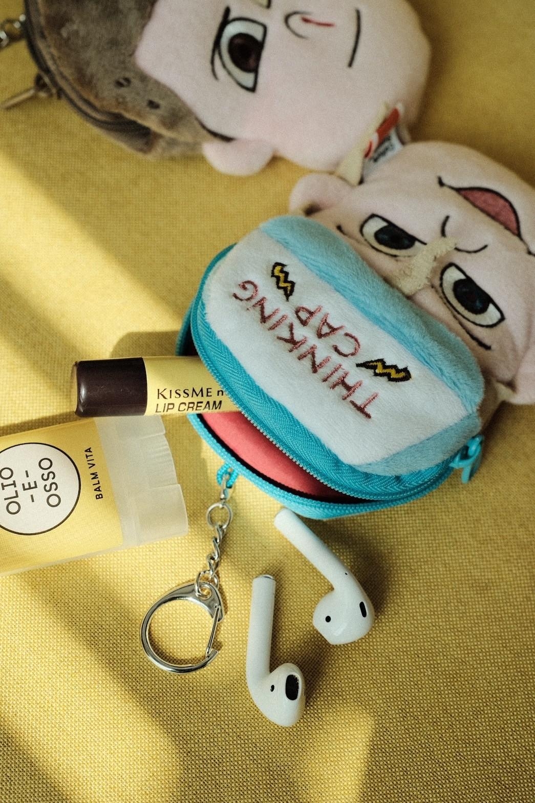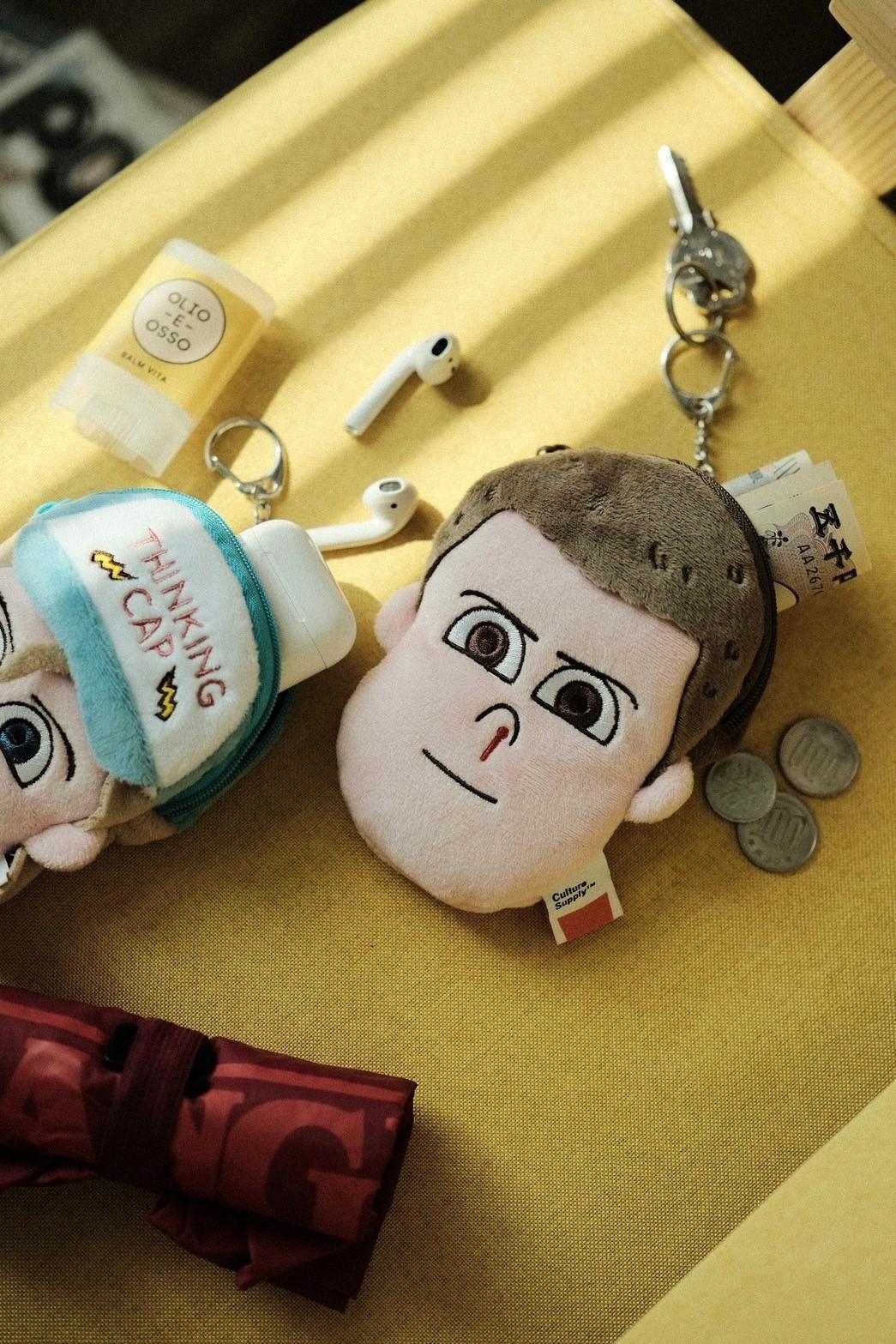 此款單品採用觸感極佳的絨毛布面與細緻的刺繡製作,搭配裁片的層次推疊與充棉立體化的效果,整體以小包形式呈現,可以放置各式生活小物,亦可做為吊飾使用,且因應環保,內部附有購物袋,購物袋與小包之間有掛鉤可使之連接,如此便利與收納實用的功能,為生活上不可或缺的隨身小物。