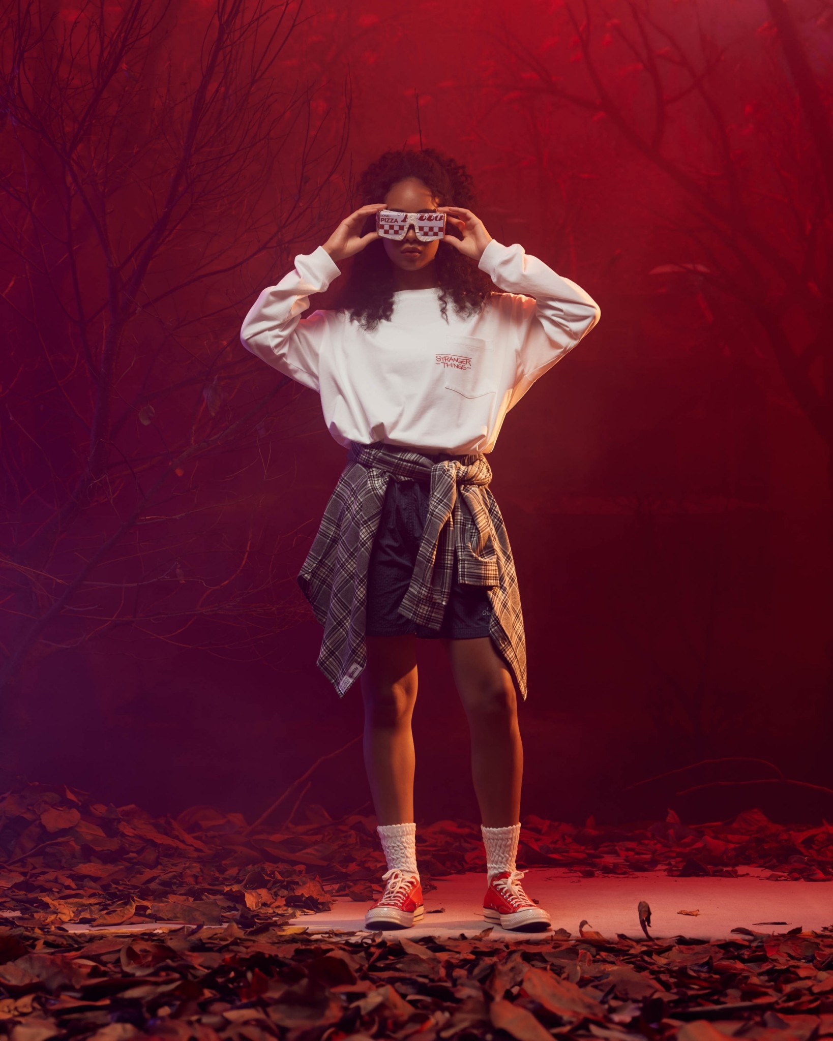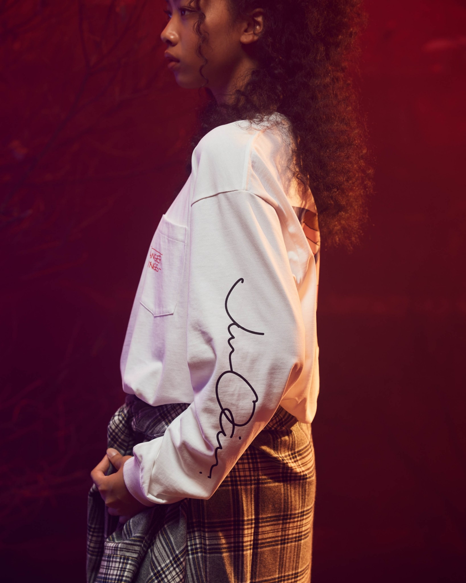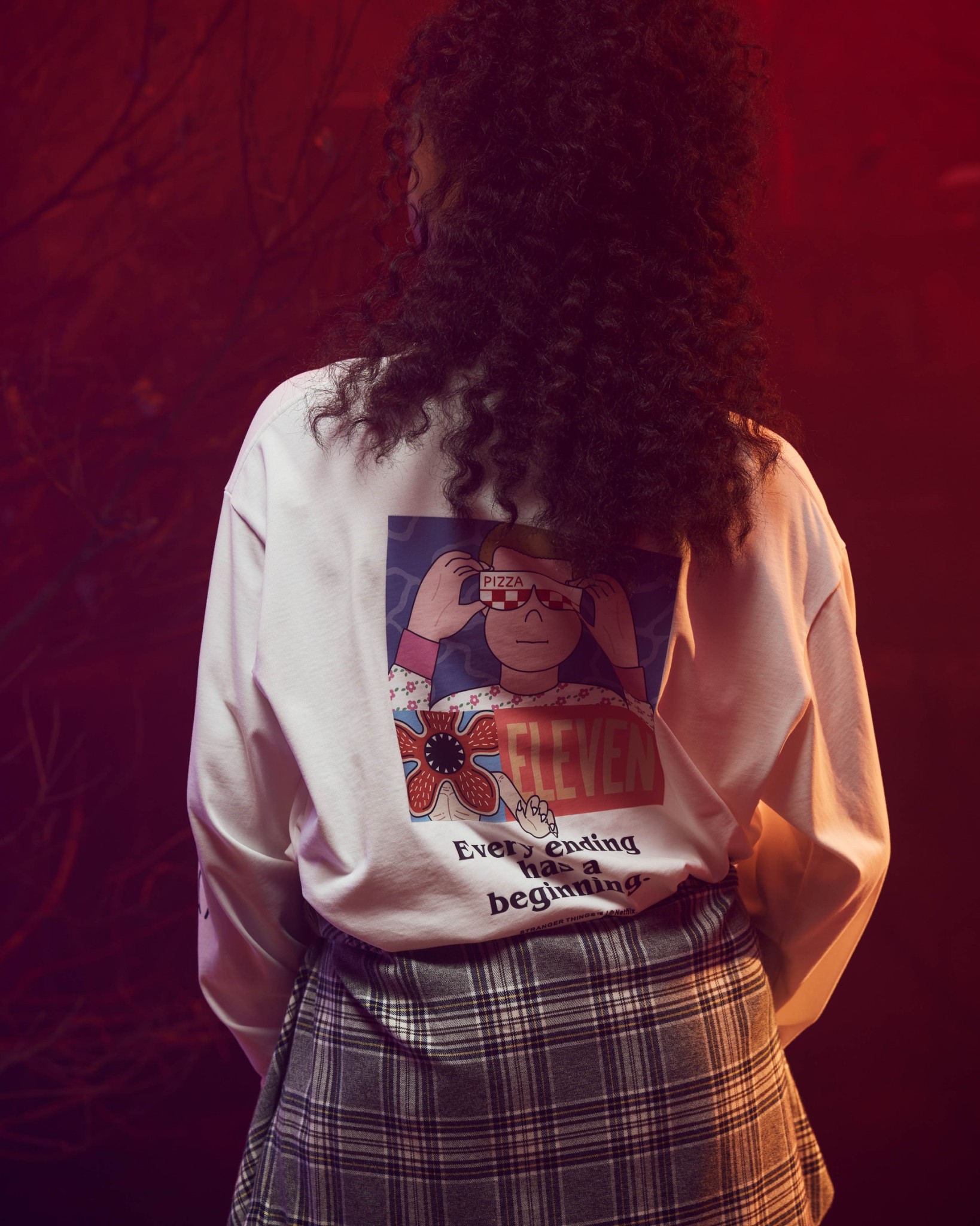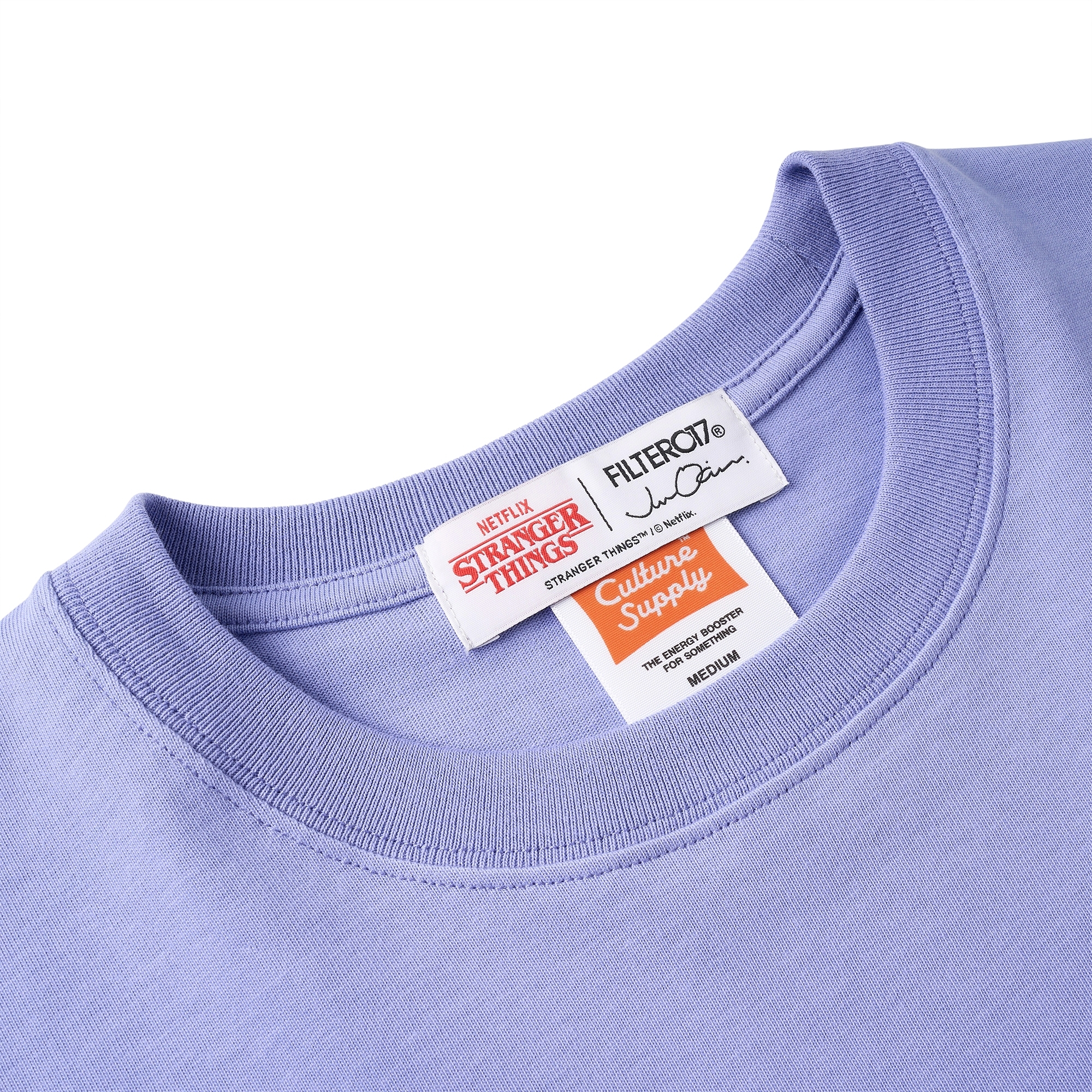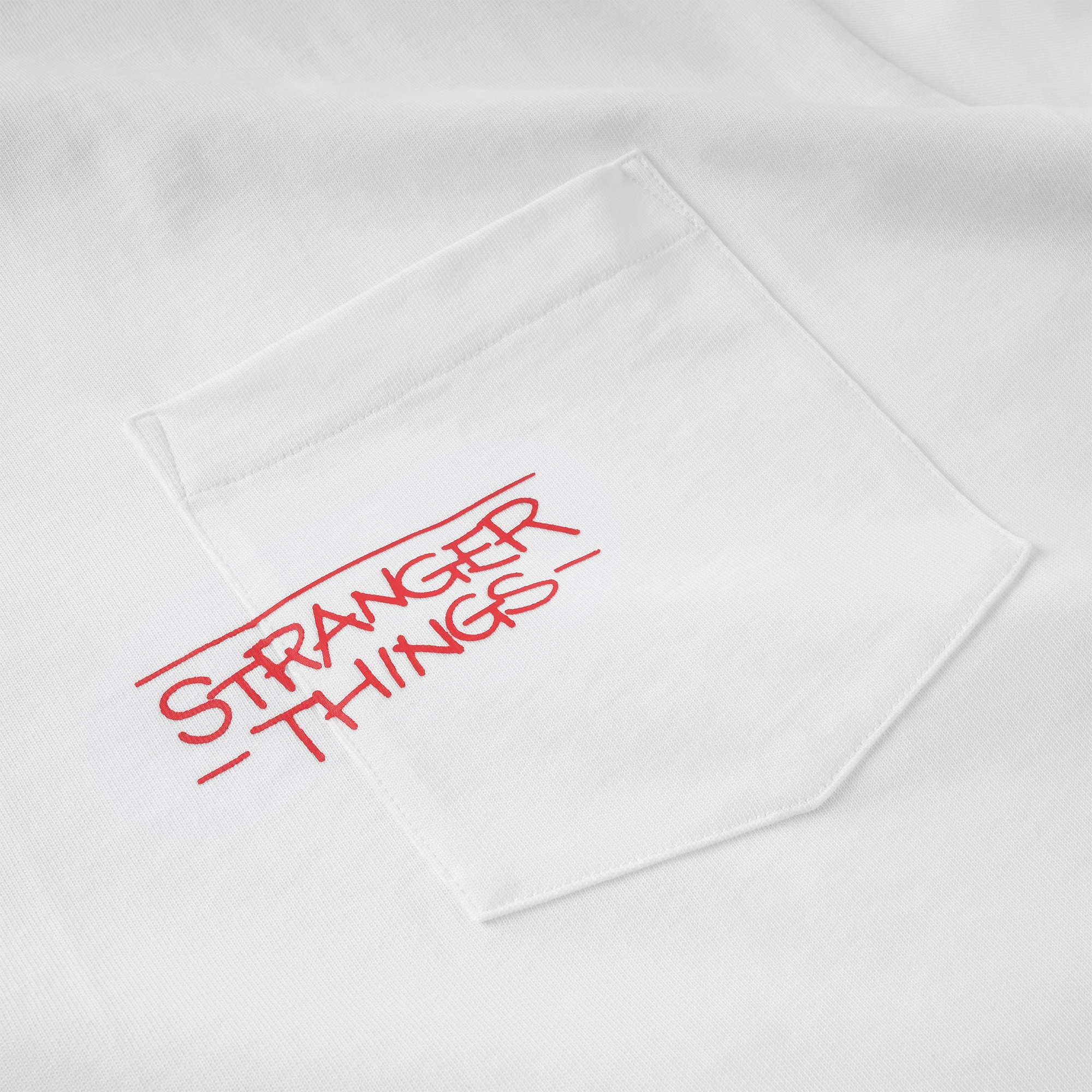 以Jun Oson 常見的視覺分割畫風,巧妙重現劇中戴上Eleven戴上披薩盒眼鏡的經典造型與張牙舞爪的魔神形象,呈現趣味而詭譎的對峙氛意象。嚴選厚實高品質棉質面料製作,落肩但不過顯鬆弛的寬鬆版型設計,前短後長的層次剪裁,提升穿著舒適度與增添穿搭視覺,為日常帶來絕佳的穿著體感及休閒氛圍。