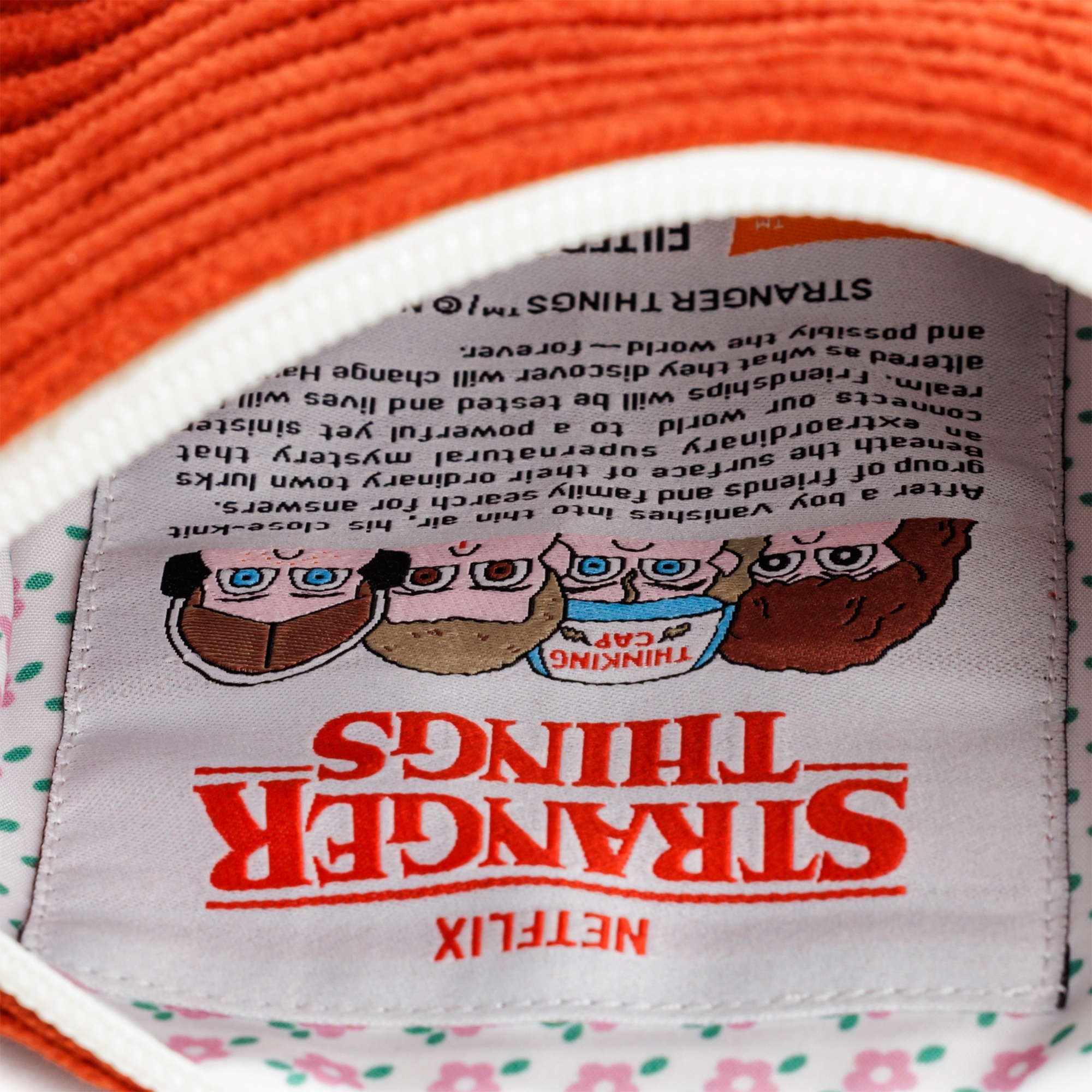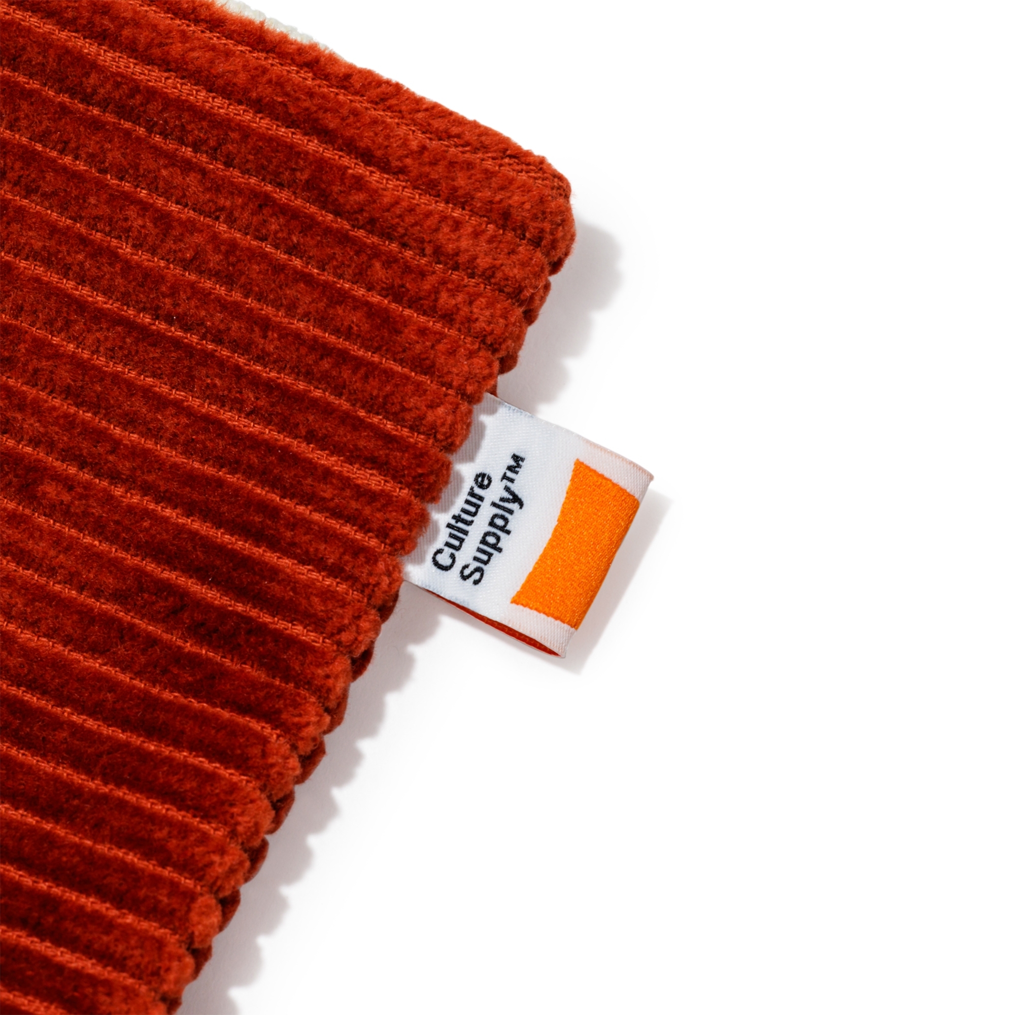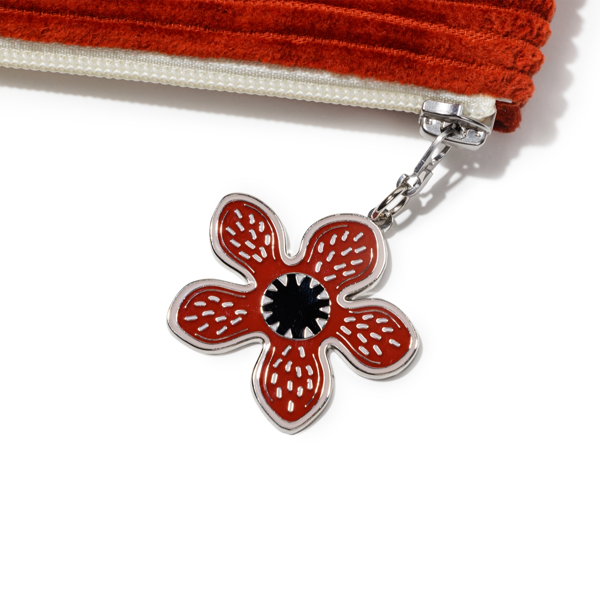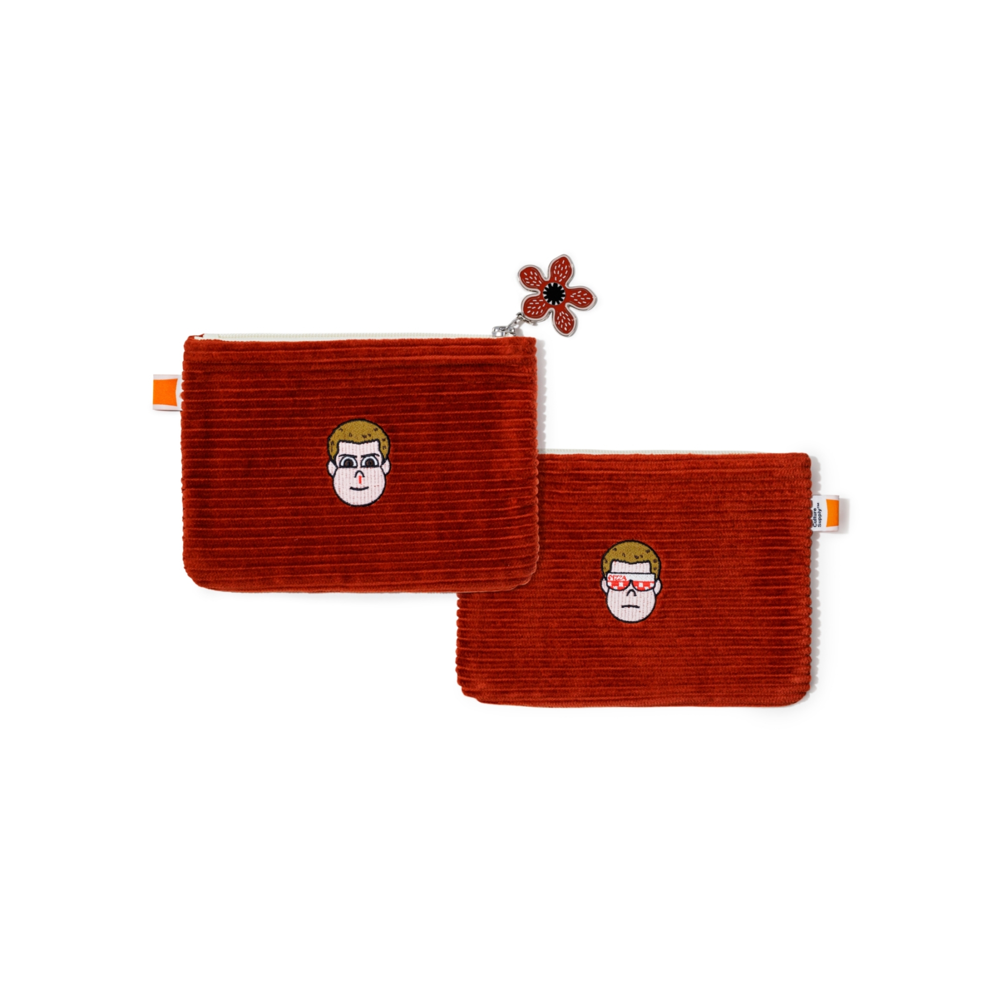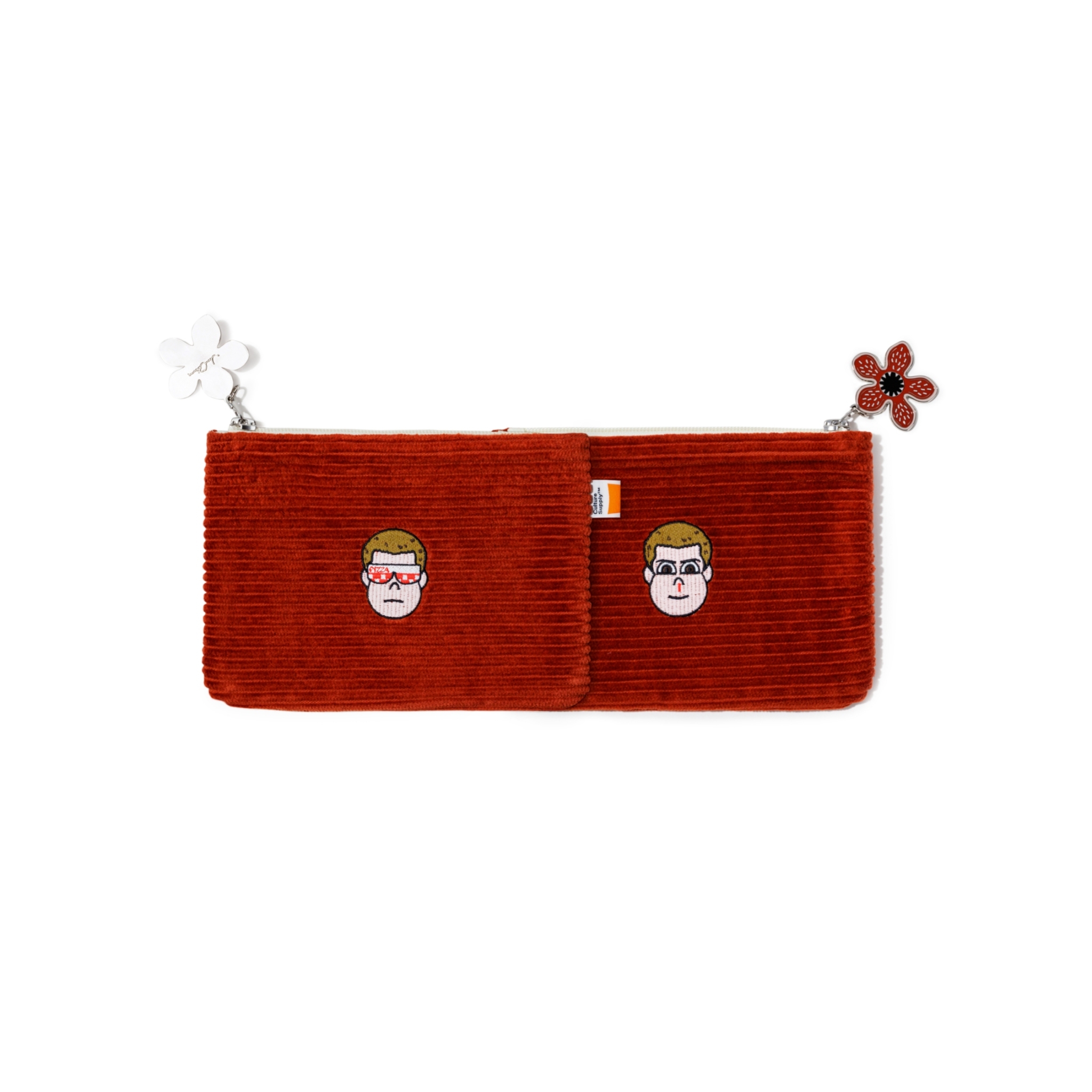 此款隨身小包,巧妙運用多種材質進行縫製,以布紋風格鮮明的燈芯絨面料,搭配電繡與內裡滿版圖像印製,加上精緻的金屬拉鍊飾片,整體呈現滿滿誠意與巧思,於日常便於攜帶且可裝載各式生活小物。