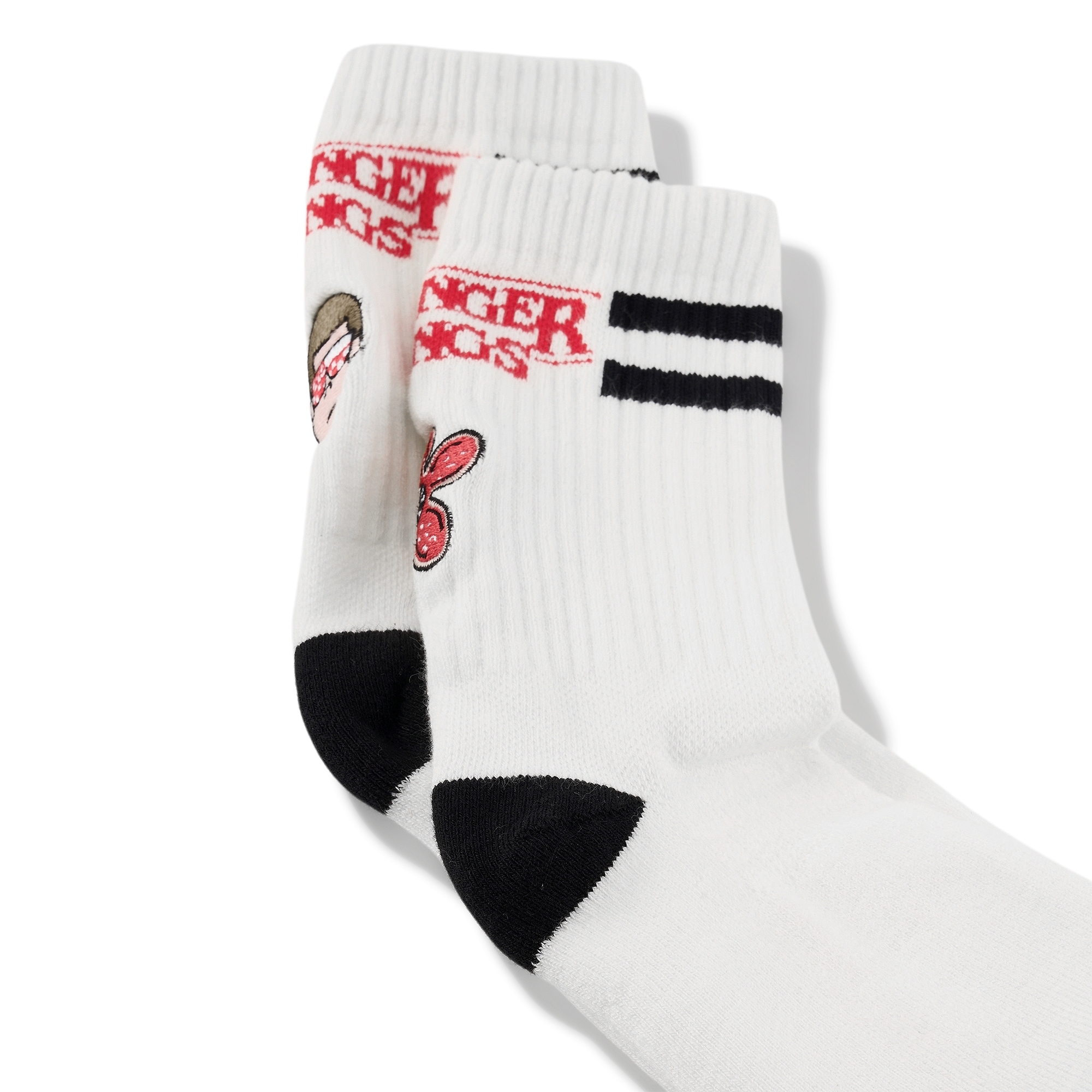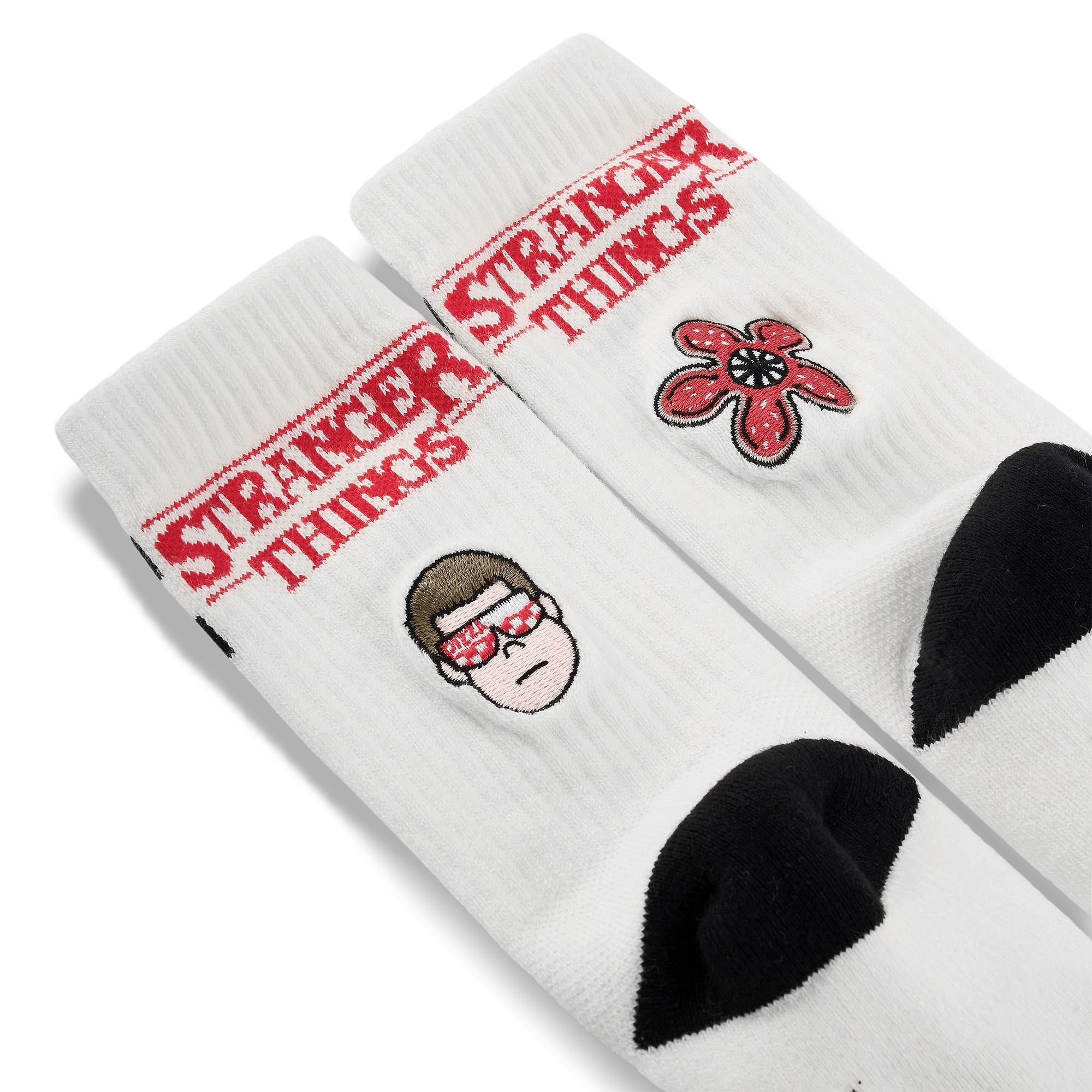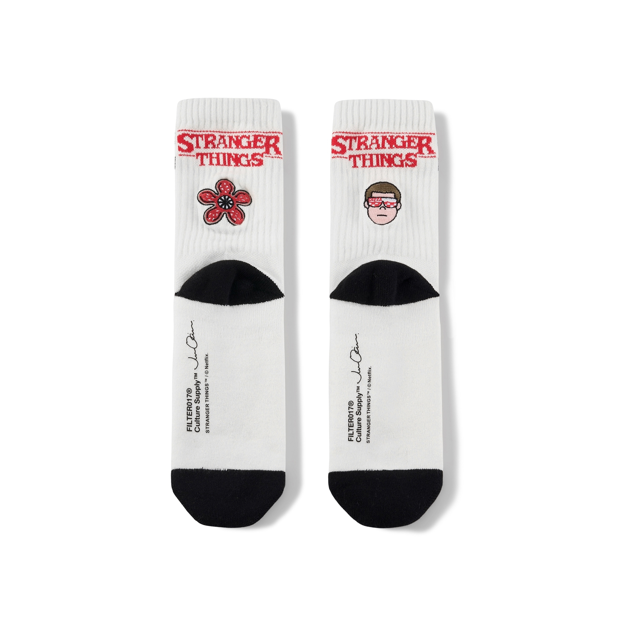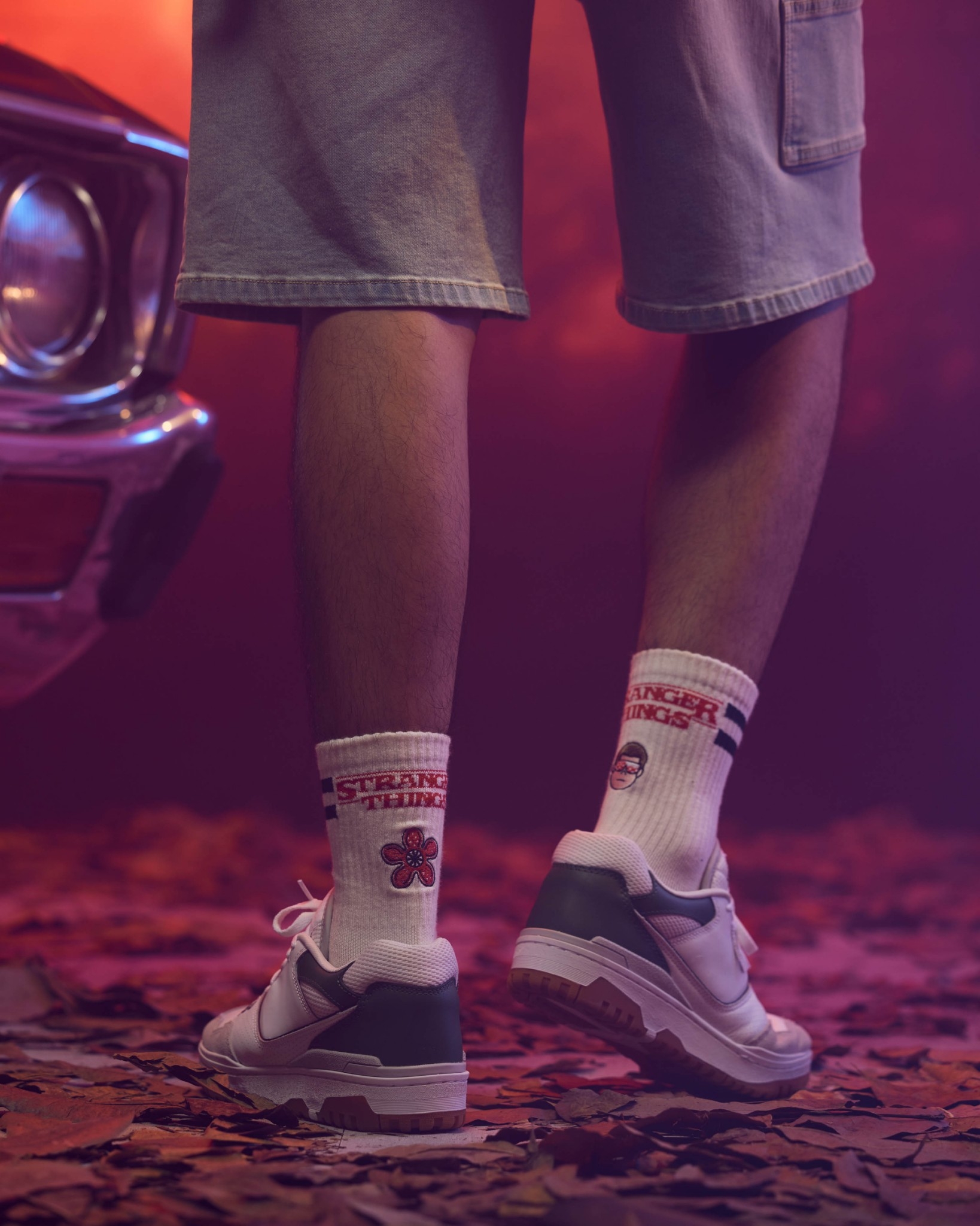 視覺考究80-90 年代美式學院運動風格,以經典鮮明的條紋樣式為基礎,搭配圖像電繡,並特別委託專精織襪的台灣知名品牌faam®製作,於襪身表面以多種織法增添層次及變化性。選用手感滑順的精梳棉以及Protimo® 抑菌紗、LYCRA® 彈性纖維、毛圈緩震,給予襪款最佳的品質與耐用度。