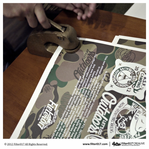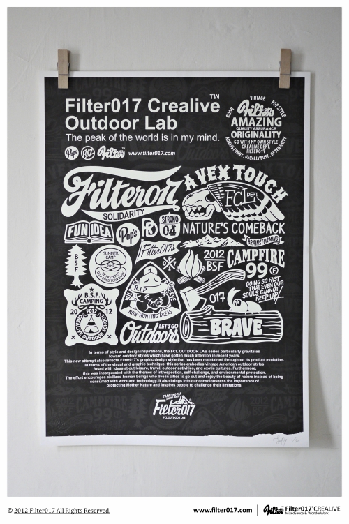 2012年團隊以「FCL OUTDOOR LAB」為創作主題,正式推出成軍以來官方第三張手工網版畫作, 此次在印刷技法挑戰了更具難度、製作程序複雜且成本更高的「複合印刷技術」,嘗試以印刷機及傳統手工網版印刷兩種方式相互結合, 為此在複合過程中幾經失敗研究,終以繁複工序克服了因紙張在印刷過程受熱收縮所造成的錯版問題,成果相當得來不易。