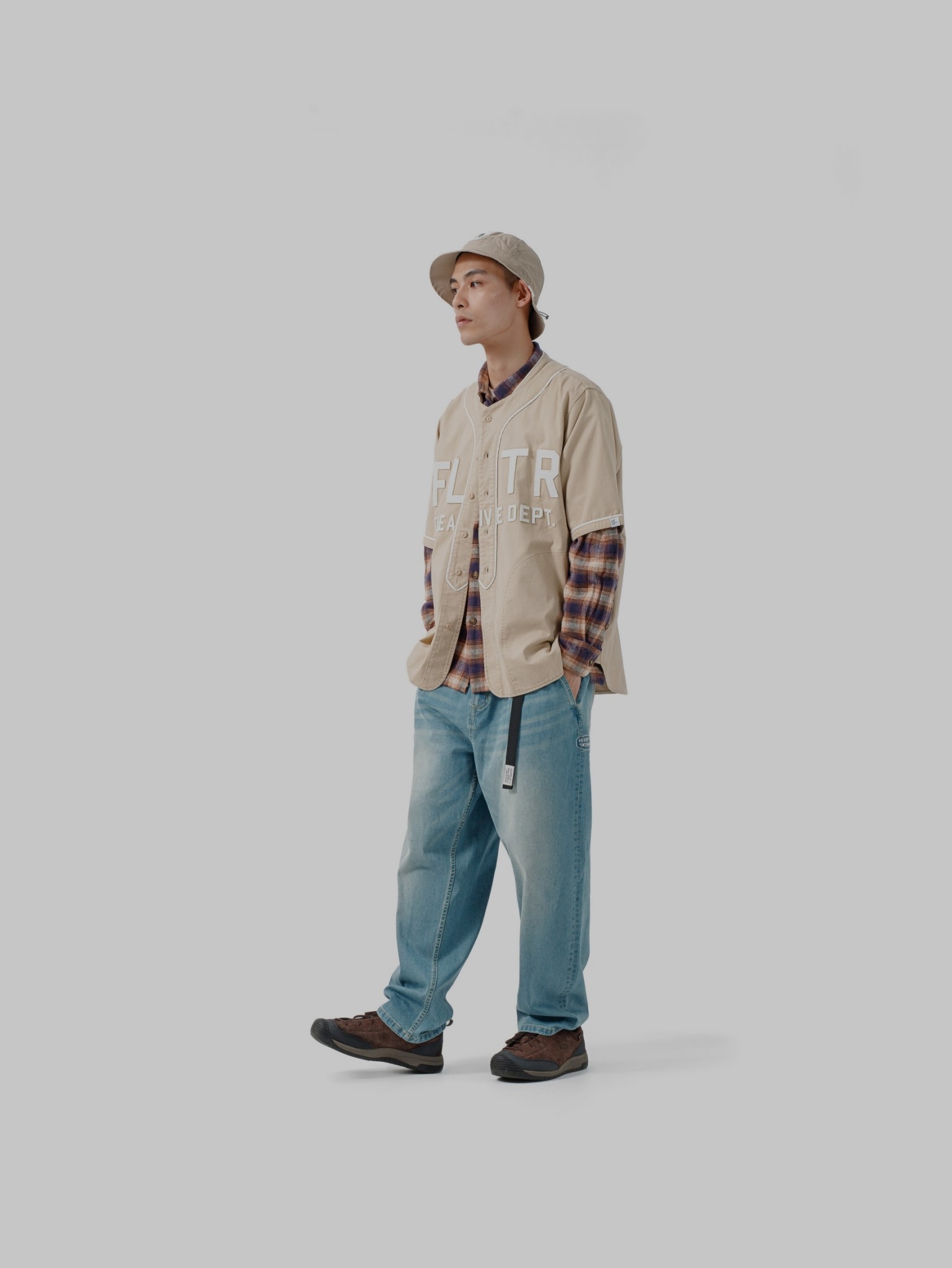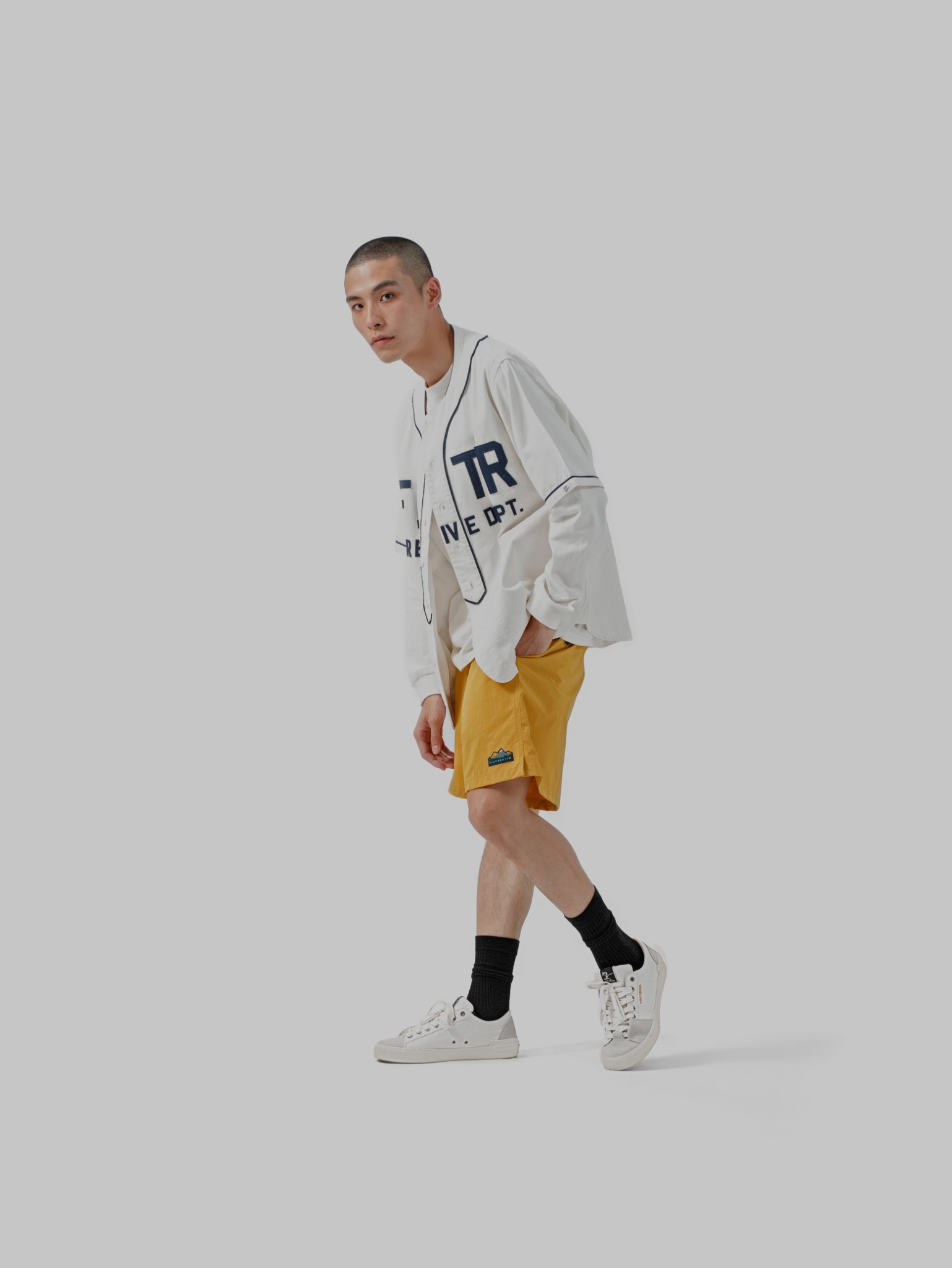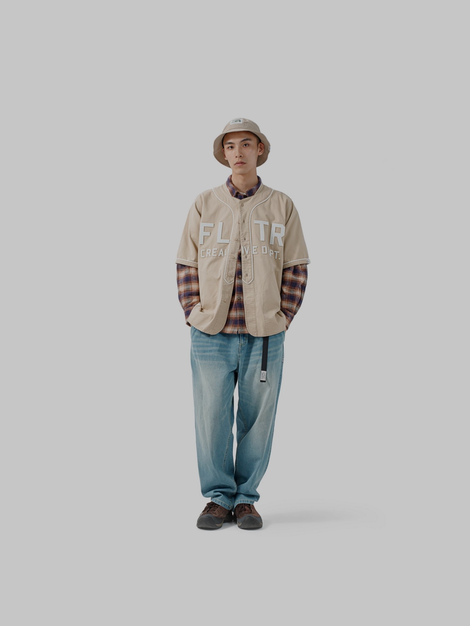 以美式復古與街頭文化底蘊為靈感,考究取材早年美式棒球隊制式運動服,胸前箭形開襟以出芽工藝設計搭配毛氈布字樣,本體嚴選磨毛棉質厚磅斜紋以石酵洗舊工藝處理呈現洗鍊手感與視覺,兩側口袋增添收納功能性,材質選用厚磅棉斜紋及立領裁片大幅提升視覺上更加鮮明立體,將經典元素揉合現代穿著實用與搭配性。