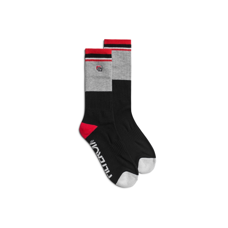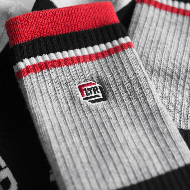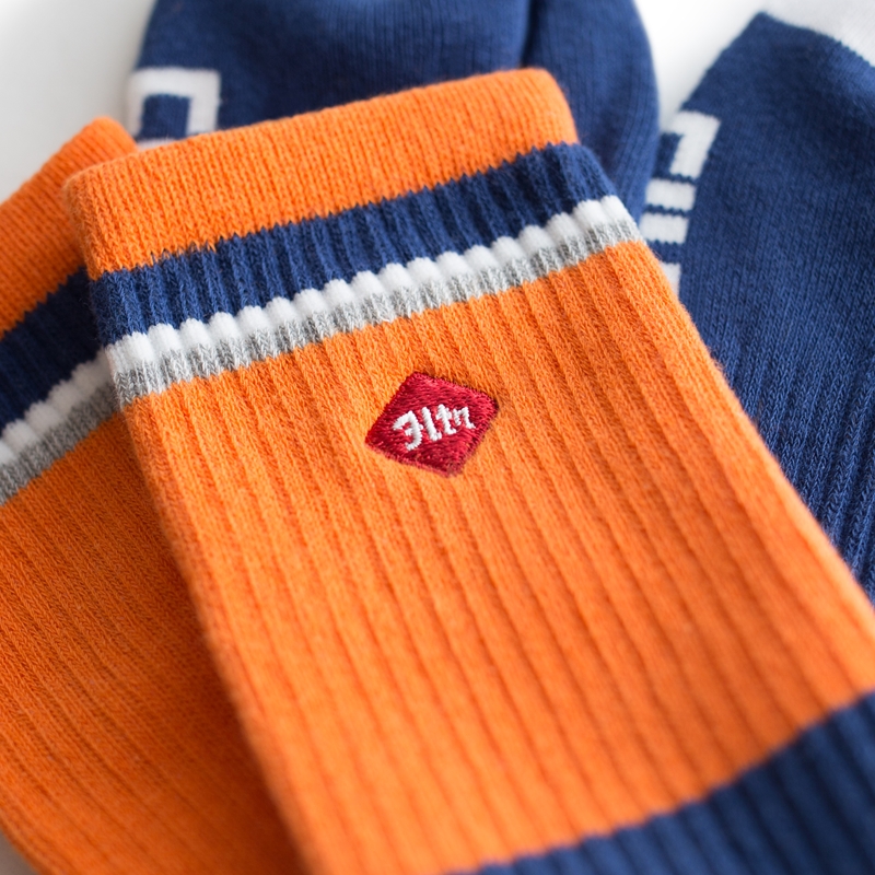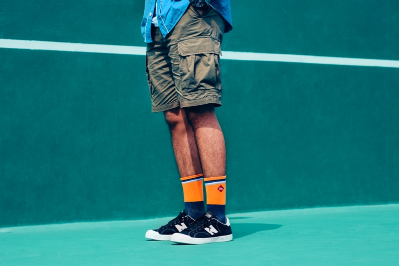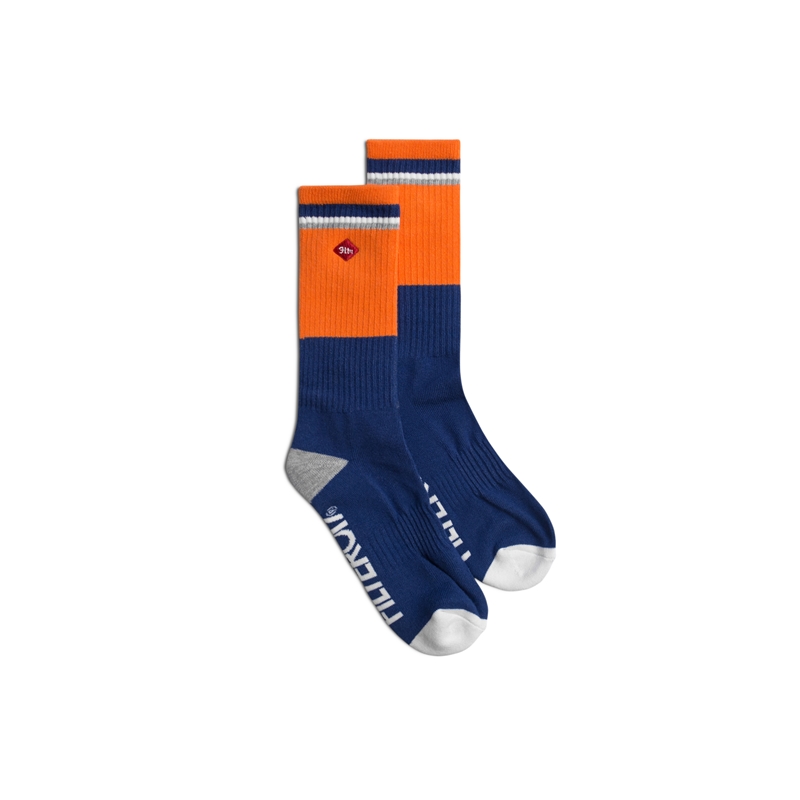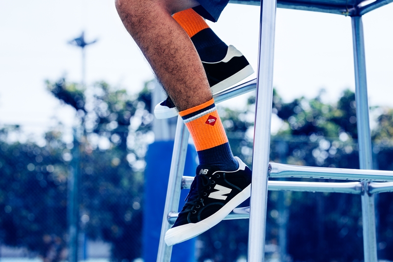 將充滿 90 年代風格的大色塊分割設計、飽滿明亮時代色彩的整體視覺經緻呈現於襪身款,