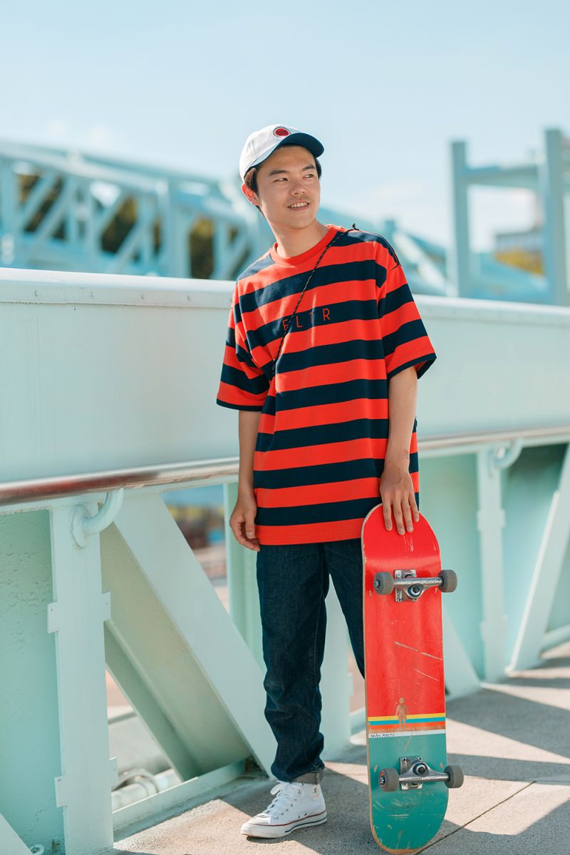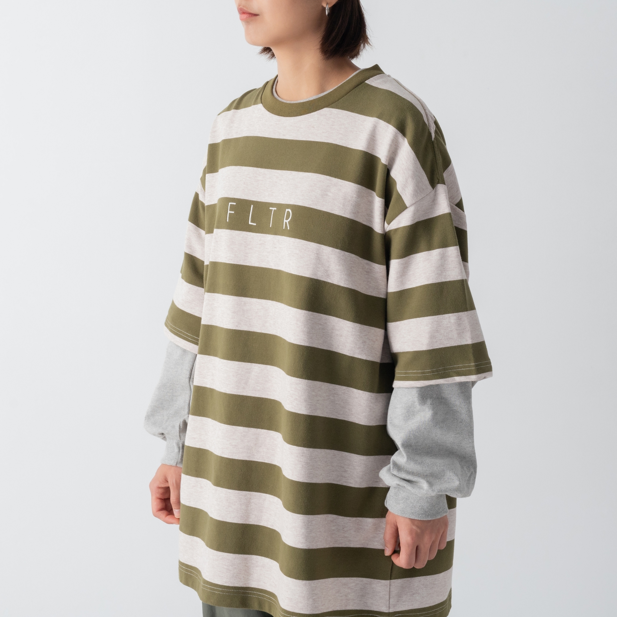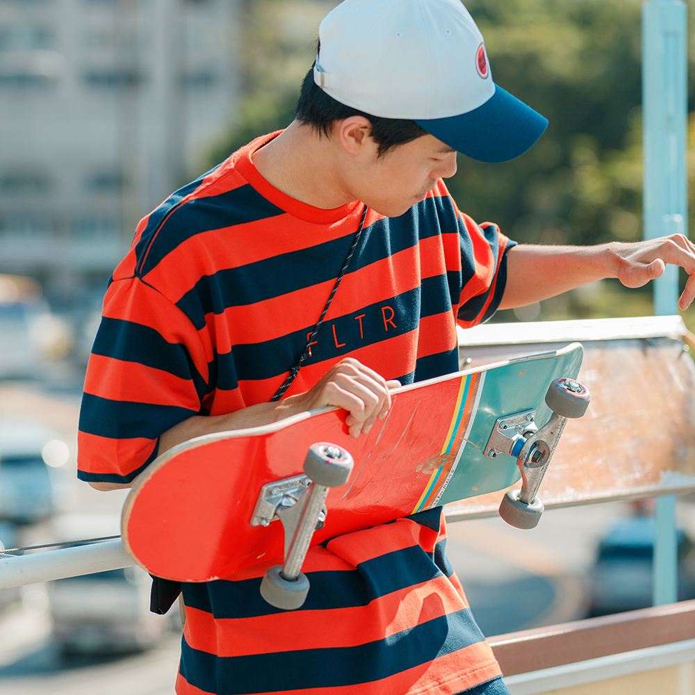 FLTR刺繡寬版落肩條紋短Tee