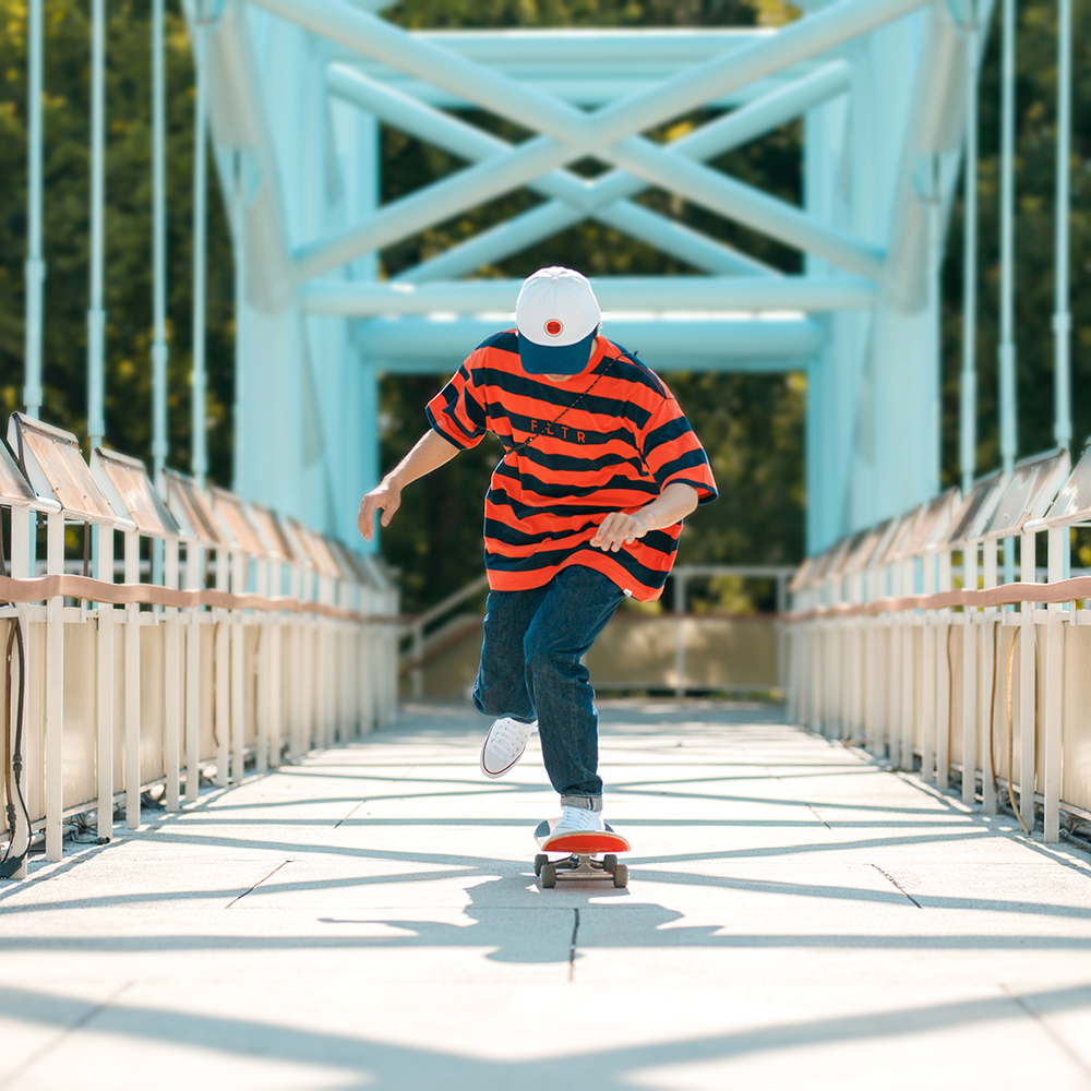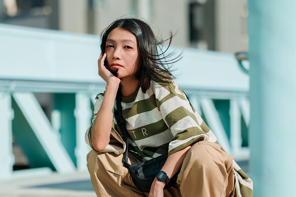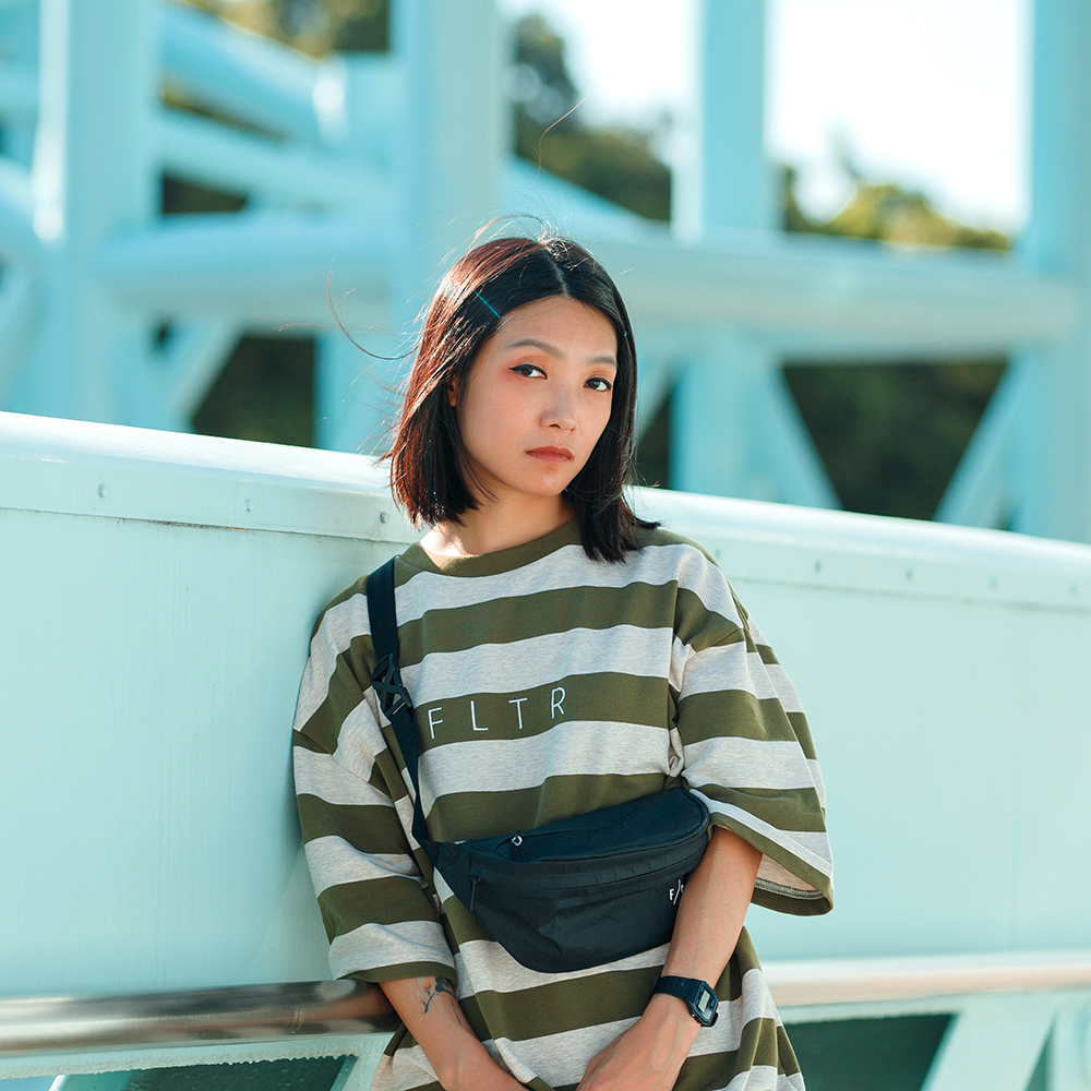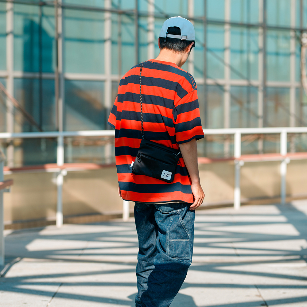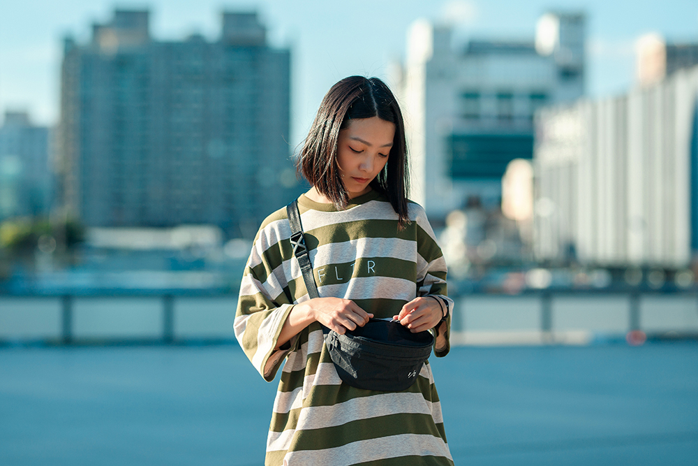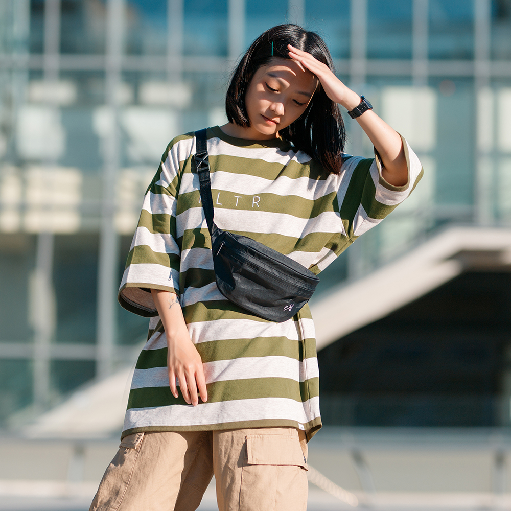 結合穿搭潮流經典的條紋元素與寬鬆落肩版型設計,