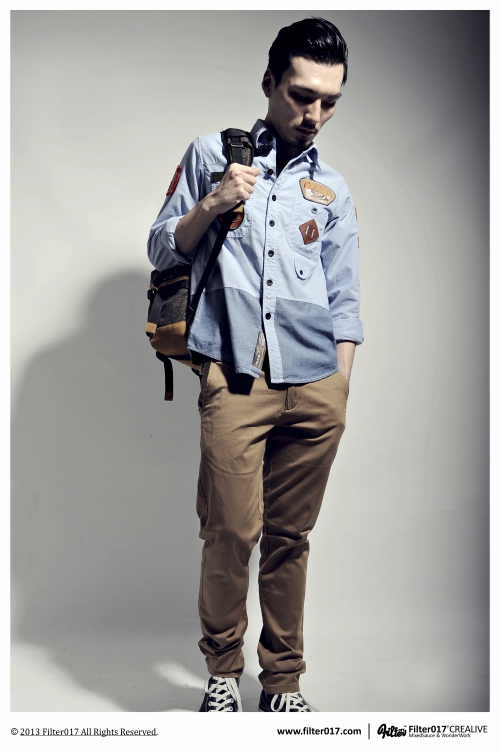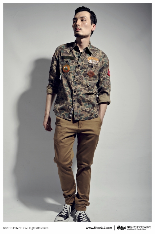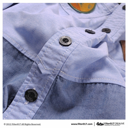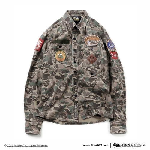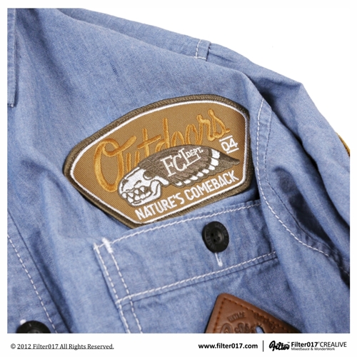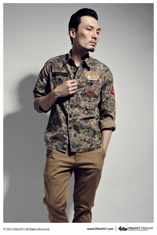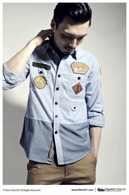 以獨家設計失落迷彩布紋及特選純棉牛津布,透過洗鍊質感及拼接手法,加以結合童軍及護林員、野地營隊等元素靈感做為設計的拼接工作襯衫,