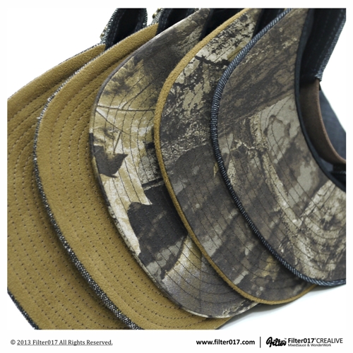 Filter017 特以單寧、磨毛斜紋、麂皮、枯葉花布等布材,搭配真皮壓紋皮牌、LOGO金屬飾片及棉線鎖鍊刺繡、古銅金屬後釦及真皮拉片,透過素材與配色營造出老帽質感,並透過細節堆疊出此系列具有濃烈復古氛圍的冬季戶外帽款,在日漸寒冷的嚴冬呈現出低調穩重的不凡氣息。