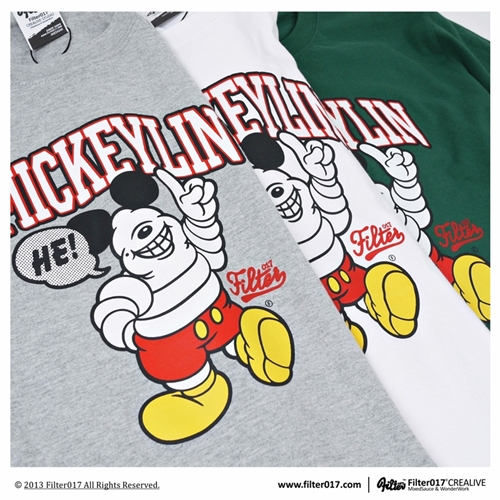 進而將知名輪胎業吉祥物與美國知名卡通人物三者完美合體,成為滑稽詭異的全新角色"MICKEYLIN"。