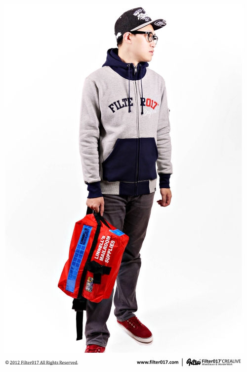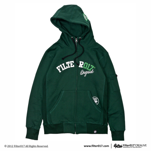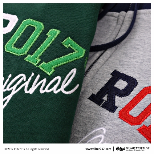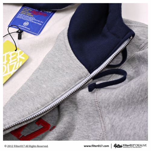此次推出的這款連帽外套,可說是Filter017在2011-2012秋冬服飾產品上的壓軸經典款式, 以簡潔學院運動風格,搭配字體、色彩及刺繡布章的配置設計,同時挑戰以往不曾使用過的精緻的刺繡工藝來呈現文字, 加上口袋處低調的圖像印花,使整體低調卻不失設計感與細節,呈現出相當質感而俐落的美式休閒風格。