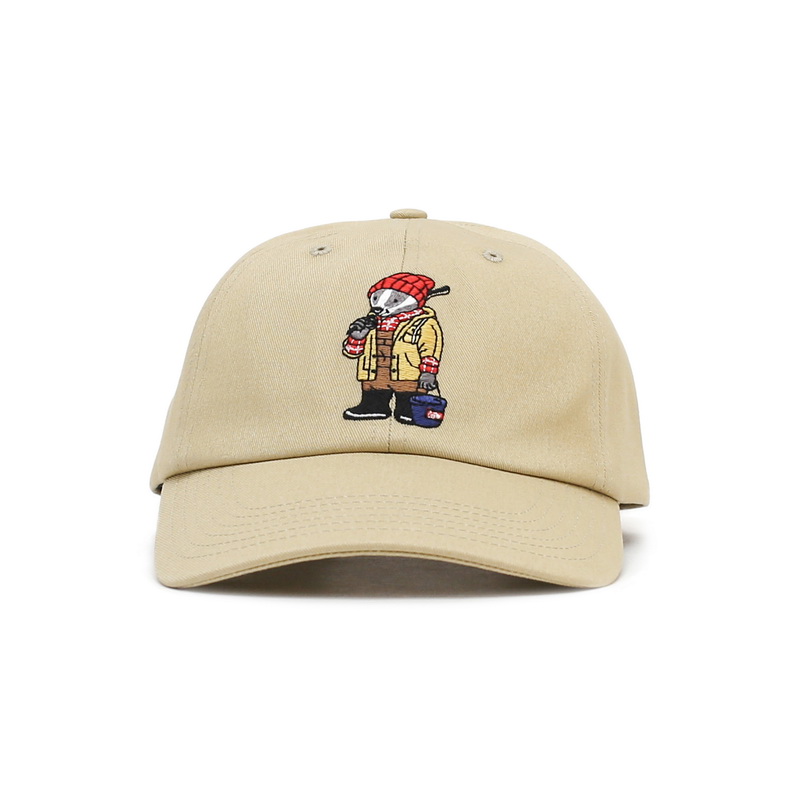 將充滿墾趣氛圍的戶外獾圖像,利用精緻刺繡的方式,巧妙的融入於近期重返街頭流行的老式棒球帽中。