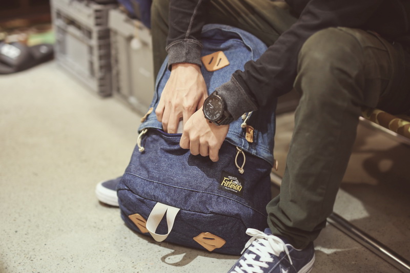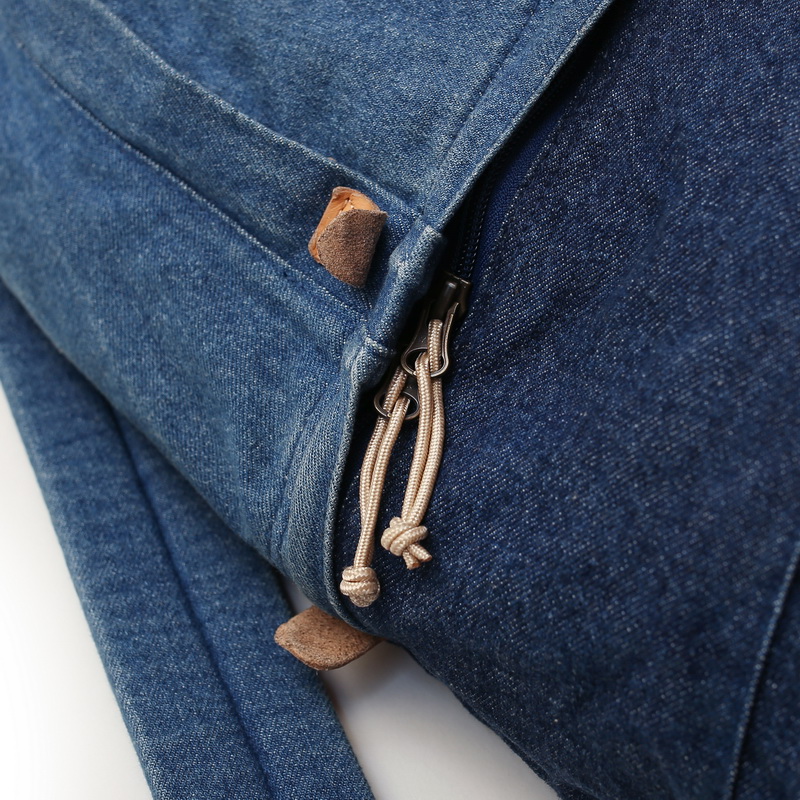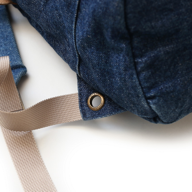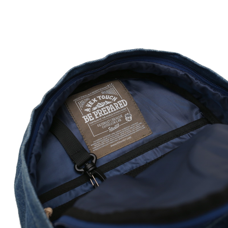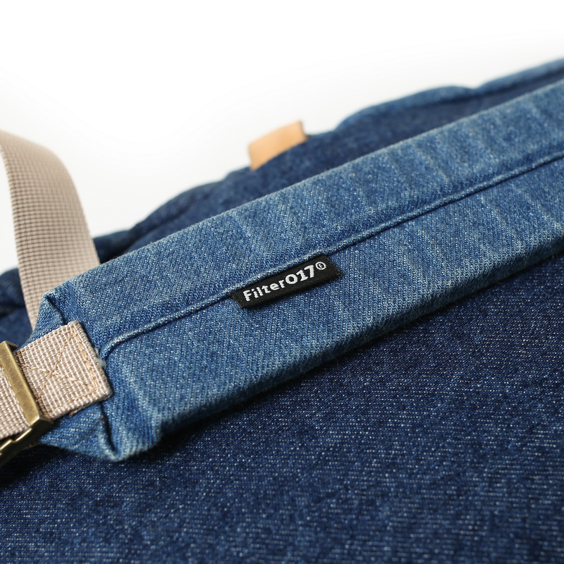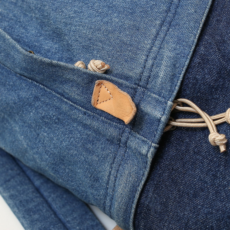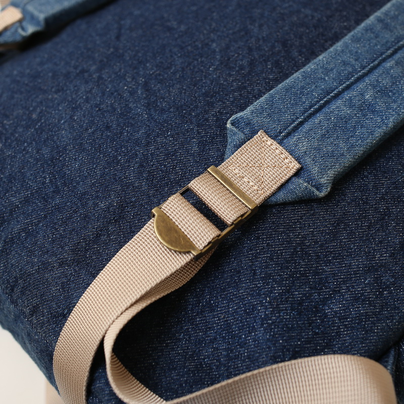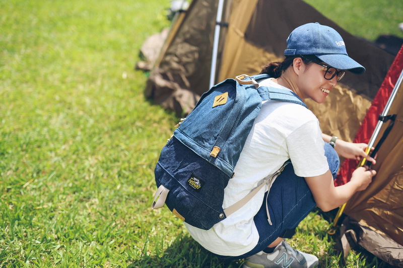 以復古雙層後背包版型進行改良,厚實的水洗單寧面料,經深淺雙色單寧的拼色搭配,帶出整體簡約清新風格。