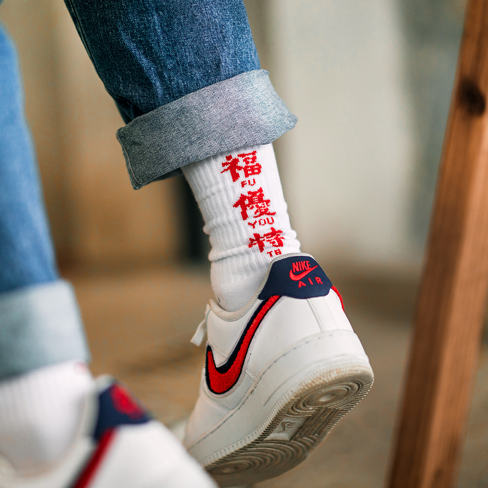 以「Friday Night」為主題意象延伸,將圖像元素結合 80-90 年代之風格呈現於襪款,