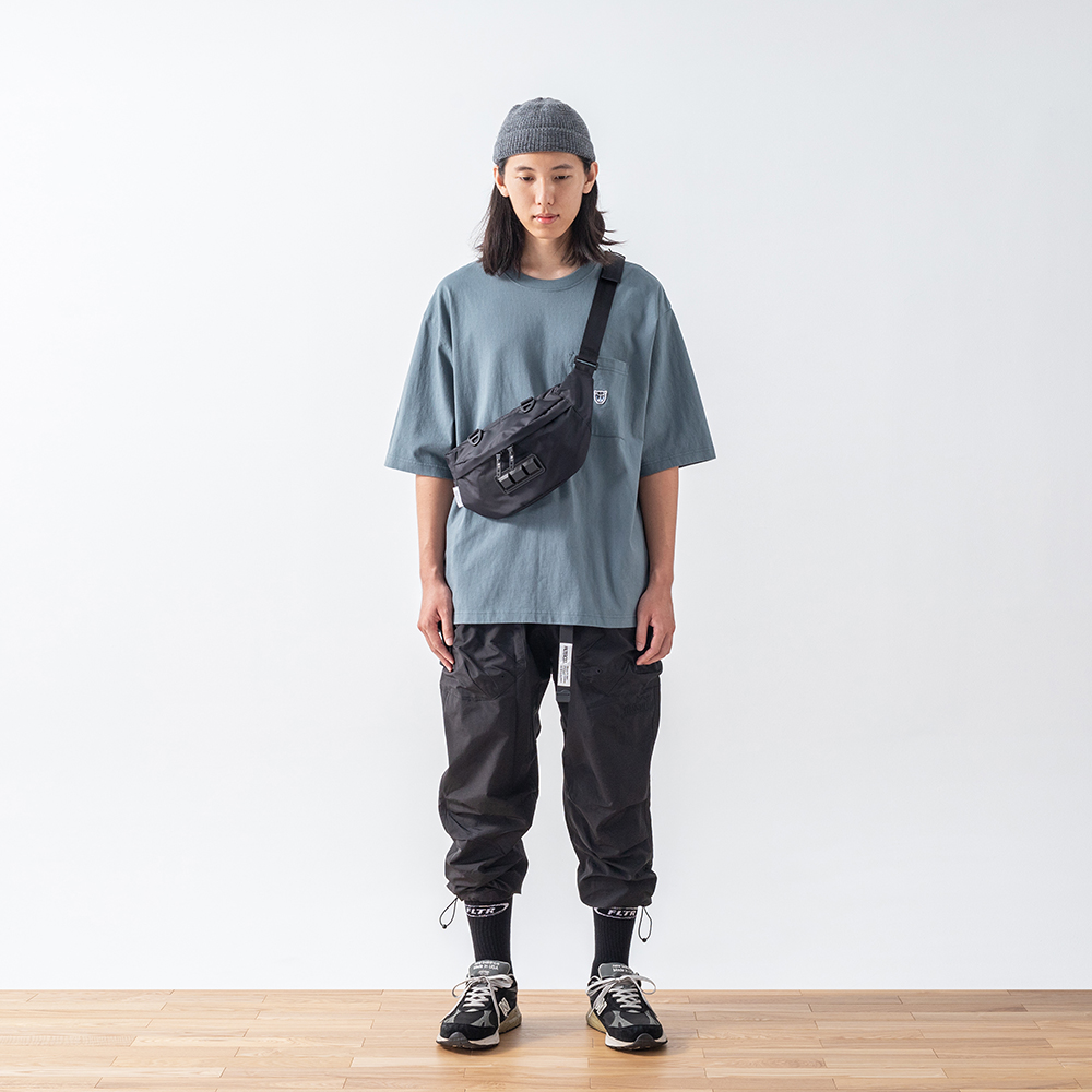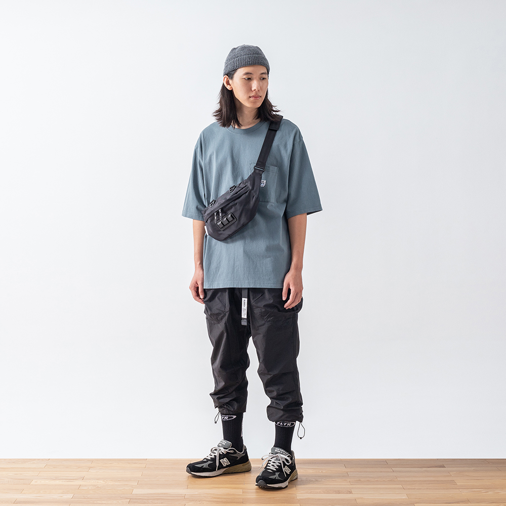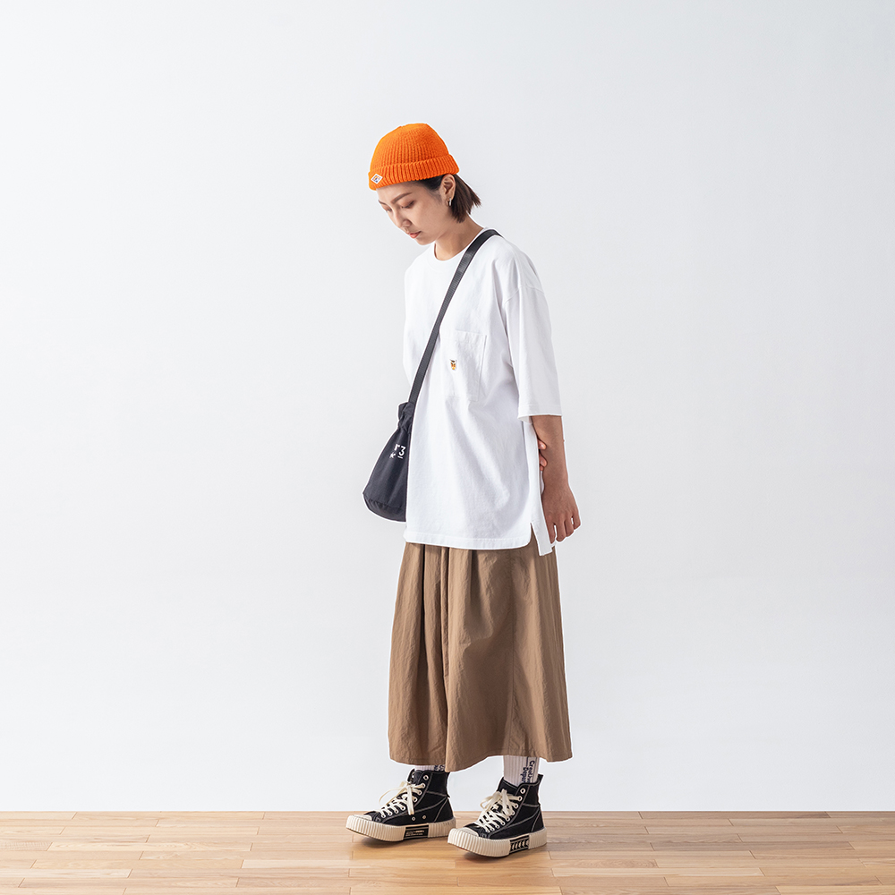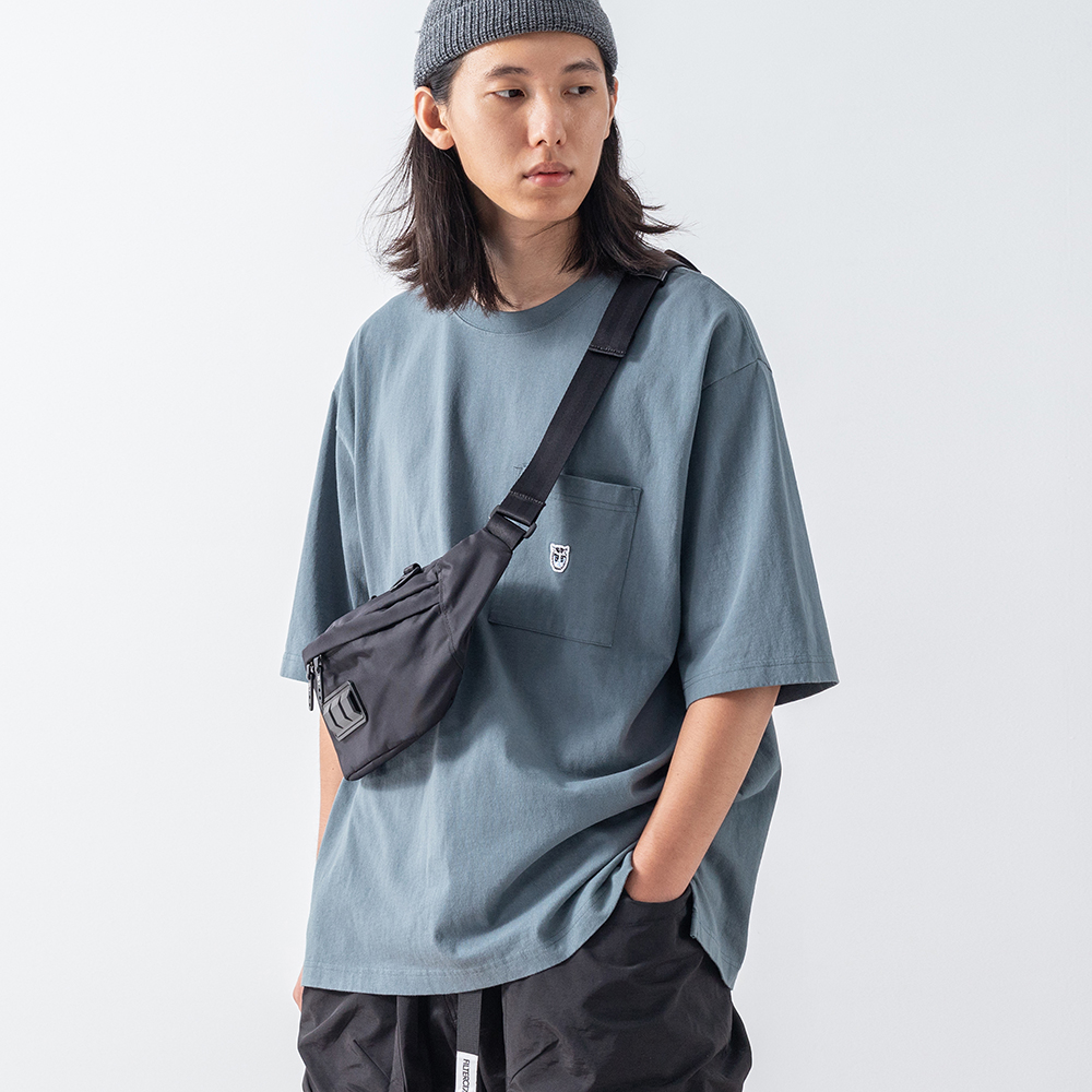 結合穿搭潮流中經典的口袋短TEE與寬鬆落肩版型設計,特選高品質厚磅棉質面料,