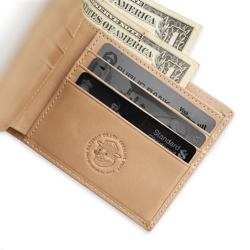 極簡短夾造型,精選油蠟動物真皮材質,打造表面自然粗曠的仿舊質感。
