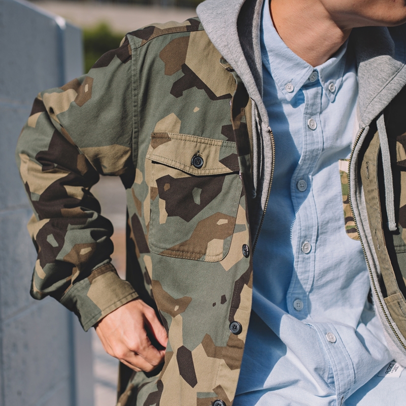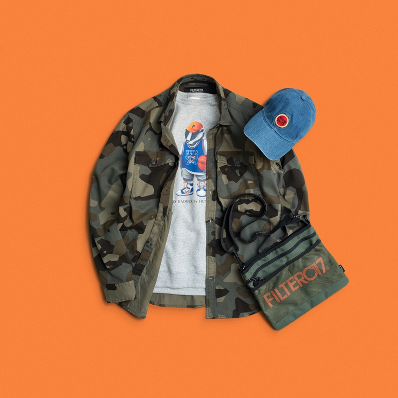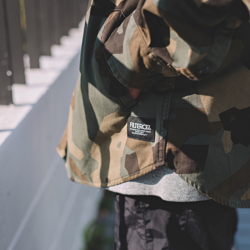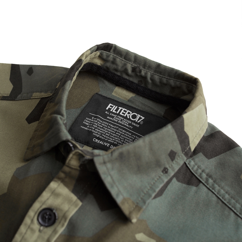 完整詮釋Filter017獨家設計繪製的碎片迷彩,透由輕度磨毛與酵素洗舊處理,